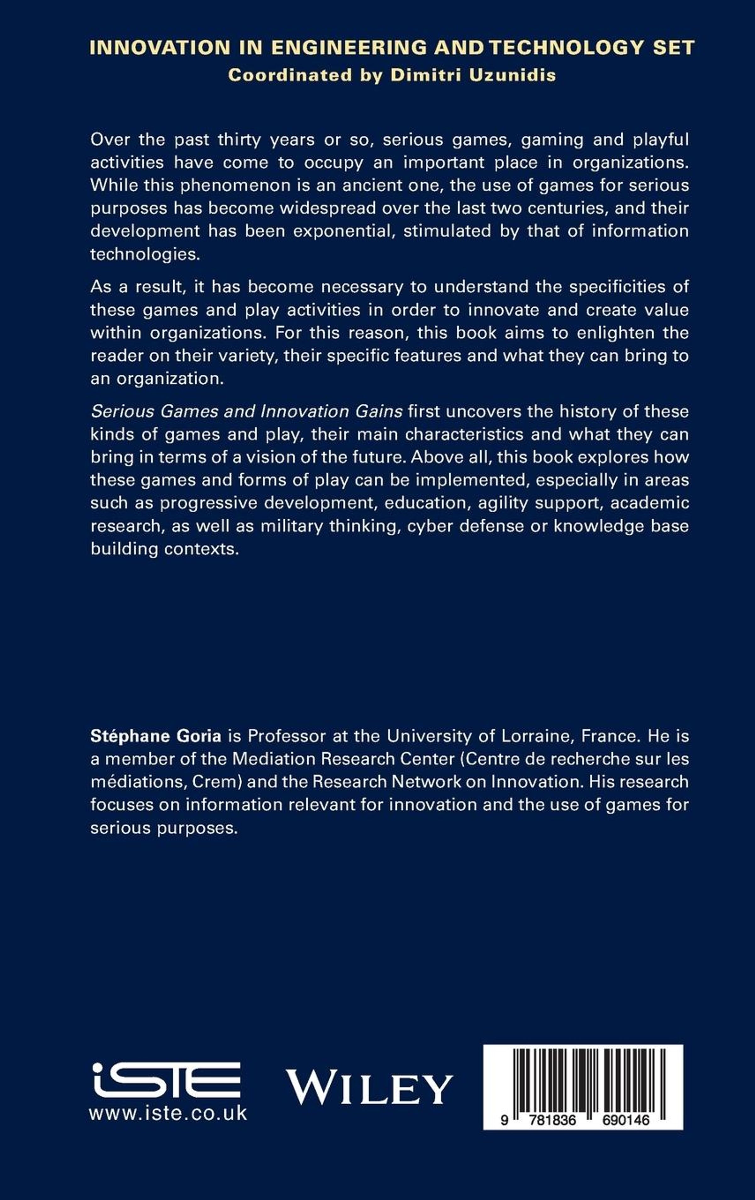 Serious Games and Innovation Gains first uncovers the history of these kinds of games and play, their main characteristics and what they can bring in terms of a vision of the future. Above all, this book explores how these games and forms of play can be implemented, especially in areas such as progressive development, education, agility support, academic research, as well as military thinking, cyber defense or knowledge base building contexts.