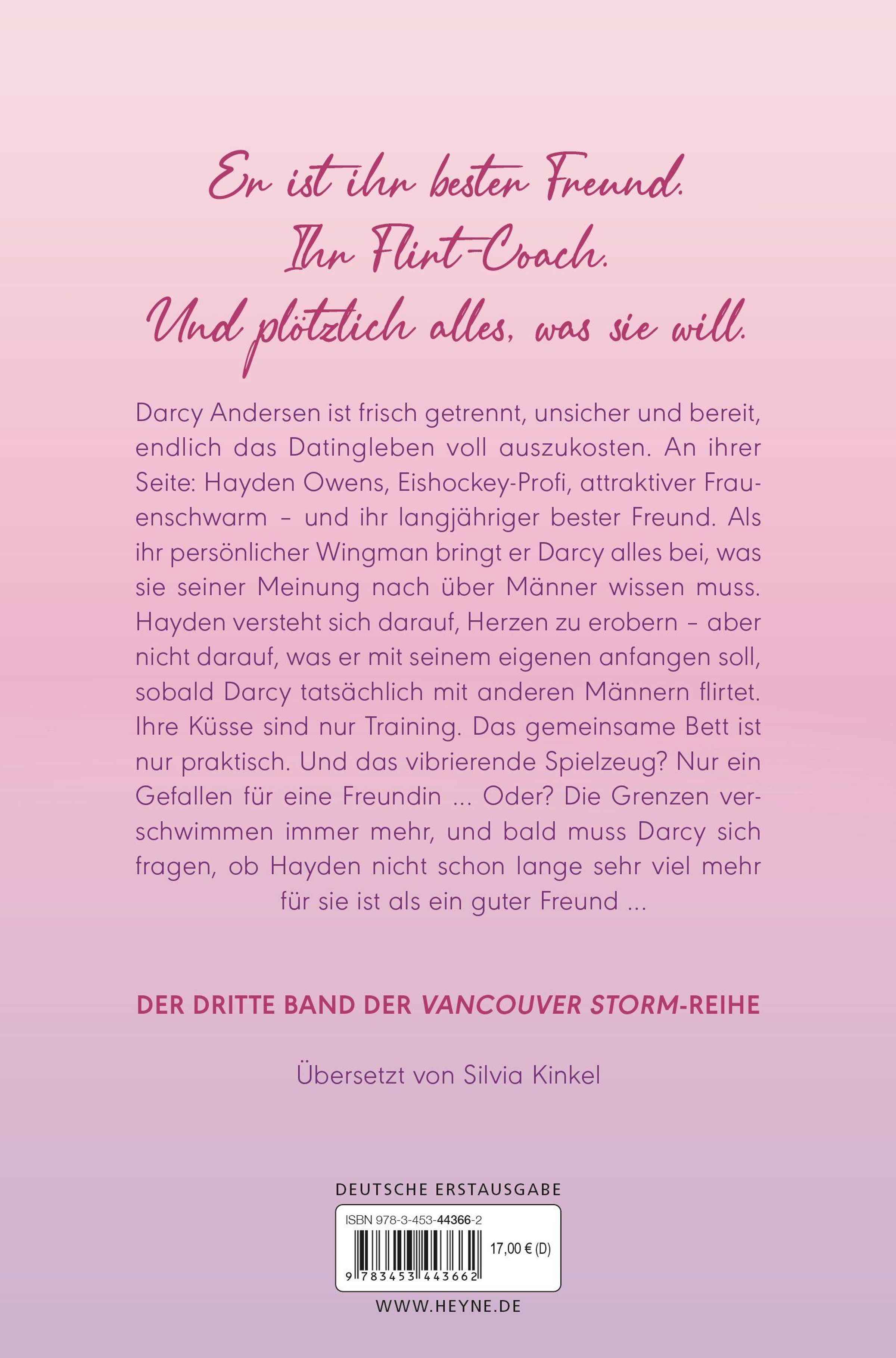 Darcy Andersen ist frisch getrennt, unsicher und bereit, endlich das Datingleben voll auszukosten. An ihrer Seite: Hayden Owens, Eishockey-Profi, attraktiver Frauenschwarm - und ihr langjähriger bester Freund. Als ihr persönlicher Wingman bringt er Darcy alles bei, was sie seiner Meinung nach über Männer wissen muss. Hayden versteht sich darauf, Herzen zu erobern - aber nicht darauf, was er mit seinem eigenen anfangen soll, sobald Darcy tatsächlich mit anderen Männern flirtet. Ihre Küsse sind nur Training. Das gemeinsame Bett ist nur praktisch. Und das vibrierende Spielzeug? Nur ein Gefallen für eine Freundin ... Oder? Die Grenzen verschwimmen immer mehr, und bald muss Darcy sich fragen, ob Hayden nicht schon lange sehr viel mehr für sie ist als ein guter Freund ...