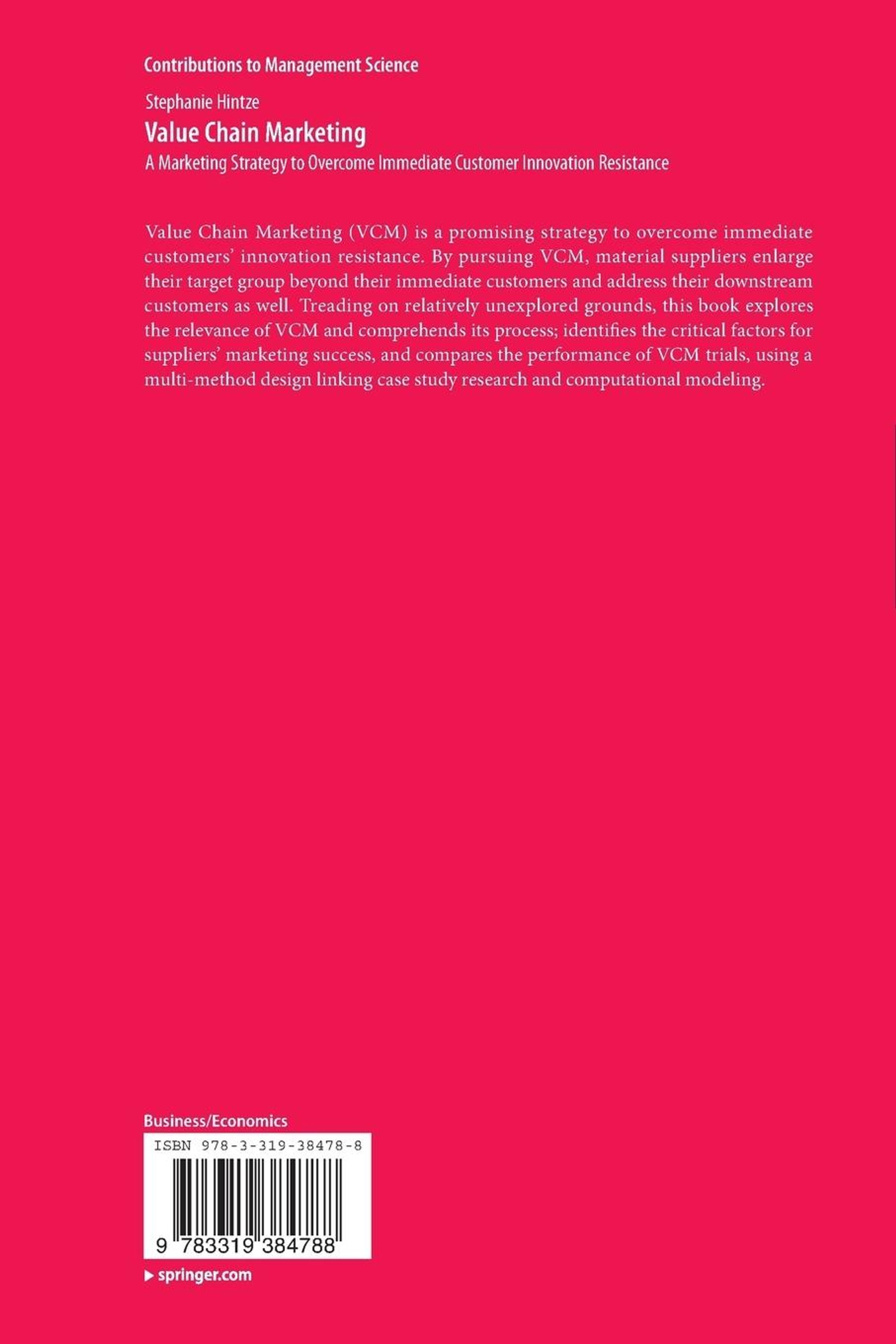 Value Chain Marketing (VCM) is a promising strategy to overcome immediate customers innovation resistance. By pursuing VCM, material suppliers enlarge their target group beyond their immediate customers and address their downstream customers as well. Treading on relatively unexplored grounds, this book explores the relevance of VCM and comprehends its process; identifies the critical factors for suppliers marketing success, and compares the performance of VCM trials, using a multi-method design linking case study research and computational modeling.