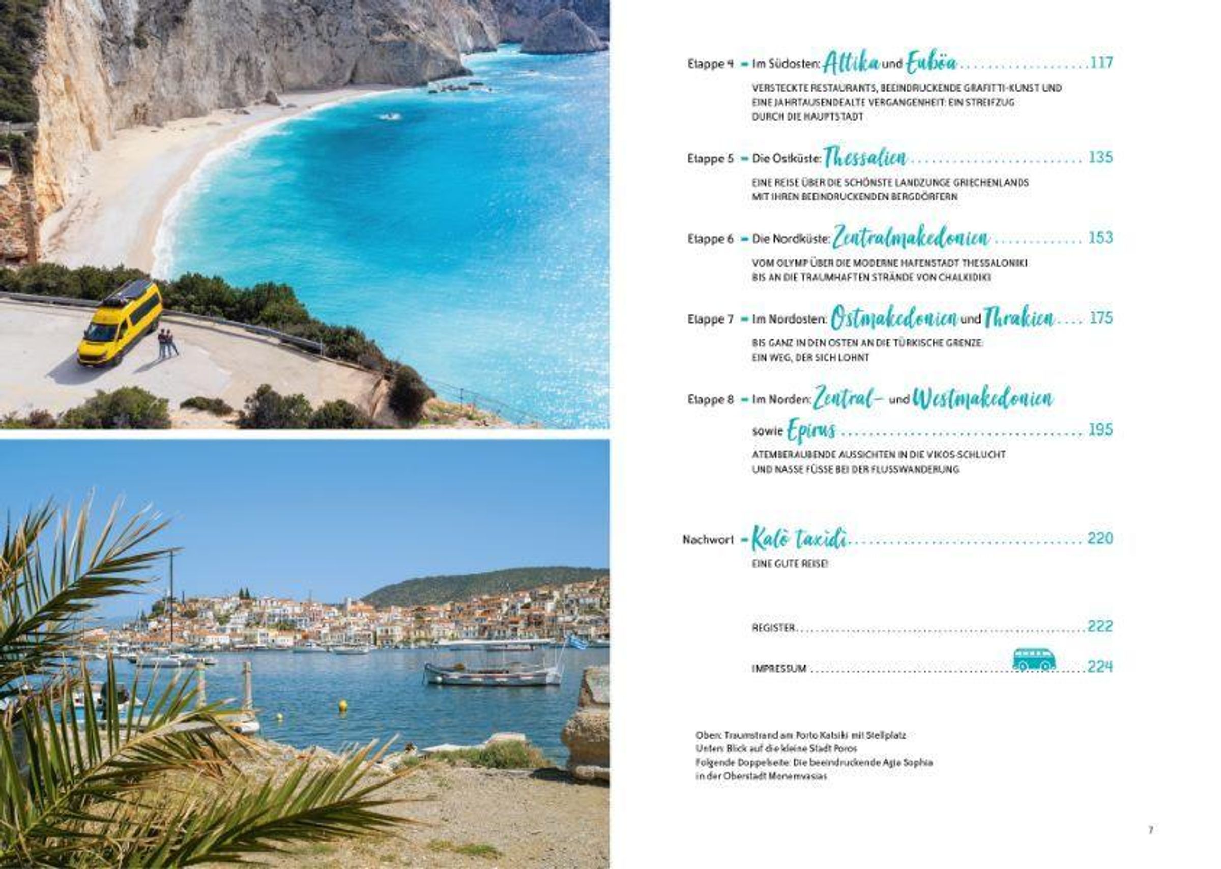 Kommen Sie mit auf eine Erkundungstour des griechischen Festlands - per Camper, Camping Bus, Wohnmobil, o.ä. versteht sich! Folgen Sie den einfach nachfahrbaren Routen durch zehn griechische Regionen: über Küsten- und Panoramastraßen, an Ägäis und Ionisches Meer, vorbei an traditionellen Restaurants voller griechischer Köstlichkeiten zu Sehenswürdigkeiten aus der Antike, in verwinkelte Bergdörfer, zu schwebenden Klöstern und an bezaubernde Orte mitten in der Natur. Tolle Übernachtungstipps inklusive.