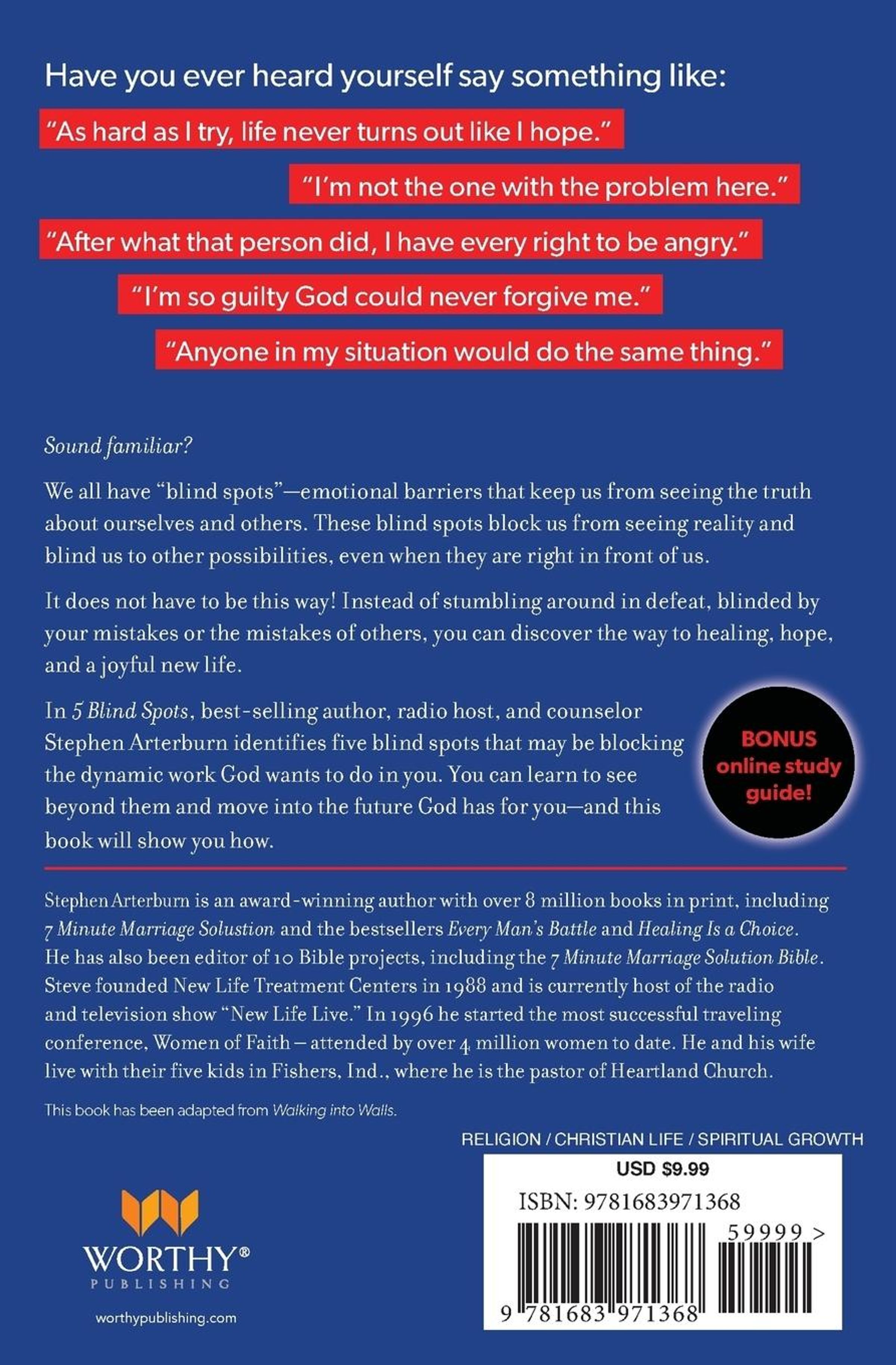 In 5 Blinds Spots, best-selling author, radio host, and counselor Stephen Arterburn identifies five blind spots that may be blocking the dynamic work God wants to do in you. You can learn to see beyond them and move into the future God has for you-and this book will show you how.