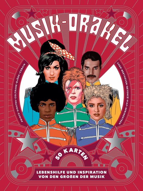 Orakel-Karten mit tollen Musiker-Portraits und (nicht ganz wahren) 'Zitaten' Inspiration und augenzwinkernde Lebenshilfe aus dem Olymp der Musikgeschichte Booklet mit Kurzbiografien der Musiker Sie fragen sich, was Sie mit Ihrem Leben anfangen sollen? Lassen Sie sich von David Bowie inspirieren. Sie verspüren Sehnsucht nach Liebe? Bitten Sie Marvin Gaye um Hilfe. Sie möchten ein Statement setzen? Grace Jones hat die Antwort. Wählen Sie einfach eine Karte, befolgen Sie die vom Leben und Schaffen der Musiker inspirierten Lebensweisheiten und Ratschläge zu Lebenseinstellung, Lifestyle und Inspiration - und jedes persönliche Hindernis wird überwindbar!