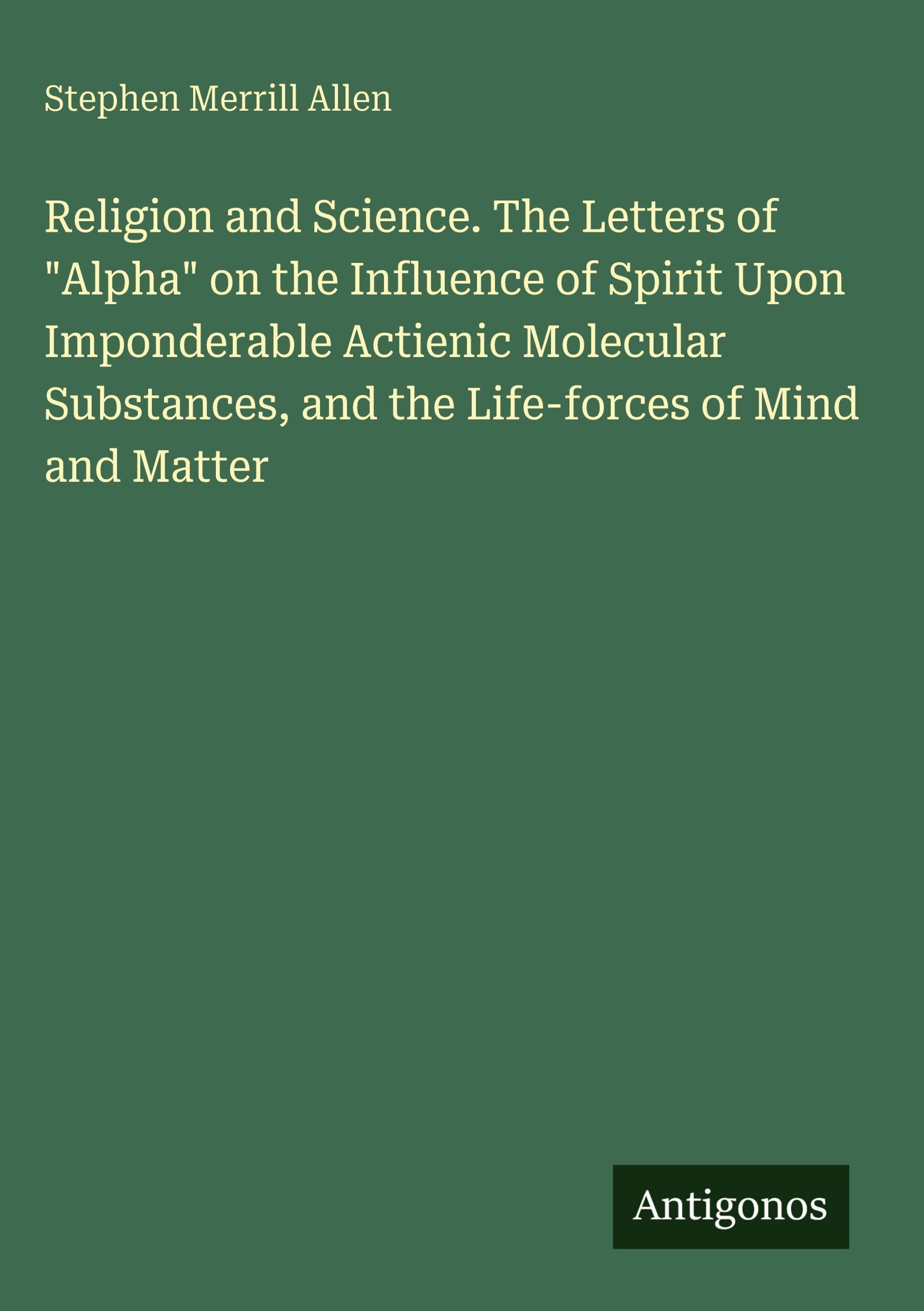 Stephen Merrill Allen: Religion and Science. The Letters of "Alpha" on the Influence of Spirit Upon Imponderable..., Gebunden