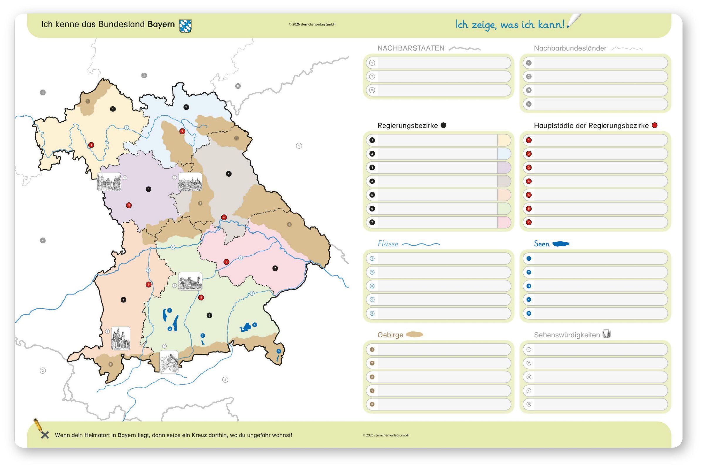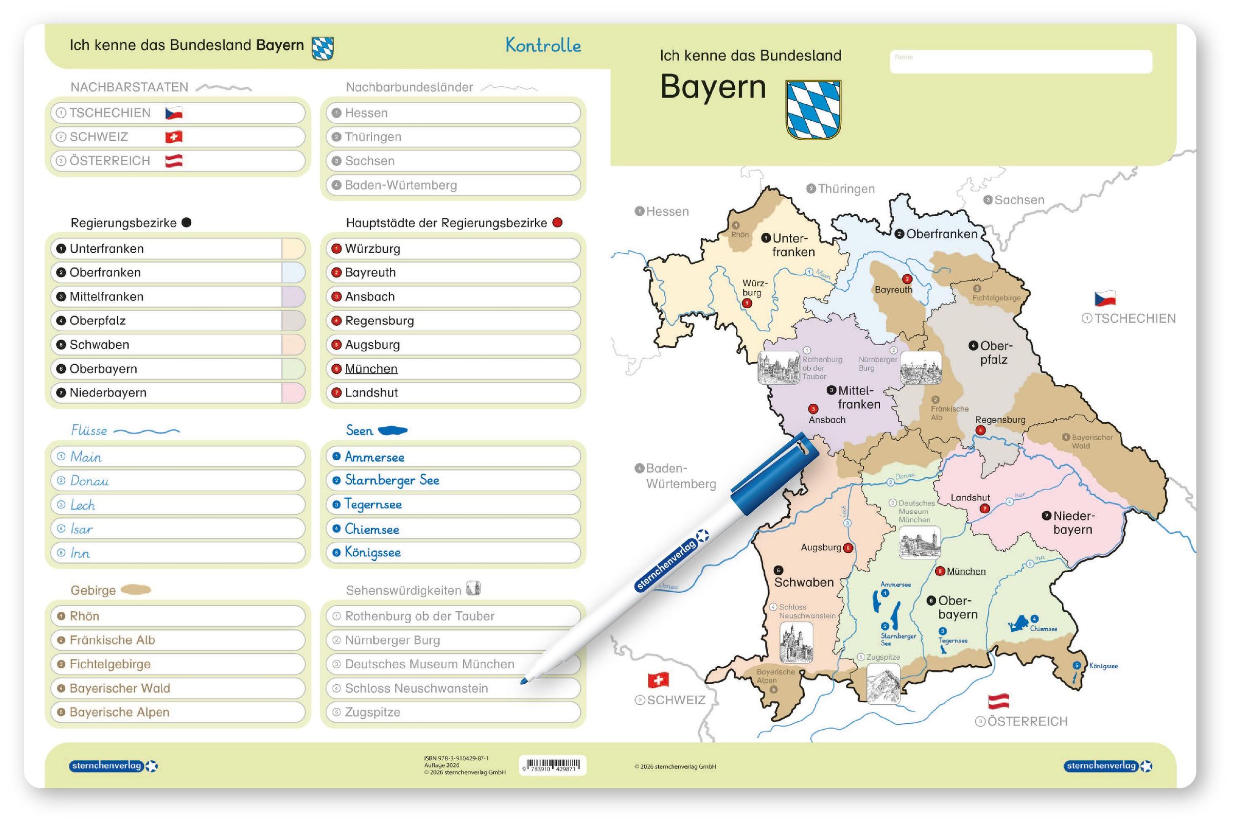 sternchenverlag GmbH: Ich kenne das Bundesland Bayern-Lerntafel mit Stift, Blätter
