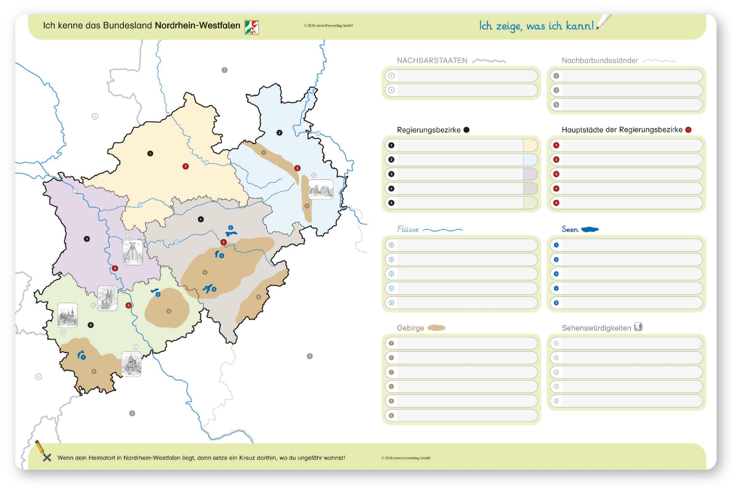 sternchenverlag GmbH: Ich kenne das Bundesland Nordrhein-Westfalen- Lerntafel mit Stift, Blätter