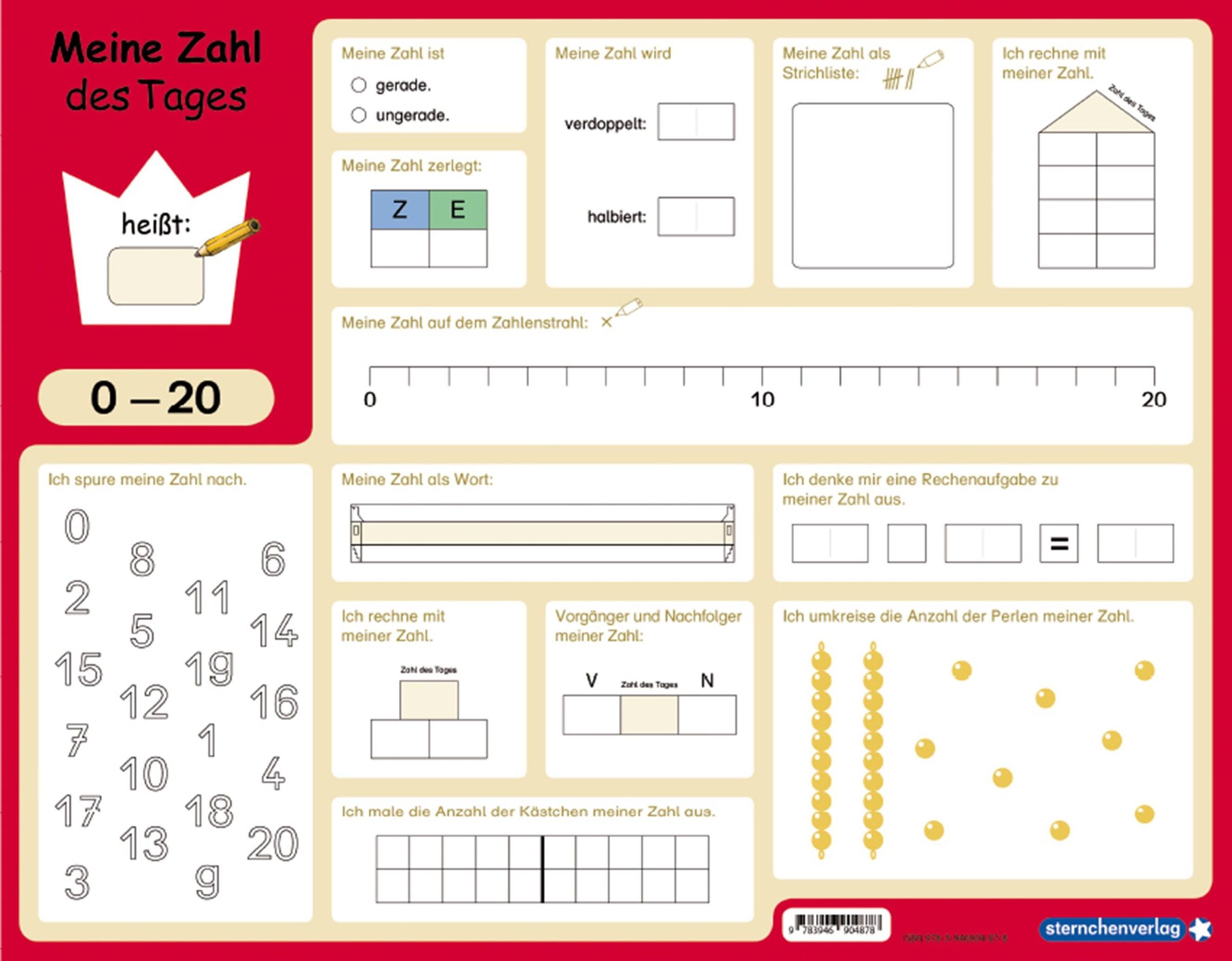 sternchenverlag GmbH: Meine Zahl des Tages 0-10 und 0-20 - wiederbeschreibbare Lerntafel mit Stift - Mathematik, Blätter
