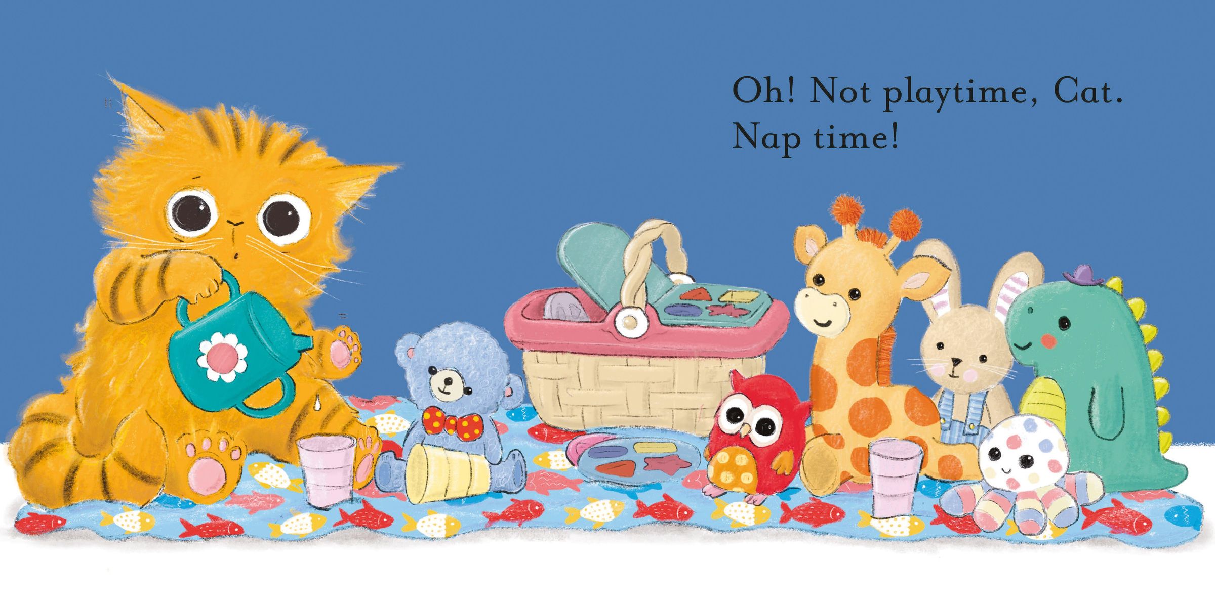 This little catreally needs a nap, but it's hard to find time for sleep when you're busy playing! Cat has a blanket and a teddy and even some milk - but Cat does not want a nap. After a cuddle, a tooth brush and ALL the teddies in the cot, will Cat finally close their eyes?