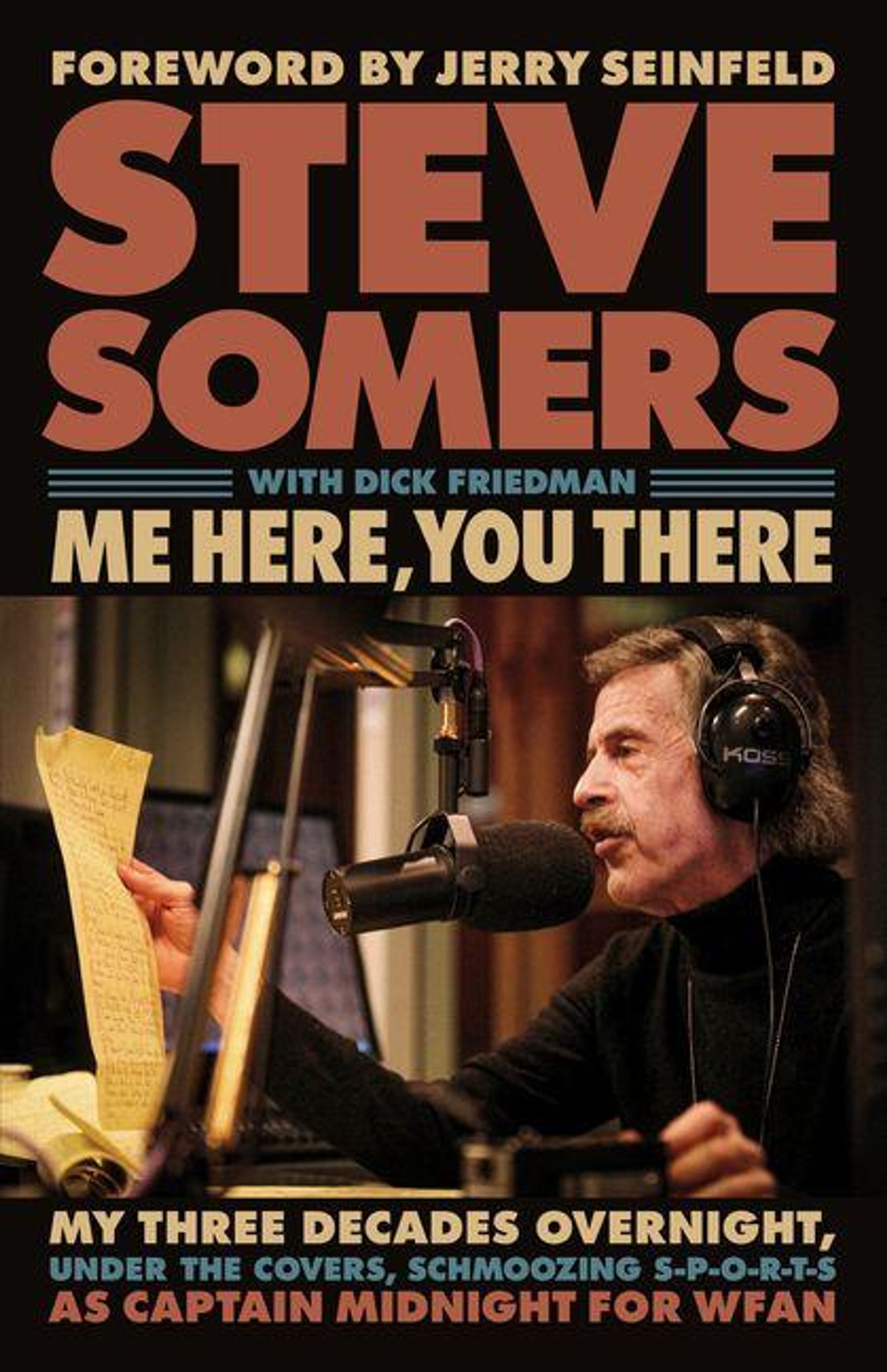 In *Me Here, You There,*Somers reflects on life as a Schmoozer from San Francisco with a dream-come-true of working the concrete jungle. From a childhood calling play-by-play into a lightbulb he pretended was a microphone, to three decades in the WFAN studios, Somers details the luck, leaps of faith, and memorable characters that, for better and for worse, shaped his improbable career.