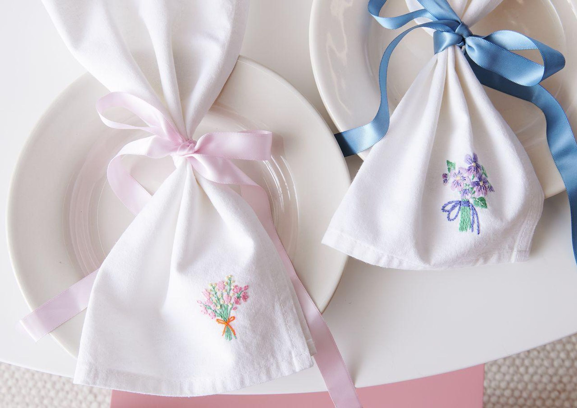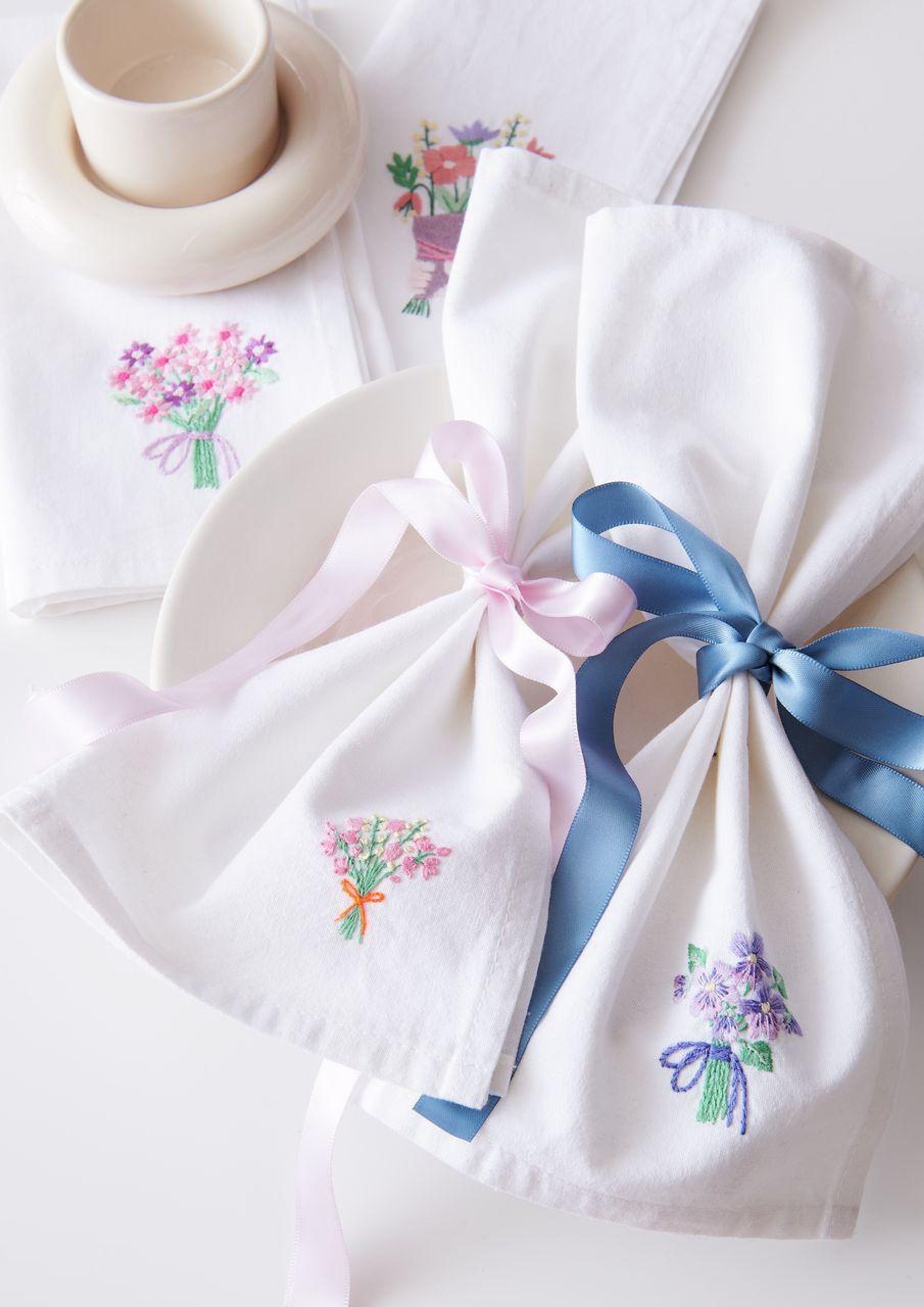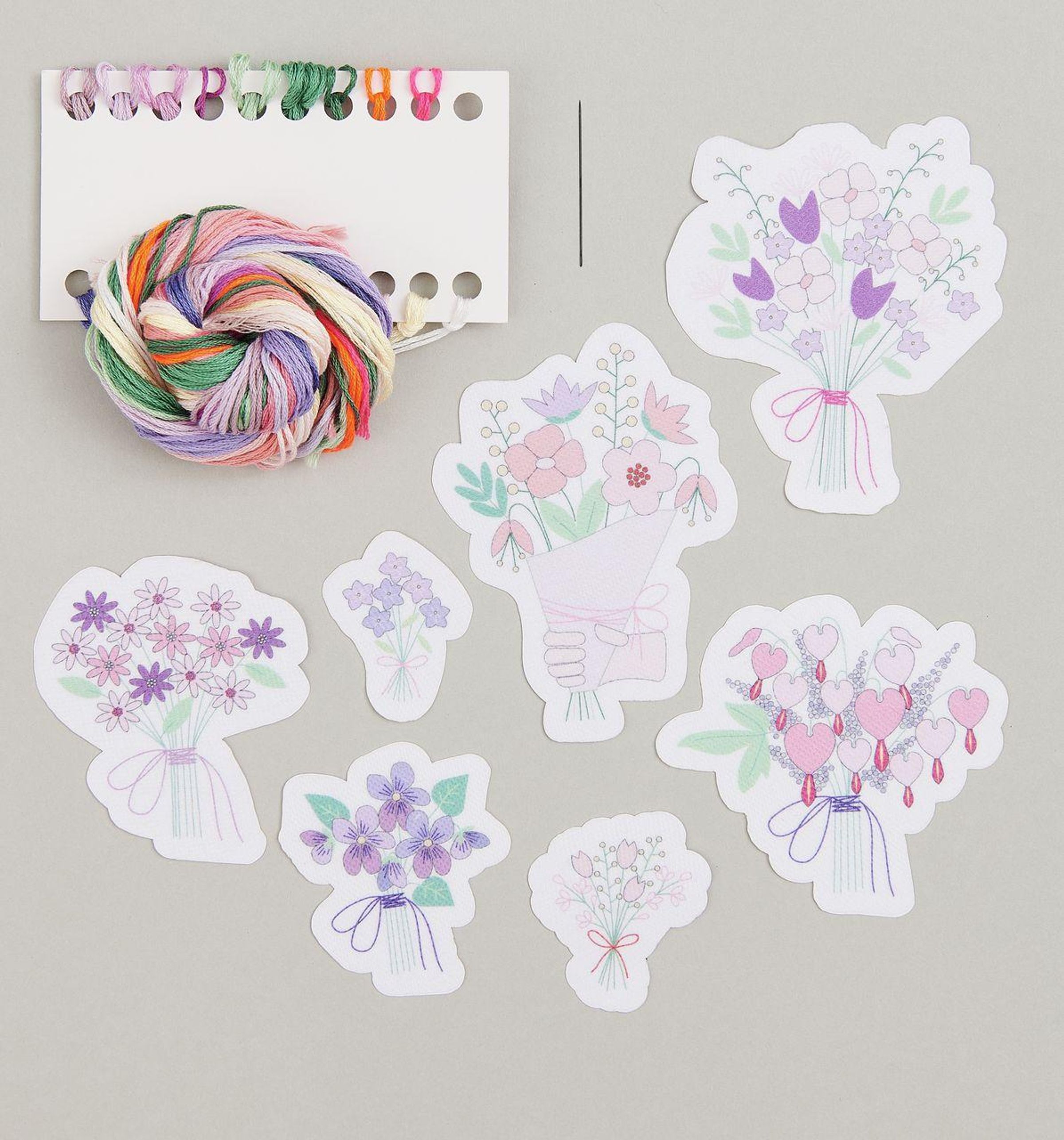 Stick & Stitch Packung, Blumenstäuße XL // 7 Stk., 7 Designs // Wasserlösliche Stickvorlage, Stickgarn, Sticknadel und Anleitung