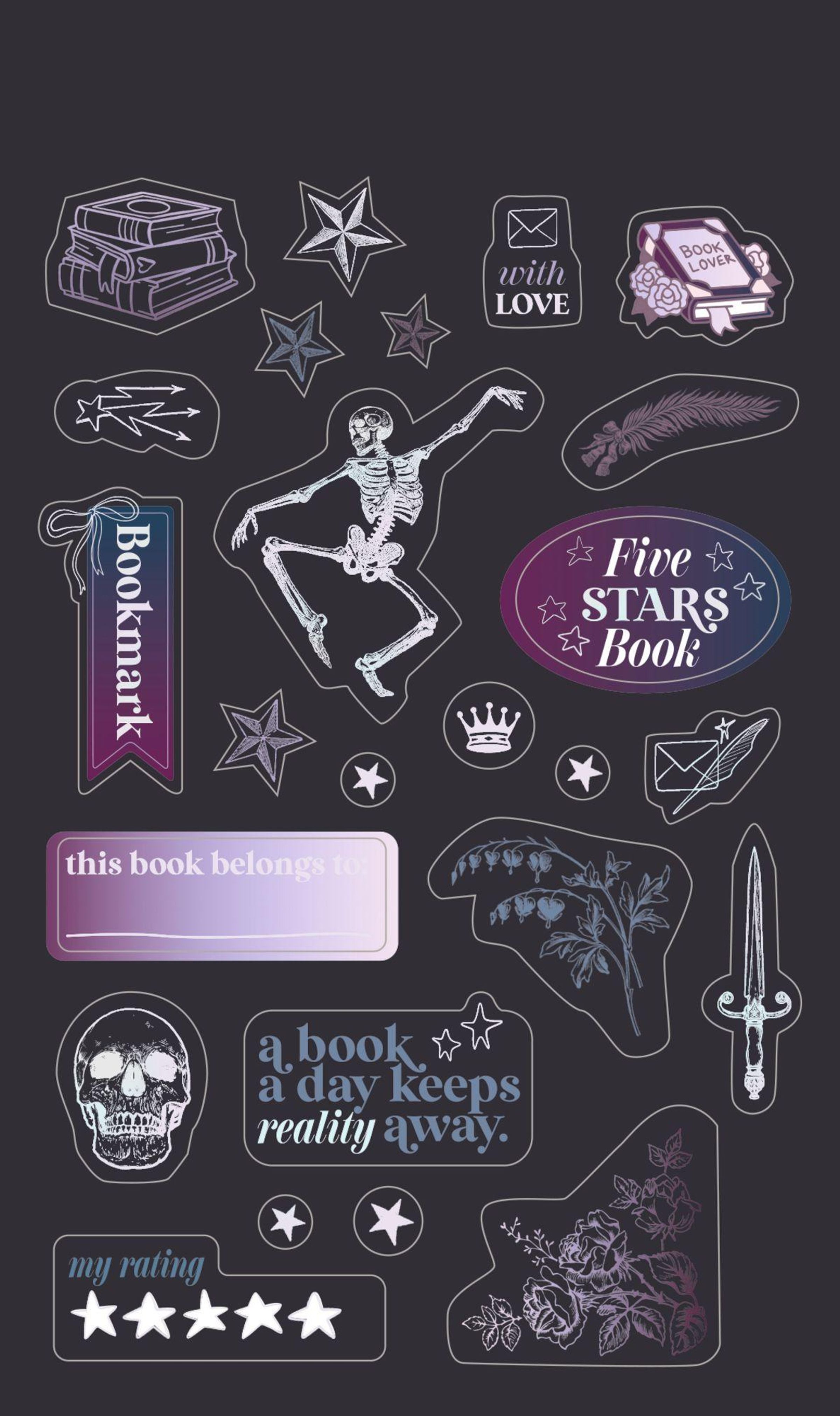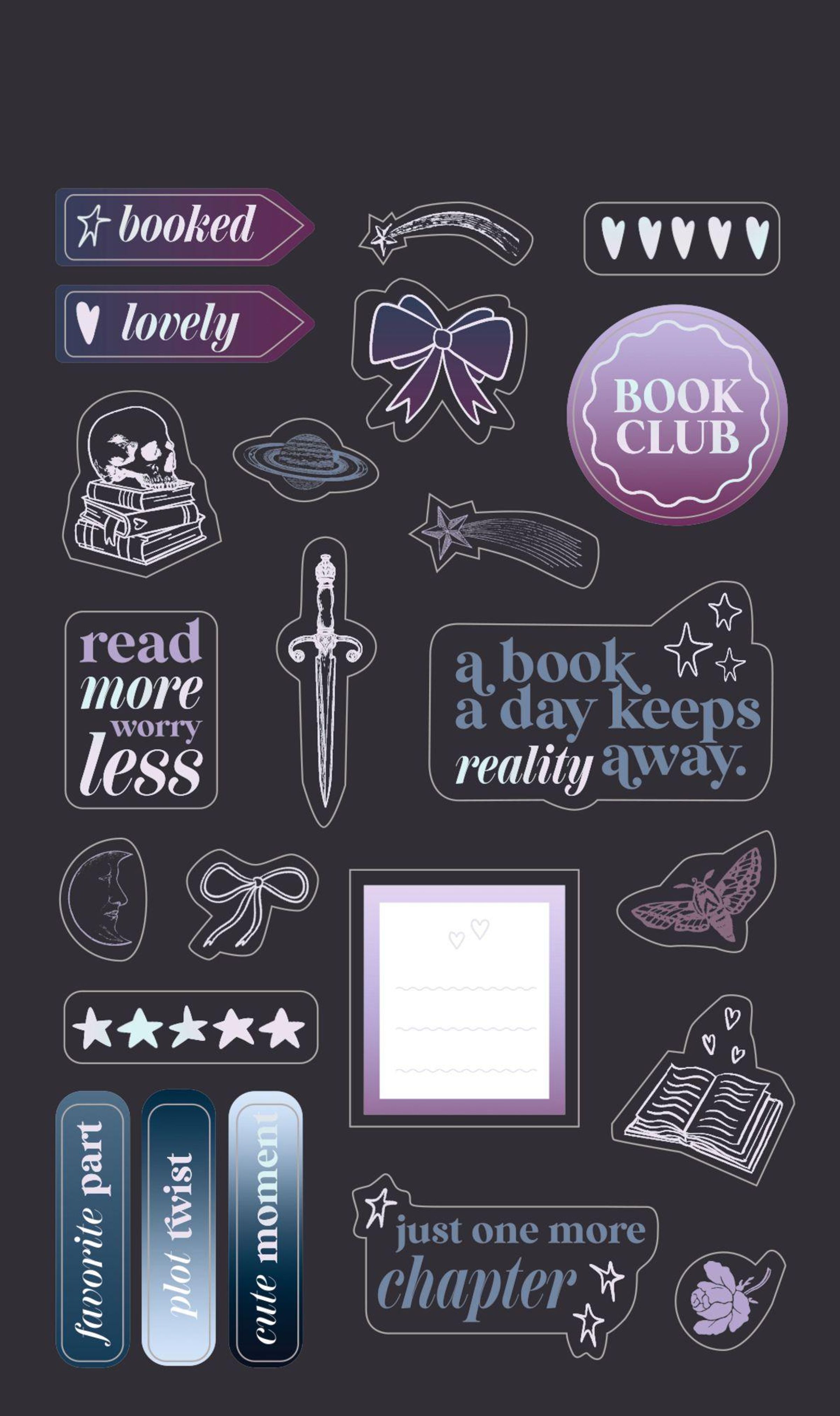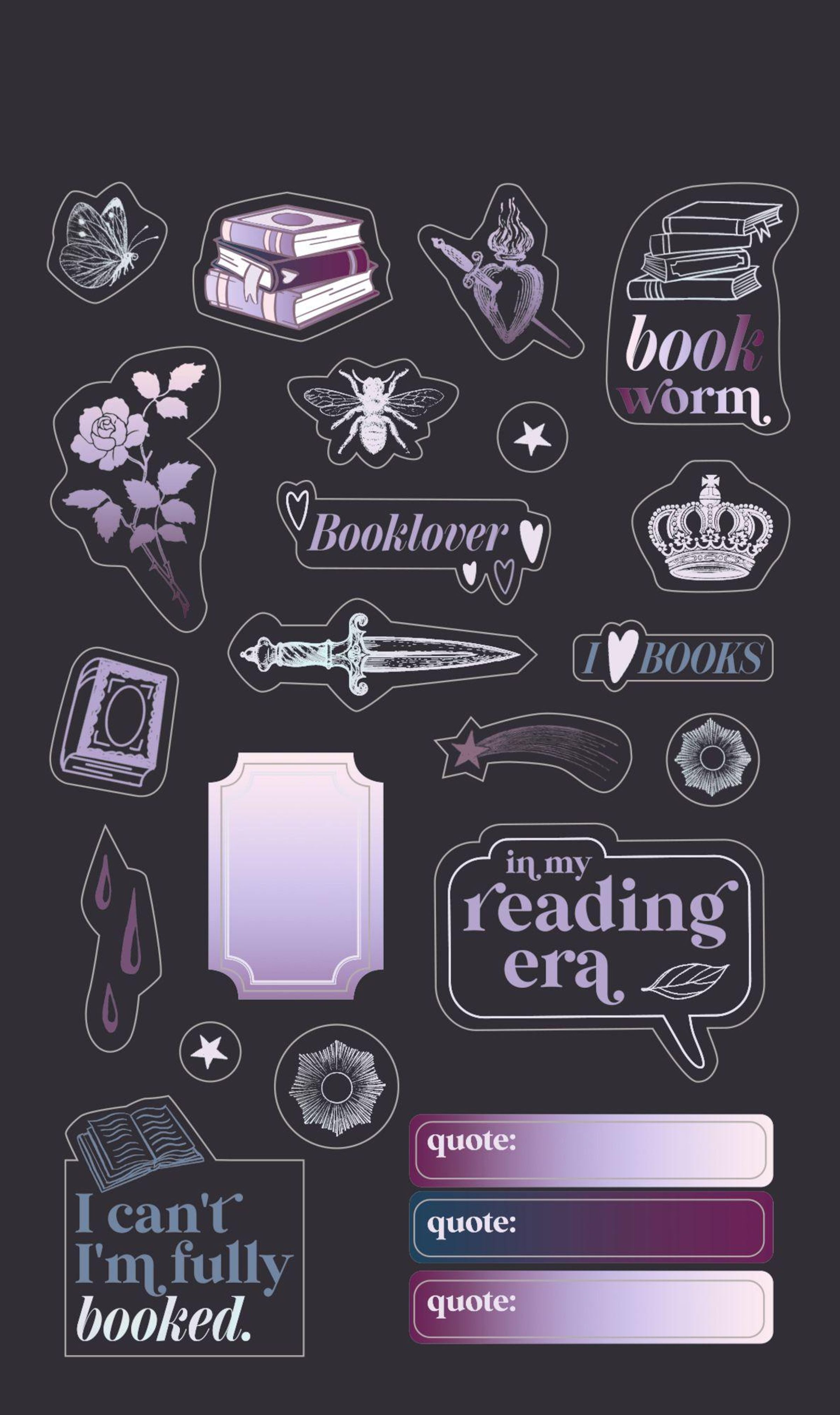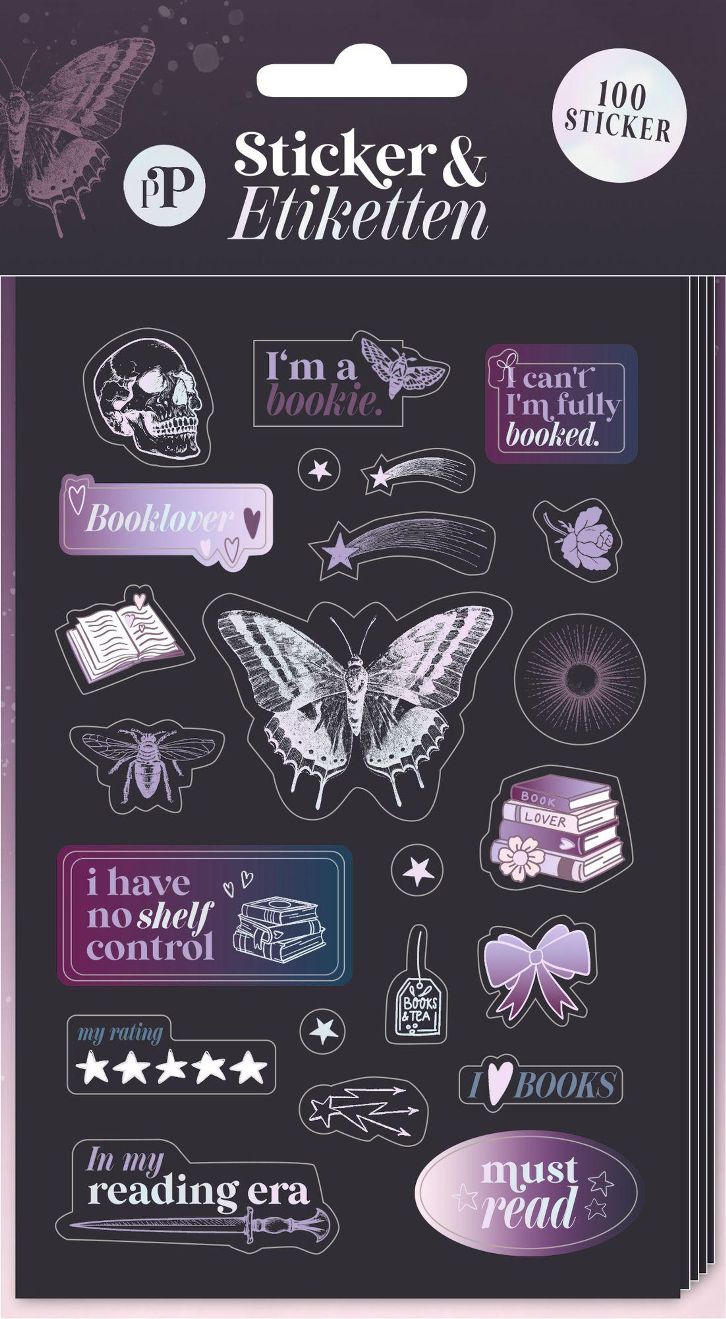 Sticker & Etiketten, 100 Sticker. Texte: "I'm a bookie", "I can't I'm fully booked", "Booklover", "must read". Illustrationen mit Büchern und Schmetterlingen., Buch