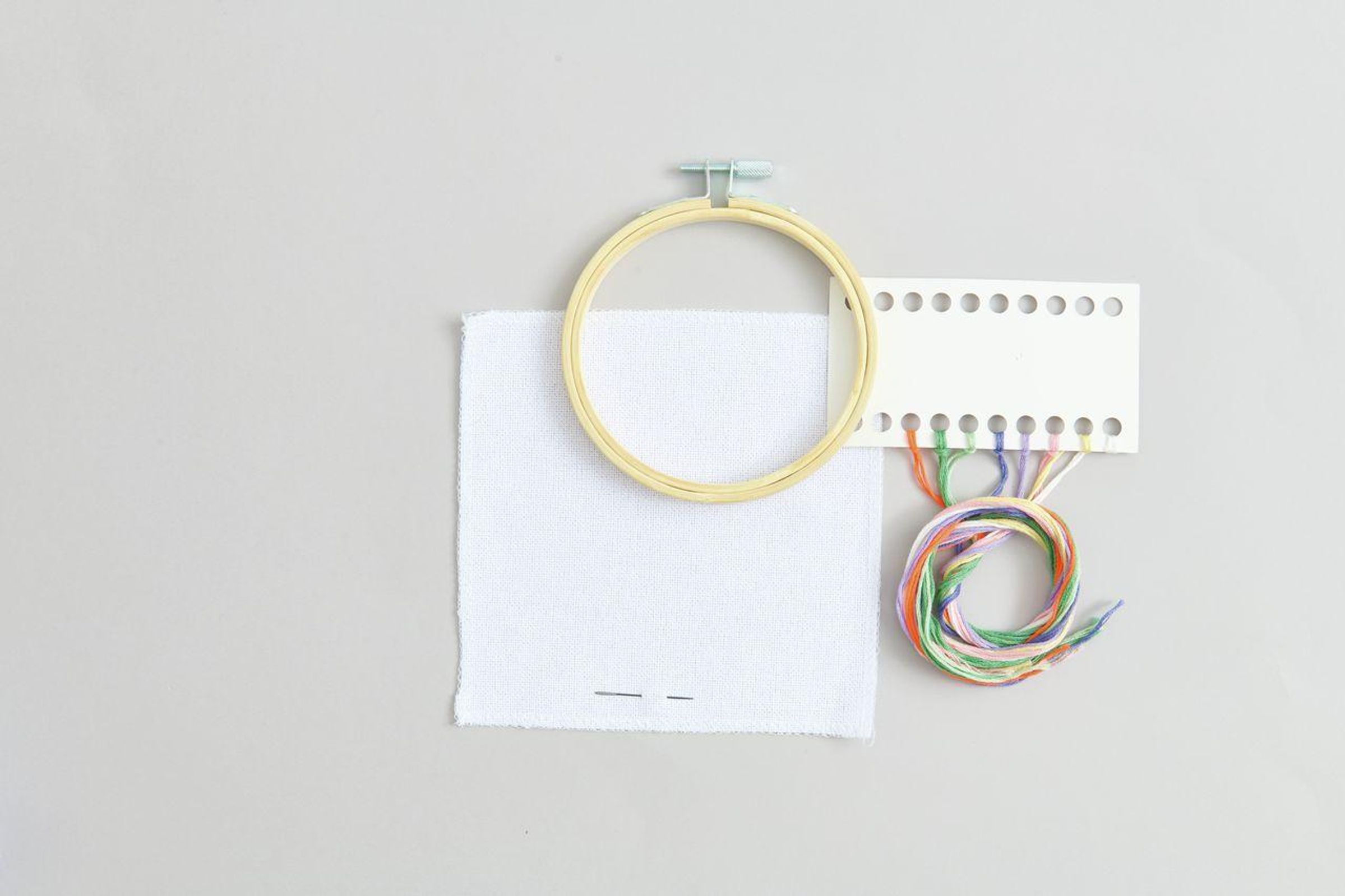 - Inhalt: Bambusstickring Ø 10 cm, 11-fädiger Zählstoff-Zuschnitt, Sticknadel, Stickgarn und Anleitung