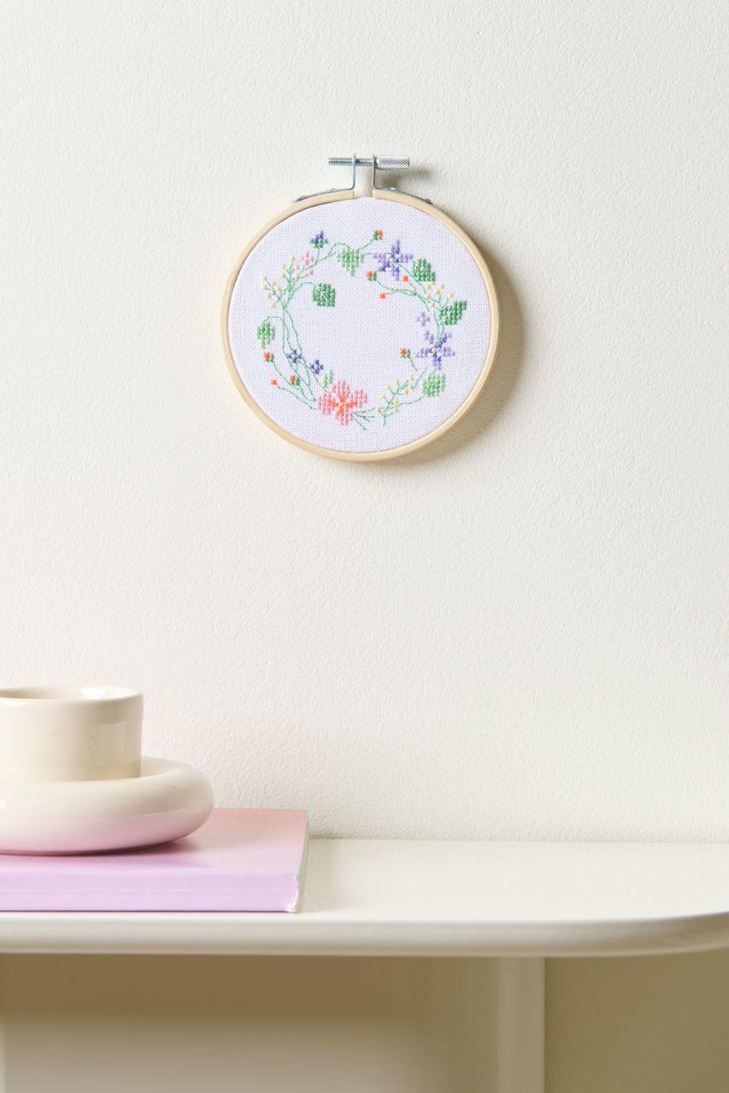 Stickpackung Gezählter Kreuzstich, Blumenkranz, Ø 10 cm