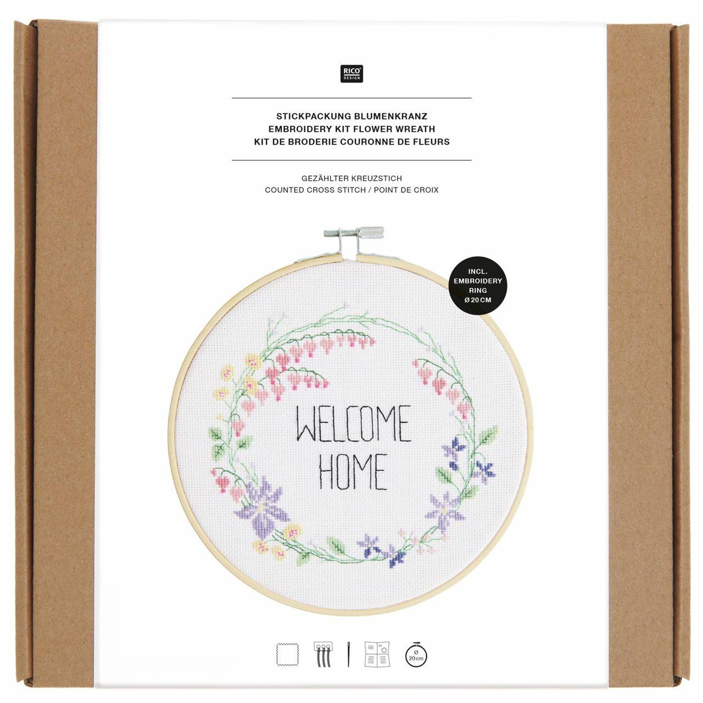 Stickpackung Gezählter Kreuzstich, Blumenkranz,Ø 20 cm (Sonstige Artikel)