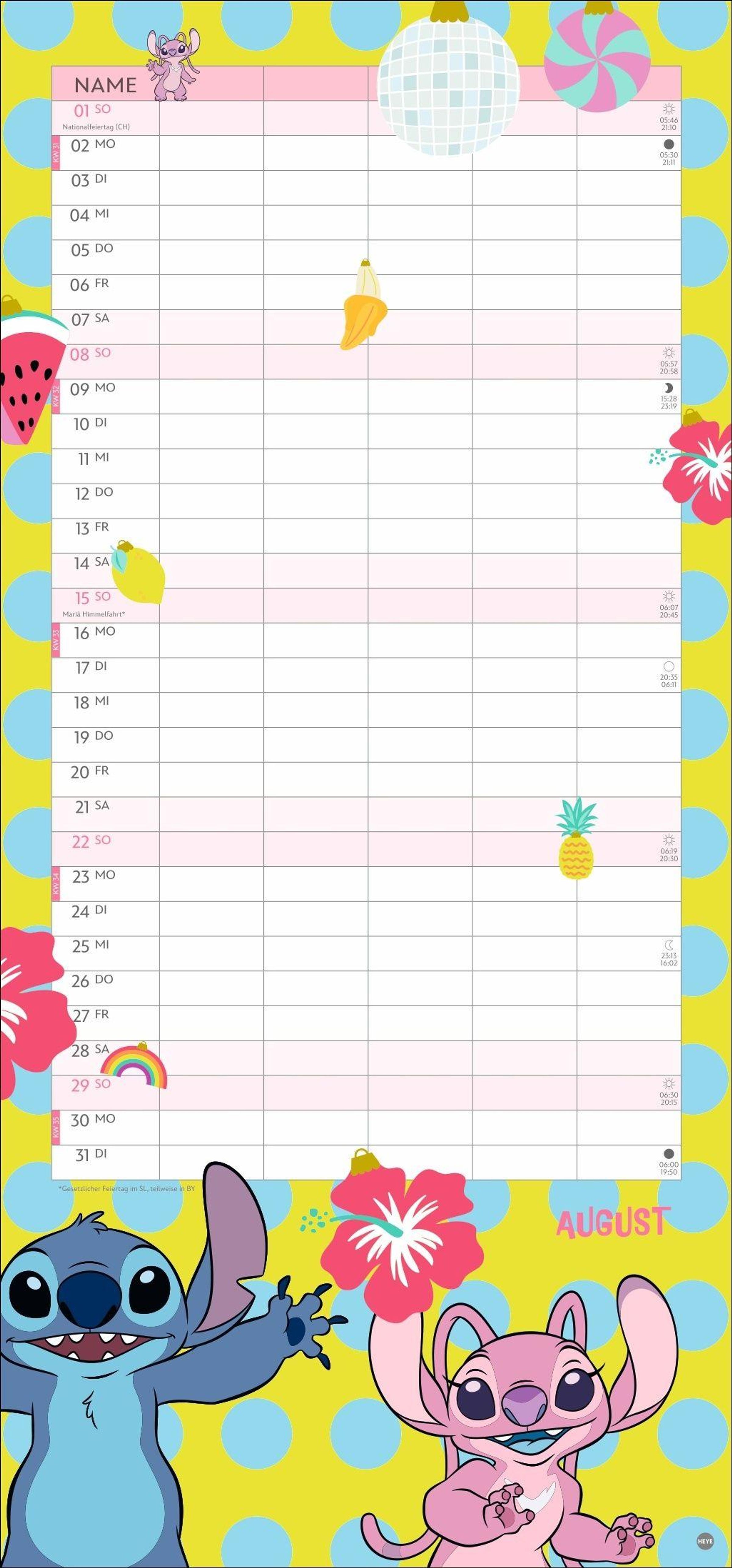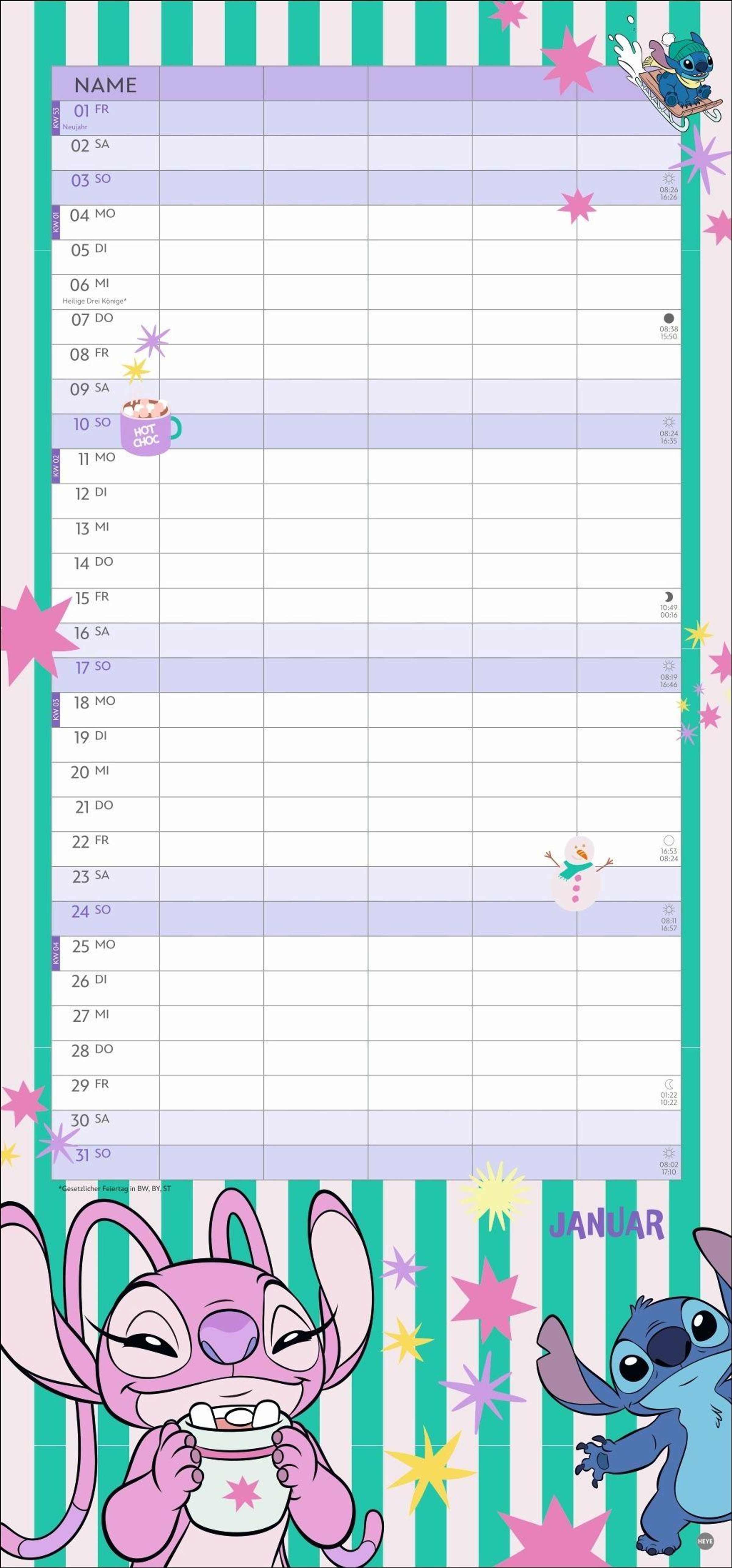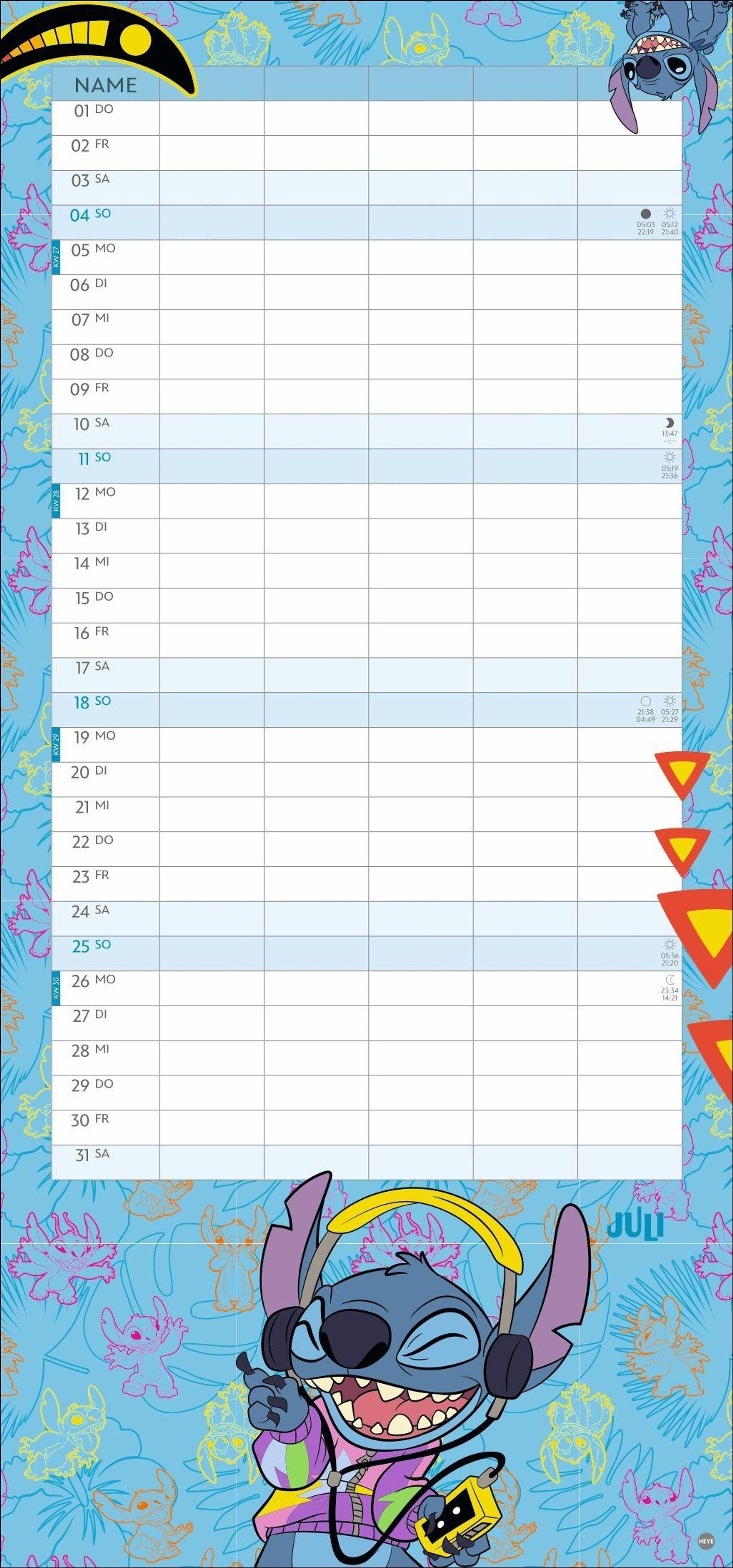• Kunterbunter Familienkalender mit dem chaotischen blauen Alien, bekannt aus "Lilo & Stitch": Alle Termine immer im Blick! Monatskalender, 21 x 45 cm