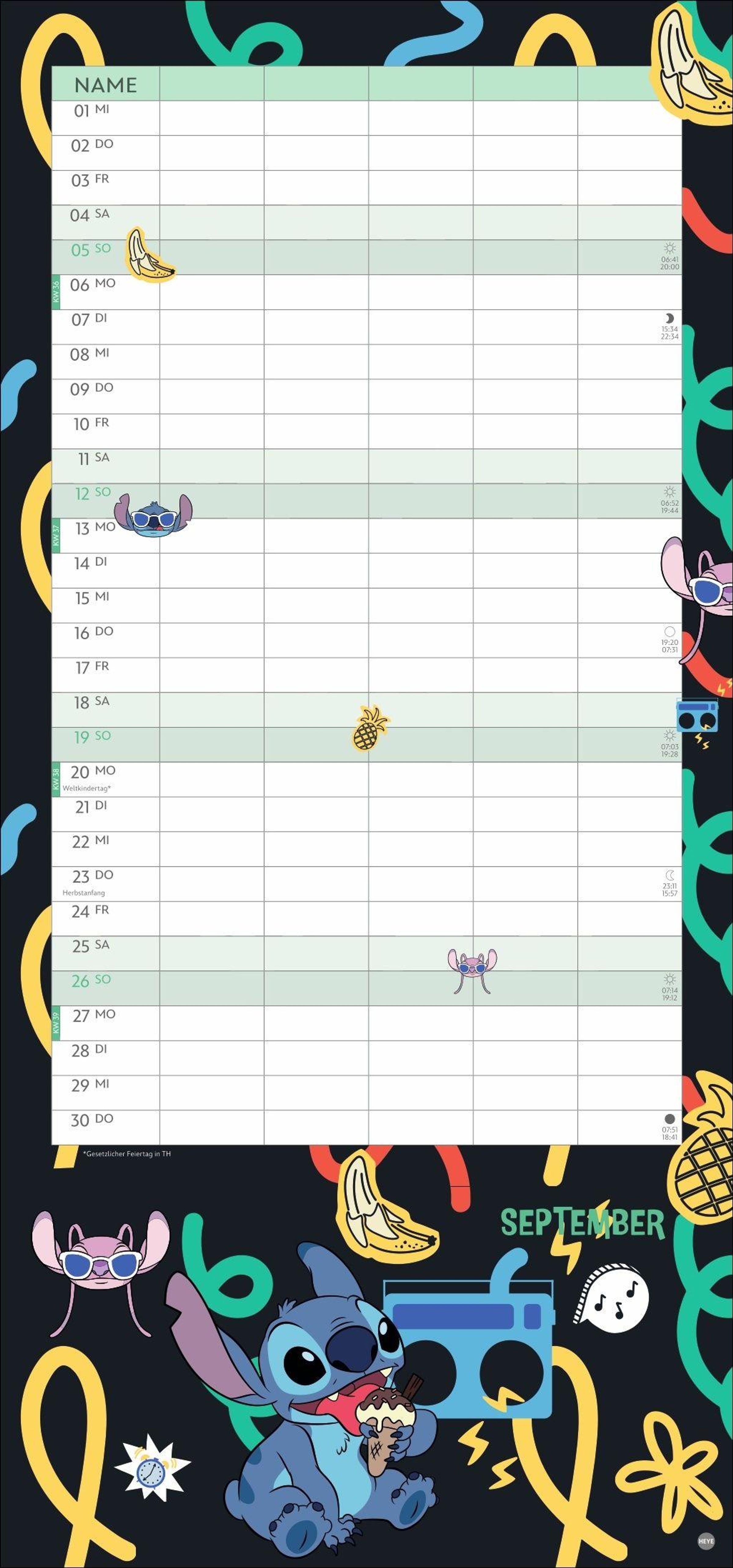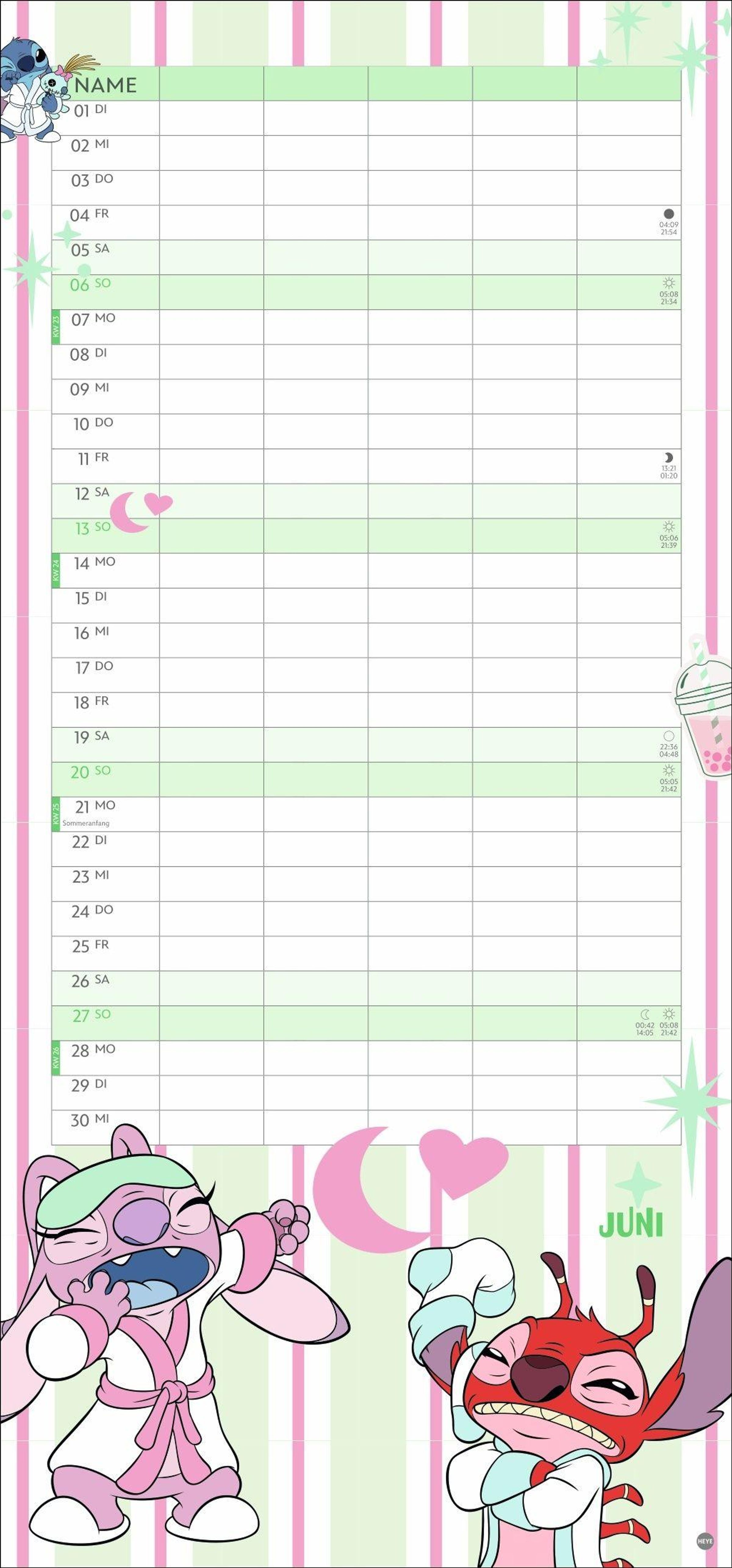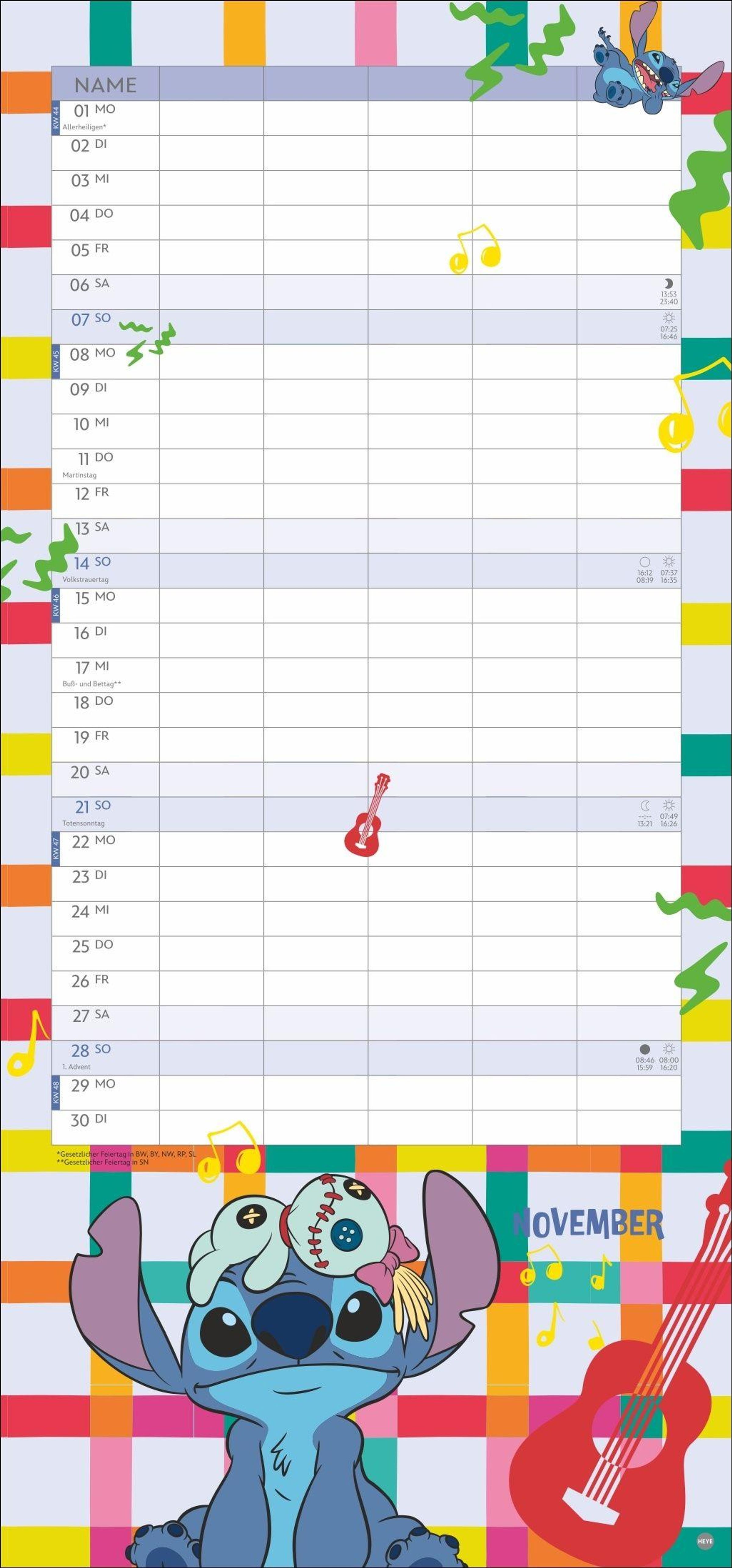 • Kunterbunter Familienkalender mit dem chaotischen blauen Alien, bekannt aus "Lilo & Stitch": Alle Termine immer im Blick! Monatskalender, 21 x 45 cm