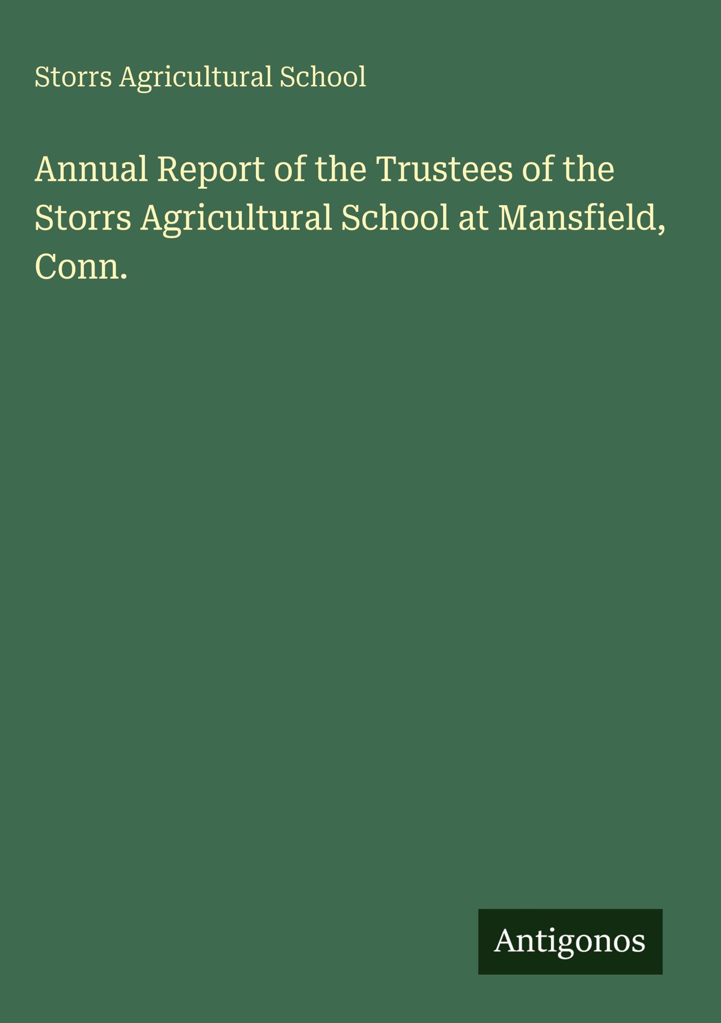 Annual Report of the Trustees of the Storrs Agricultural School at Mansfield, Conn.