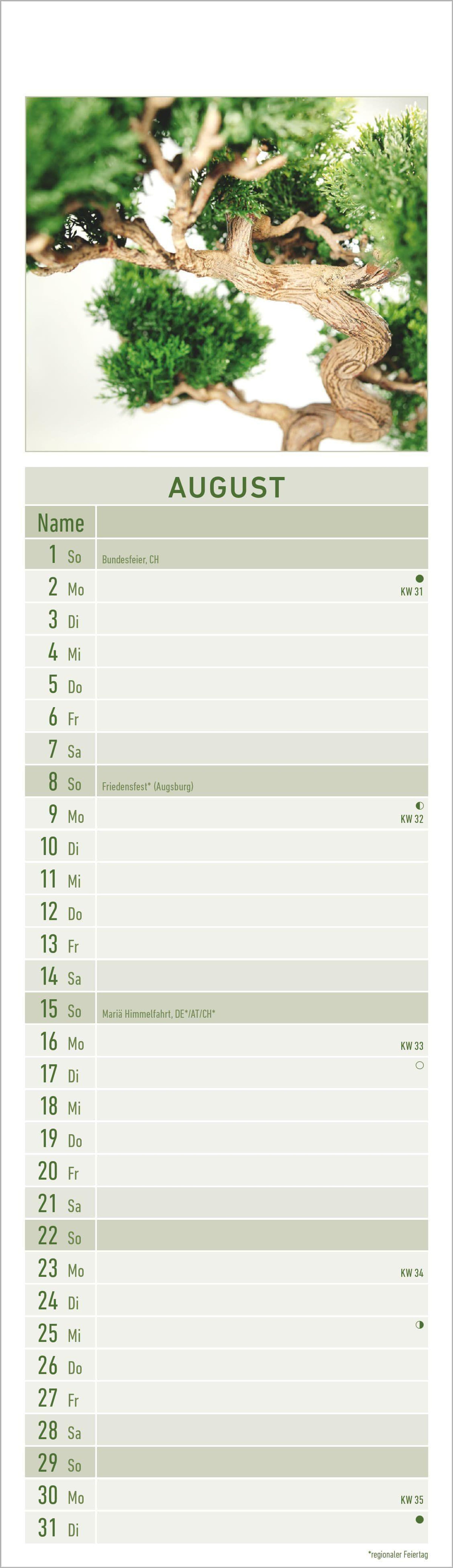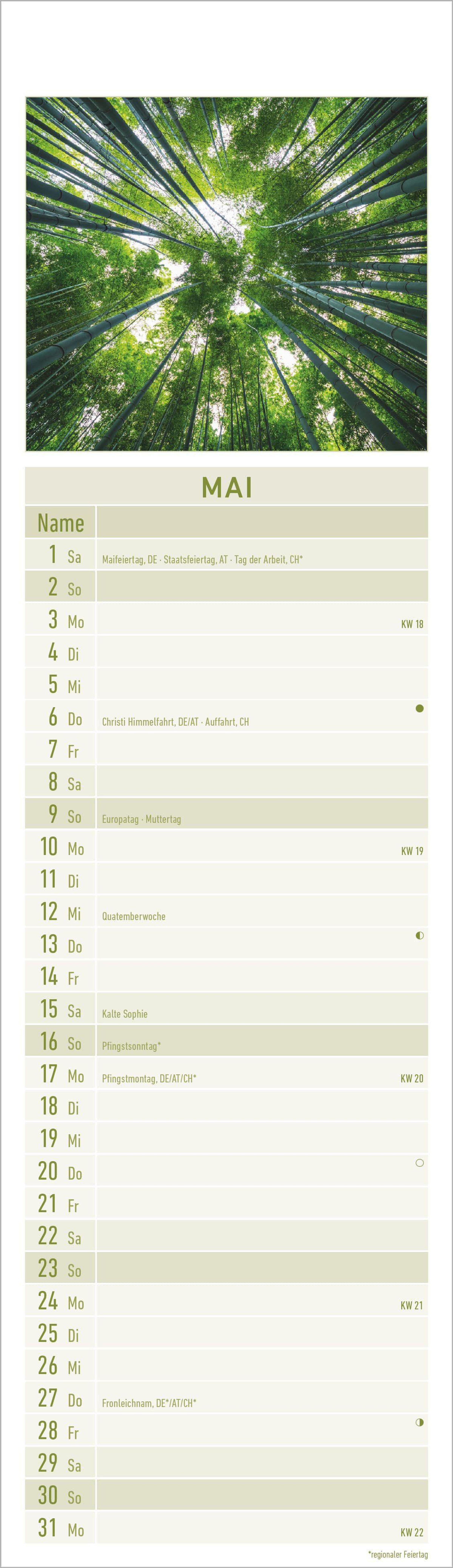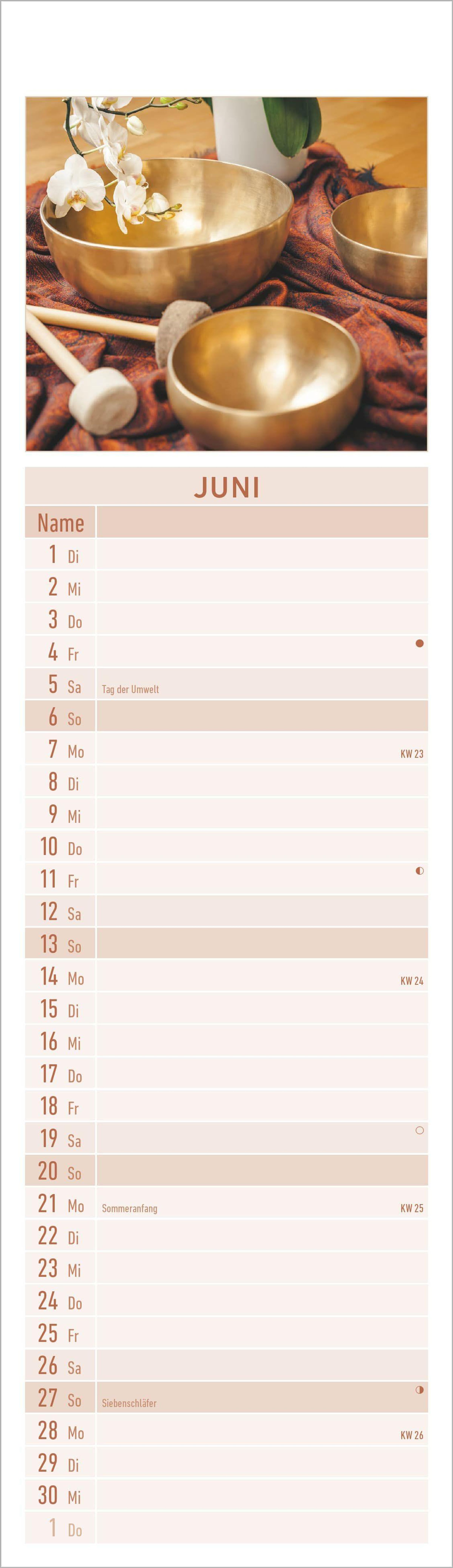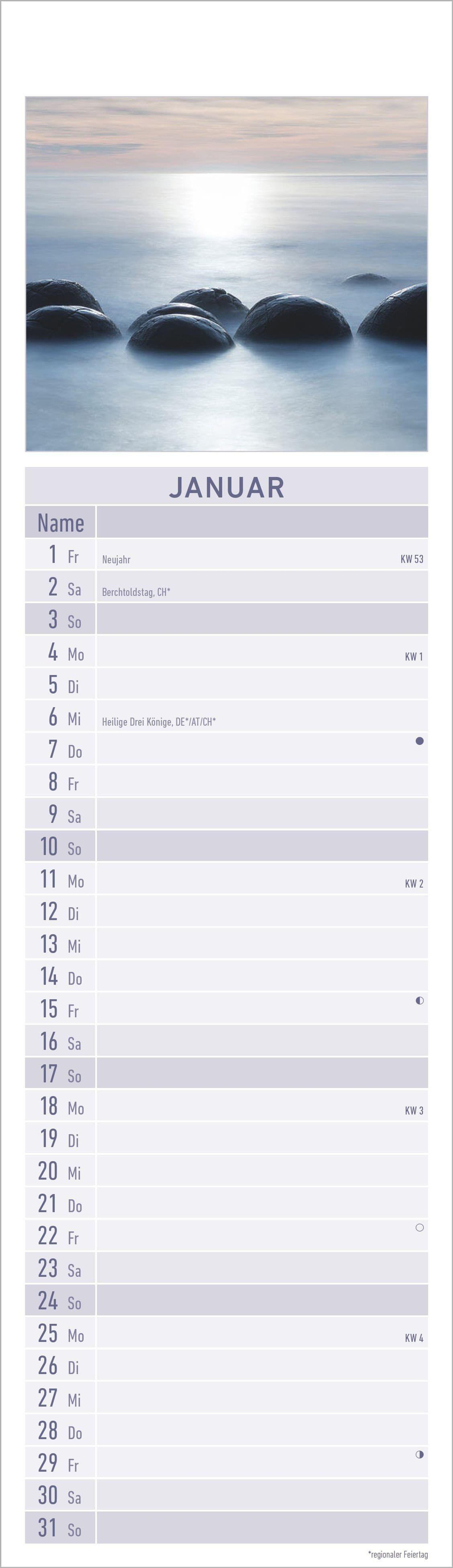 Ein Kalender, der durch sein kompaktes Design und seine beruhigenden Motive Ordnung und Gelassenheit in Ihr Zuhause bringt.