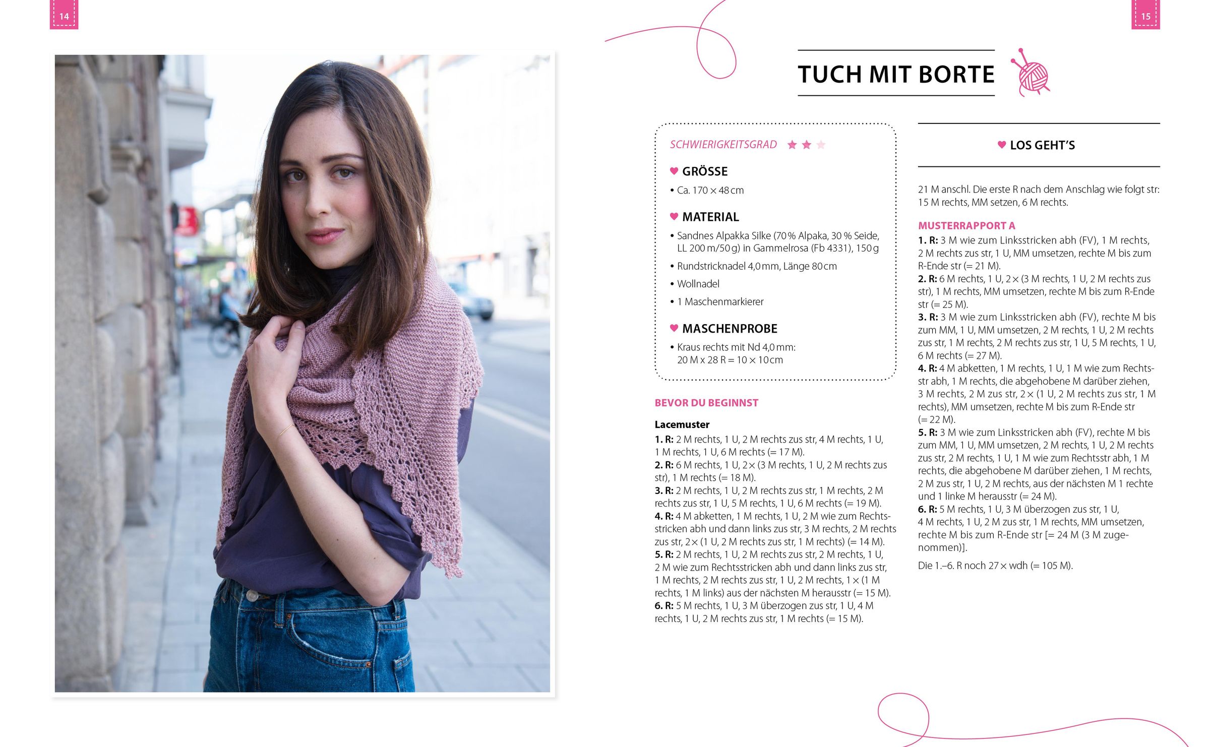 Tücher machen süchtig! Zum neuen Mantel würde ein Tuch in Altrosa perfekt passen und für die lauen Urlaubstage fehlt noch ein leichtes Umhängetuch. Ob hauchzart oder kuschelig, ob Dreieckstuch oder filigrane Lace-Stola - die zeitlosen Modelle sind zu jeder Jahreszeit das ideale Accessoire und halten zudem noch warm. Die praktischen Strickschriften und detaillierten Anleitungen laden jeden Strickanfänger zum Nacharbeiten ein.