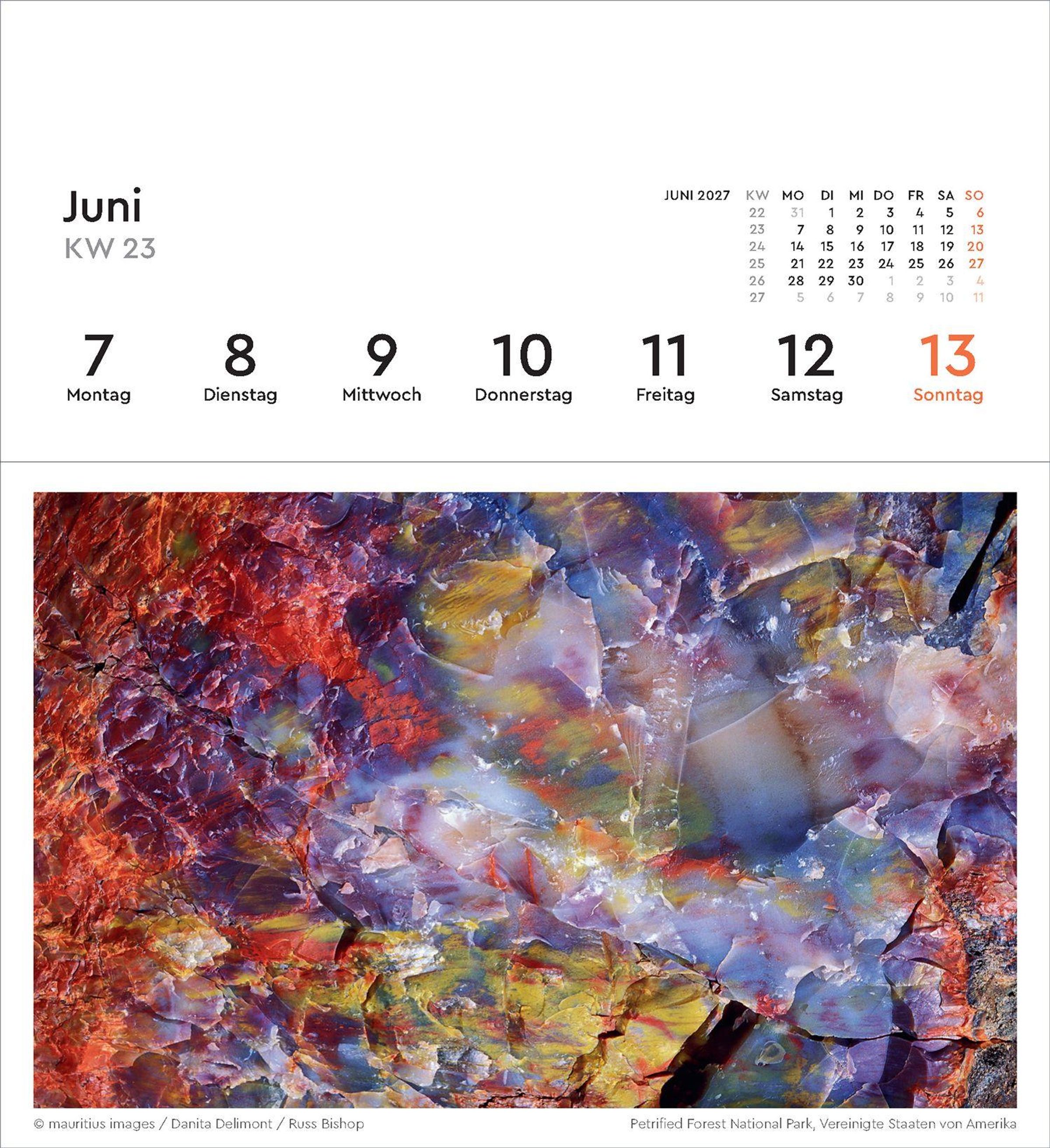 53 fantastische Fotografien in hochwertigem Druck können als Postkarten gesammelt oder verschickt werden. Natürlich enthält der Kalender einen praktischen wöchentlichen Terminplaner.