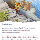 In Pikas Geschichte sind wichtige Wörter aus dem Grundwortschatz der 1. Klasse hervorgehoben und darunter zum geführten Schreiben vorgeprägt.