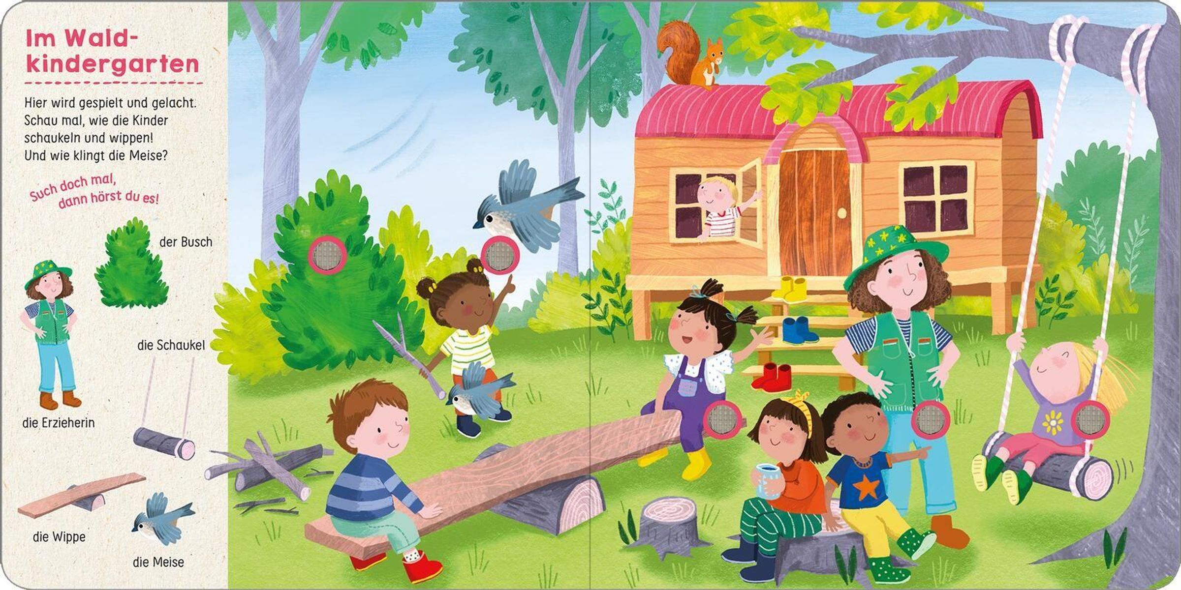 Auf insgesamt 5 Themenseiten haben sich die Lieblingswaldtiere der Kleinen versteckt. Von der klassischen Waldszene über den Waldspaziergang bis hin zum Waldkindergarten ist alles abgebildet, was der Wald zu bieten hat. Entdeckst du die Tiere vom Seitenrand in der bunten Szene wieder? Auf Knopfdruck werden diese zum Leben erweckt und bieten einen spannenden Sound. Ein perfekter Kleinkindbegleiter und zudem ein toller Start in die Bilderbuchwelt. Für alle kleinen und großen Waldfans!