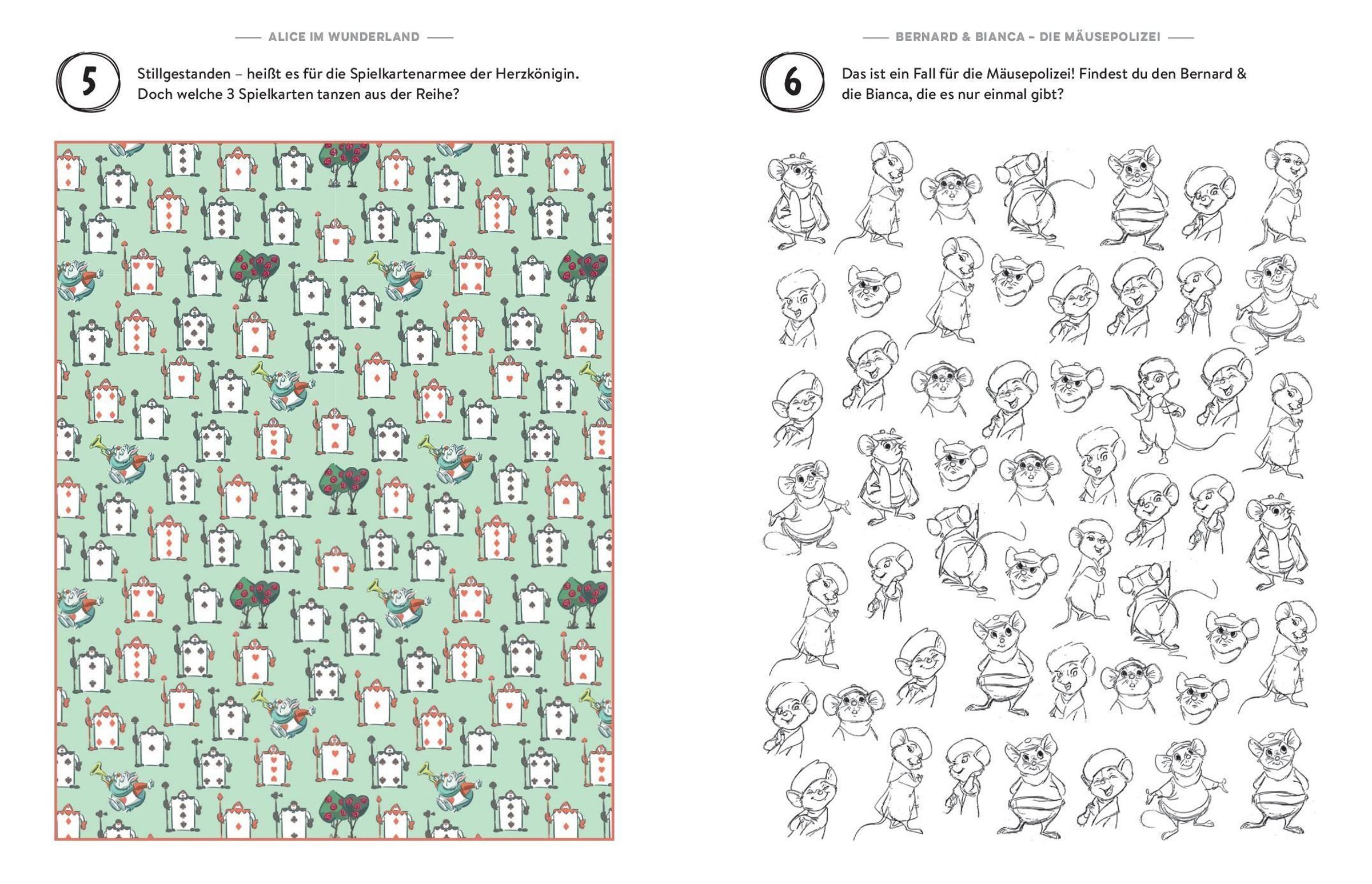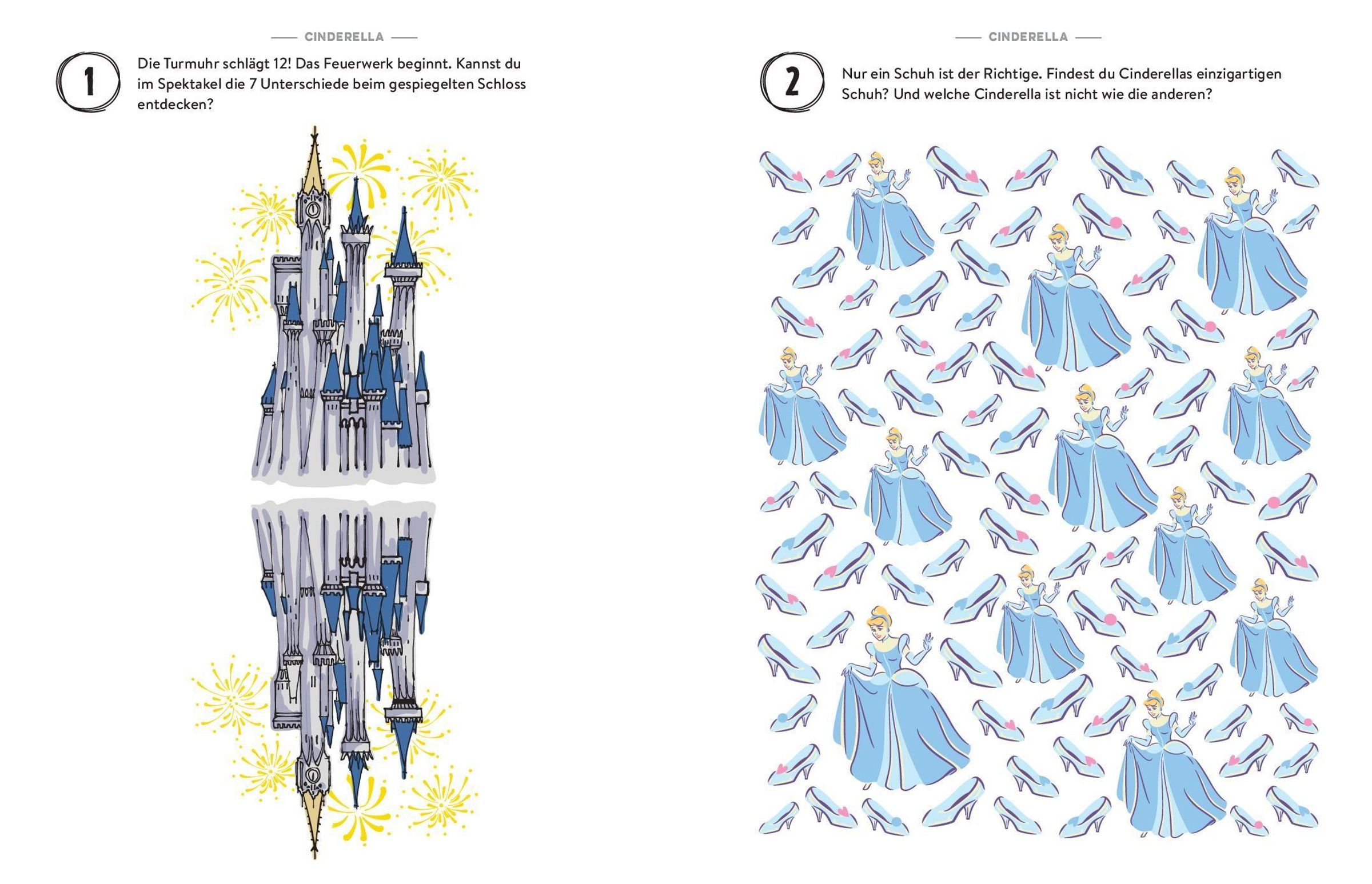 80-mal ist hier dein Adlerauge gefragt: Mache dich auf die Suche nach Alice Lieblingstasse für eine Teezeit beim Hutmacher und wo ist Cinderellas verlorener Schuh? Findest du die Unterschiede zwischen den Märchen-Schlössern? Und an welcher Stelle hat sich Puuh für ein Nickerchen versteckt? Schau ganz genau hin, dann findest du die versteckten Details.