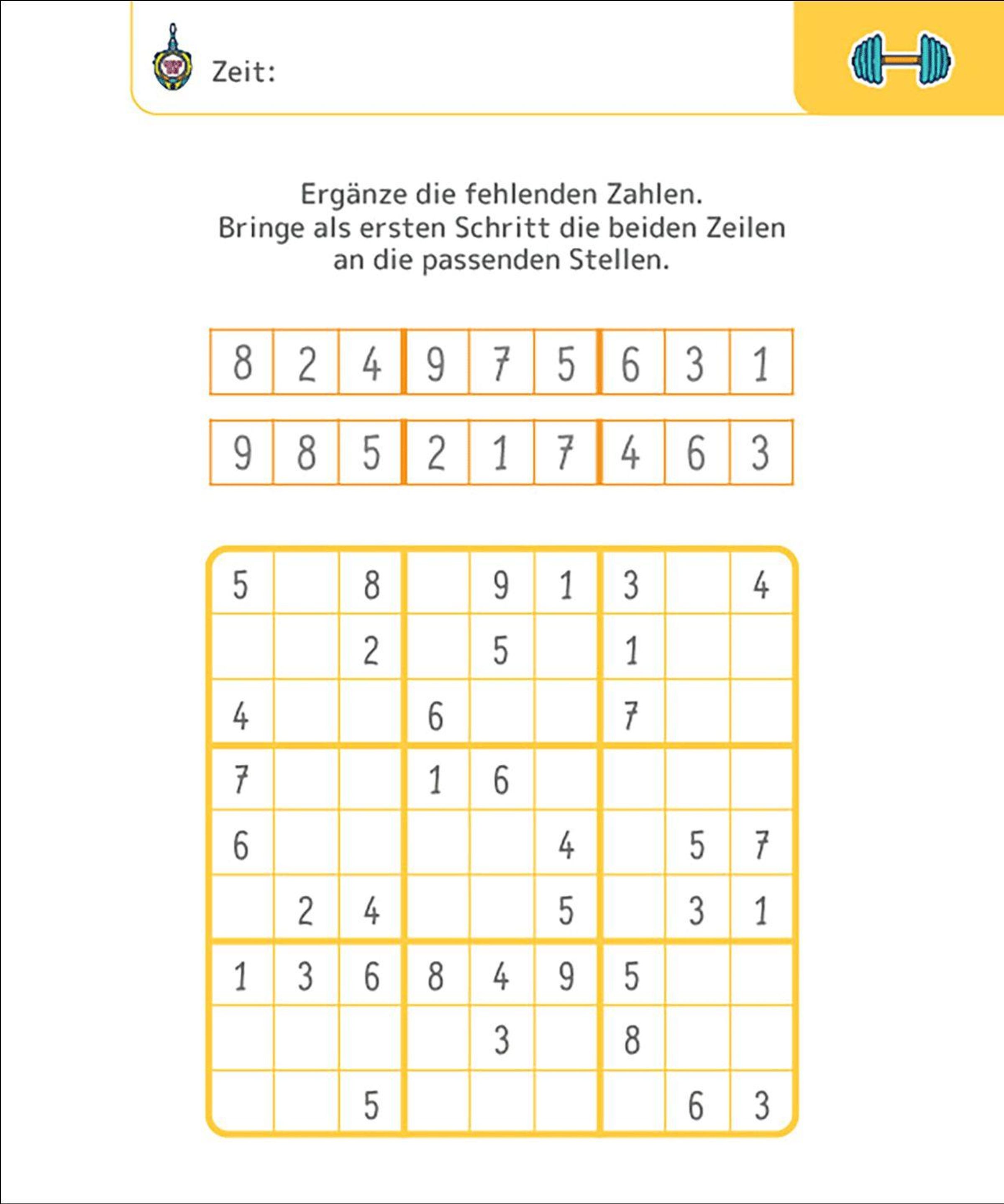 Welchen besonderen Challengecharakter bietet der Sudoku-Block? Auf jeder Seite können die Kinder ihre eigene Bestzeit festhalten und sich so immer wieder selbst herausfordern.