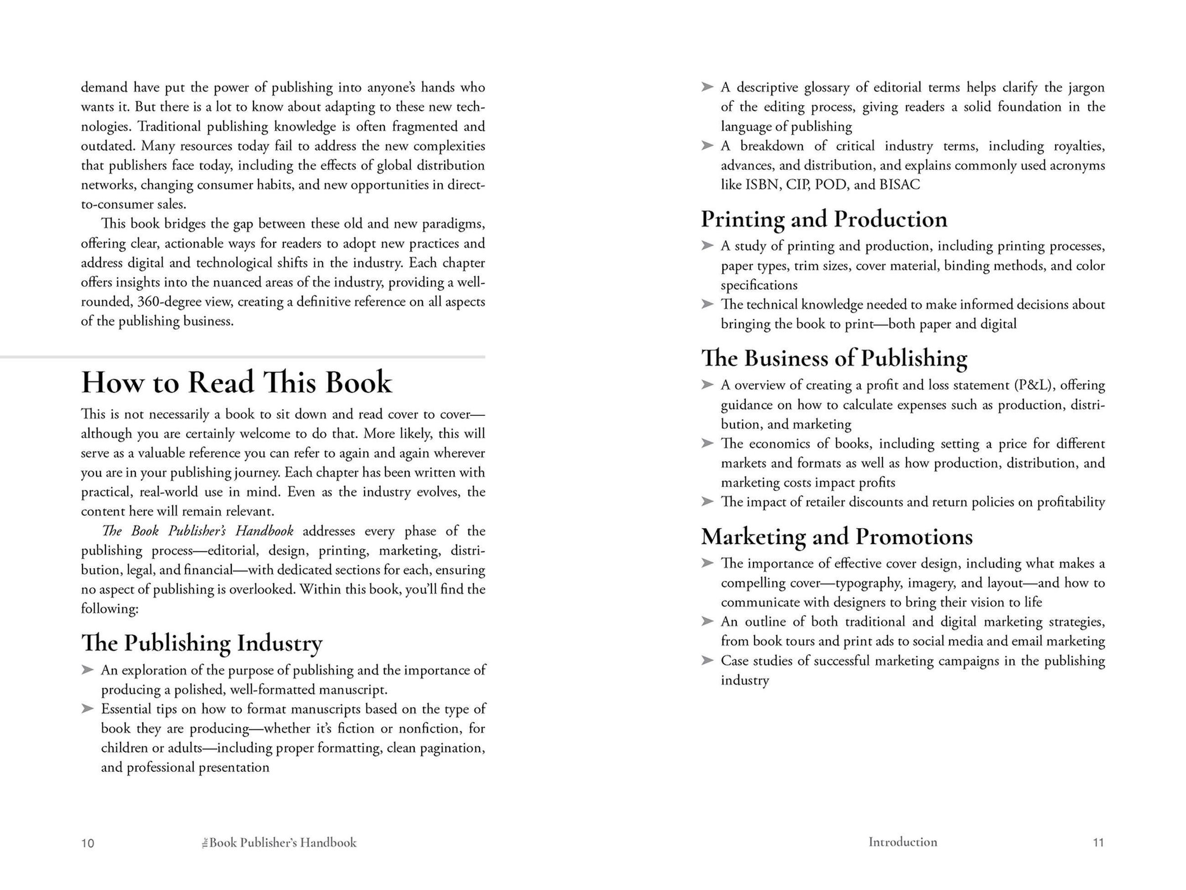 Find all these answers and more in The Book Publisher's Handbook , a comprehensive resource for both aspiring and established independent publishers who want to master the ins and outs of the publishing process. This guide offers clear and actionable advice and equips you with the tools and knowledge needed to succeed in today's ever-changing publishing landscape. Inside you'll find: