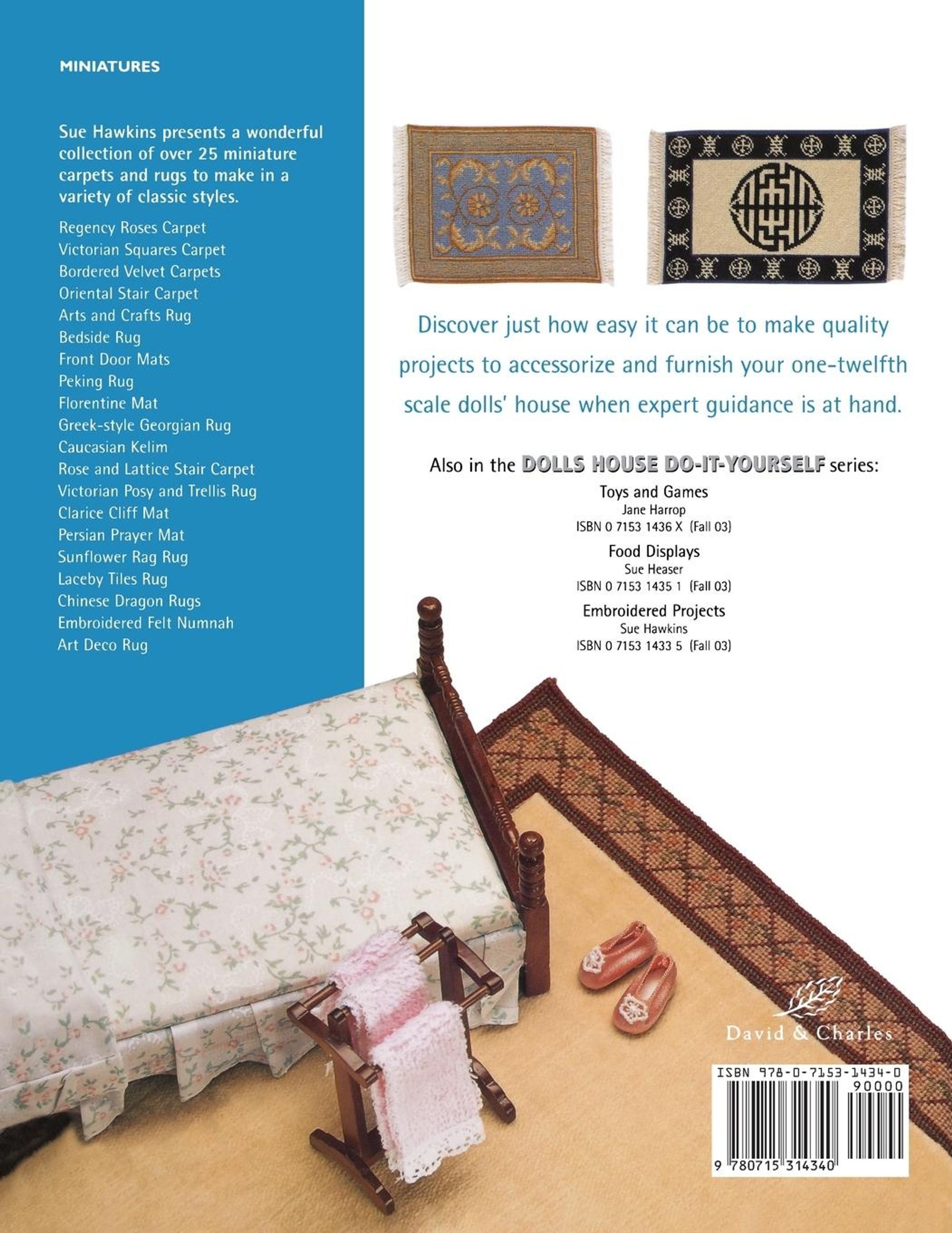A selection of over 25 carpets and rugs to make for the dolls' house in a variety of classic styles. This book is all you need to create beautiful carpets and rugs of all shapes, sizes and designs, whatever the size or period of the house. The historical and style details of each piece are given, with suggestions for where each one could go in the dolls' house. There are 25 stitched projects, with several variations based on the originals. Each project has a short introduction explaining the techniques used, and ways of adapting the design. There is a wide selection of canvas sizes and fabrics, with stitches including tent stitch, cross stitch and a variety of other stitches to cater for all abilities. Charts for alternative colour ways or designs are regularly included. All the designs have symbol-on-colour stitching charts, and materials, tools and techniques are fully explained, accompanied by step-by-step diagrams and photographs.