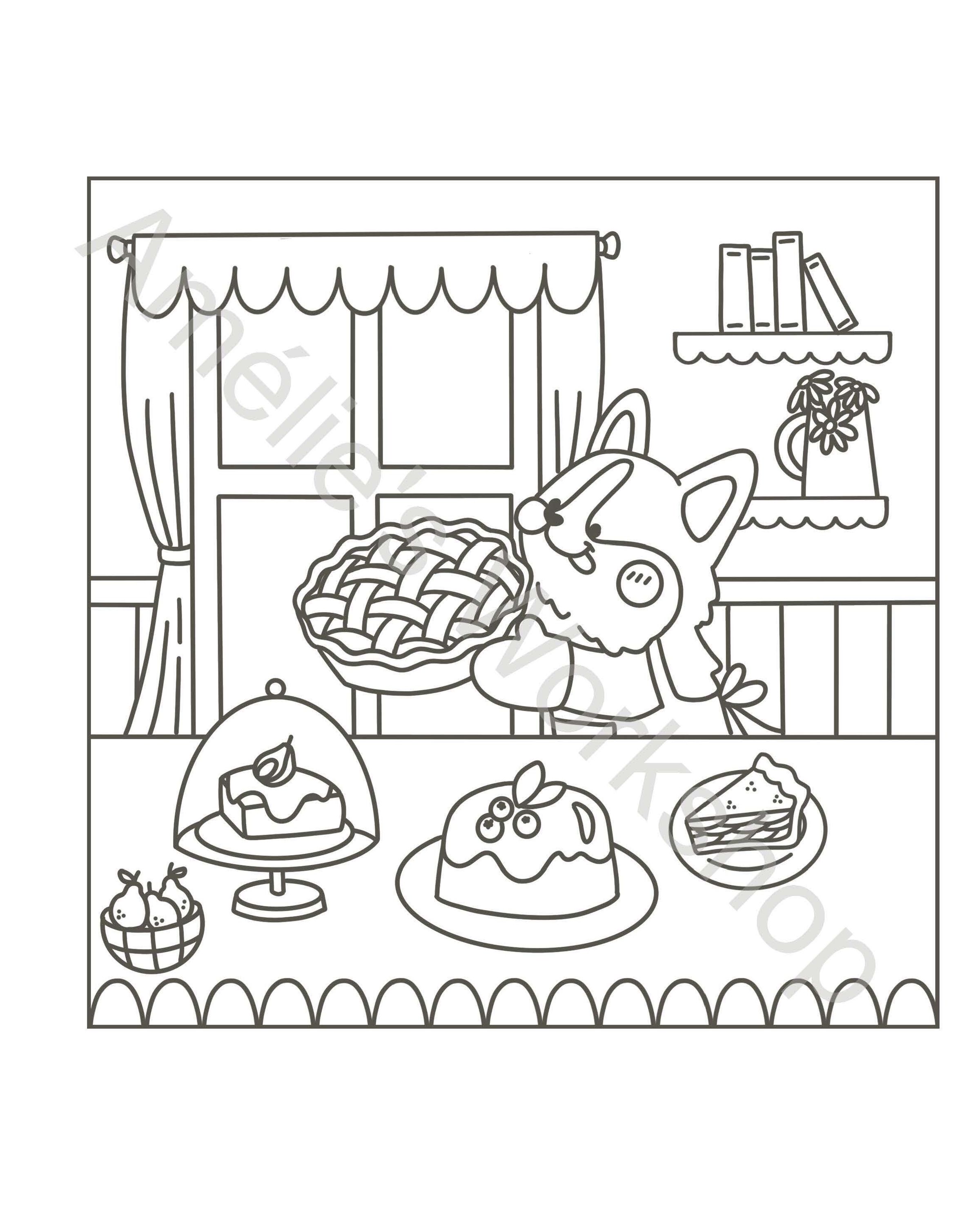 45 süße & knuffige Malvorlagen: Wohlfühlstunden mit Corgi, Capybara, Katze und Bärchen