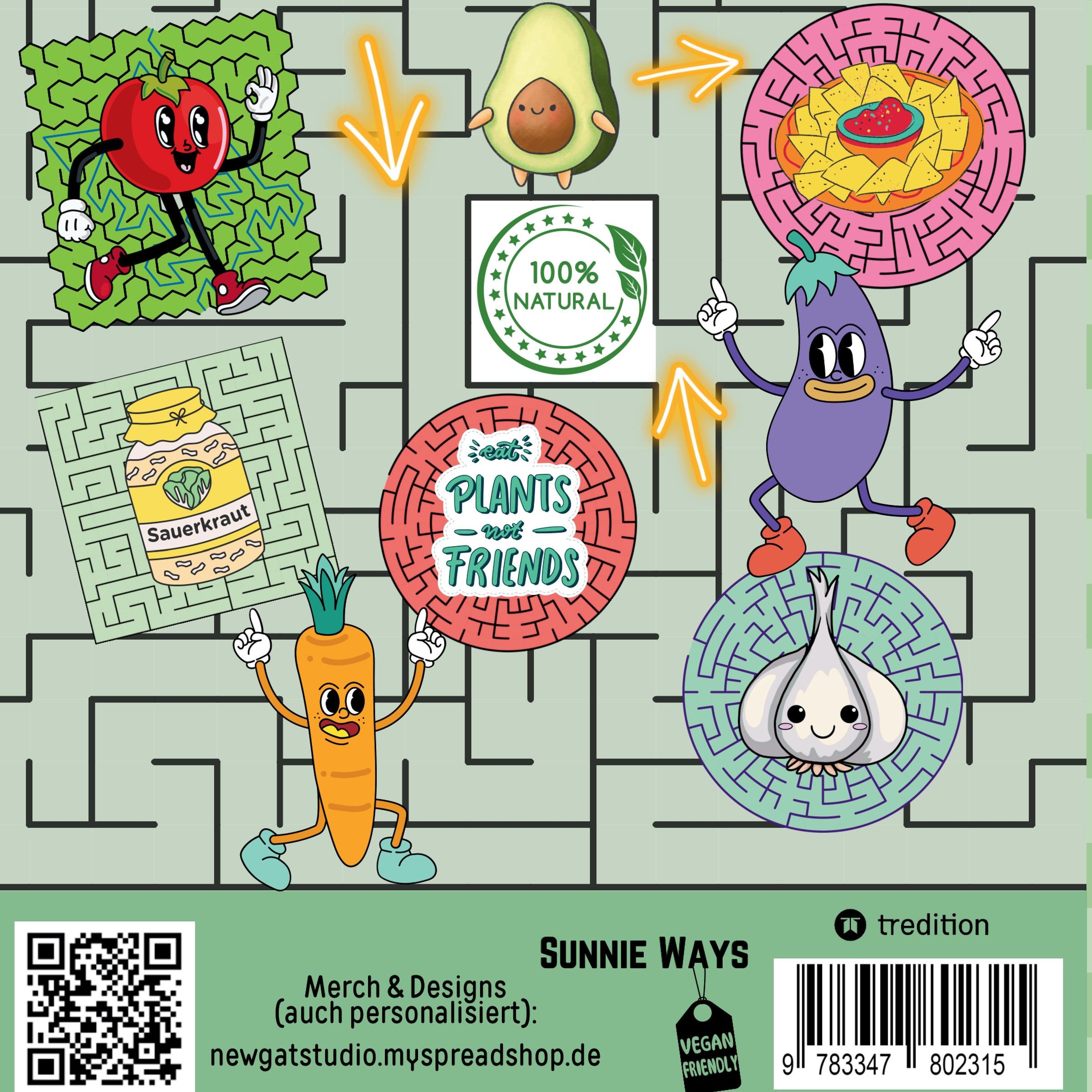 Sunnie Ways: Labyrinth Rätselbuch Rätselblock für Erwachsene, Jugendliche - Geschenkidee für Veganer, Vegetarier..., Kartoniert / Broschiert