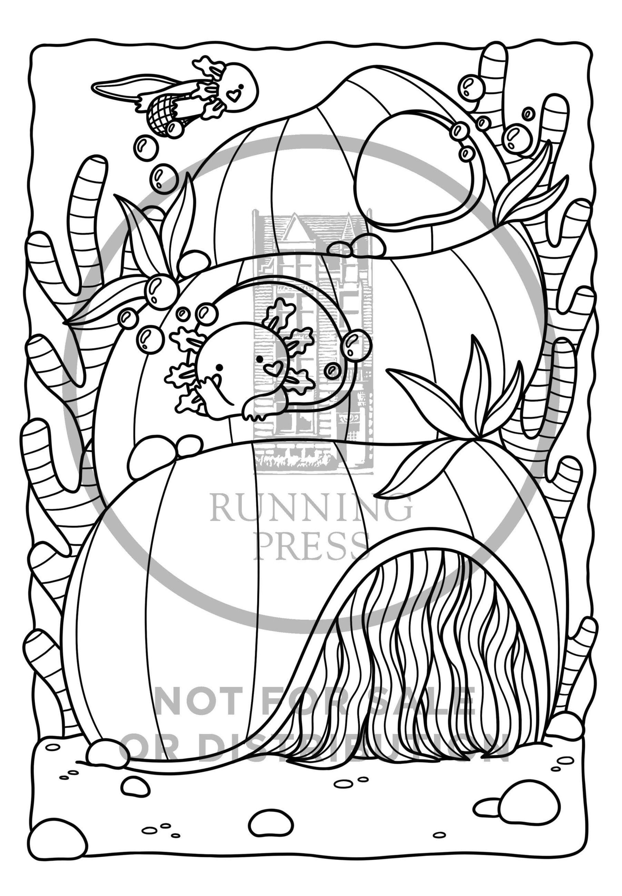 Step into the calm and serene underwater world of axolotls with this coloring book, which includes: