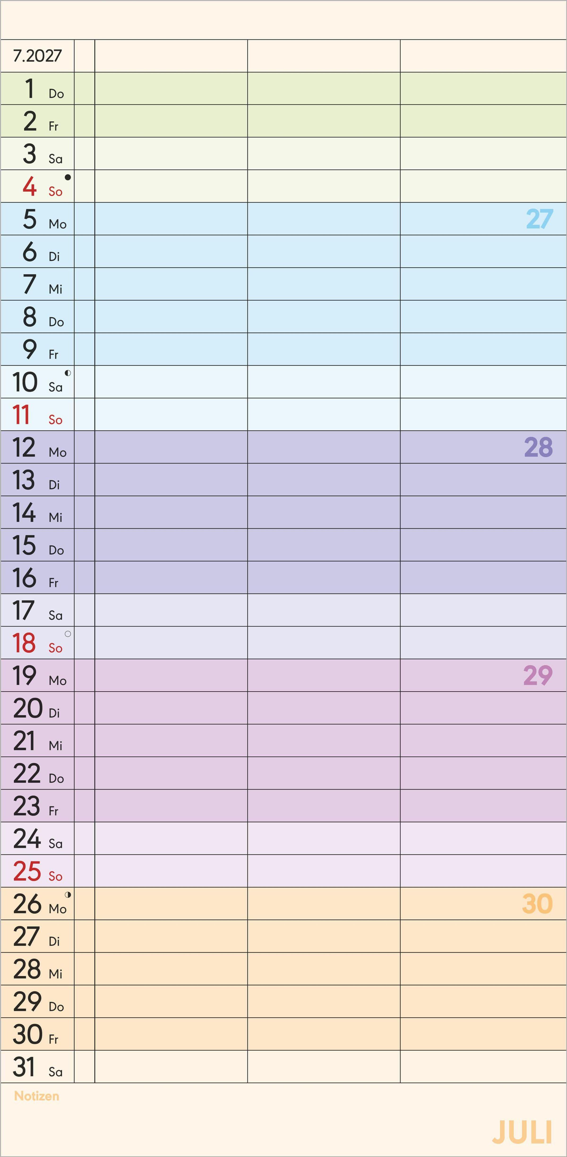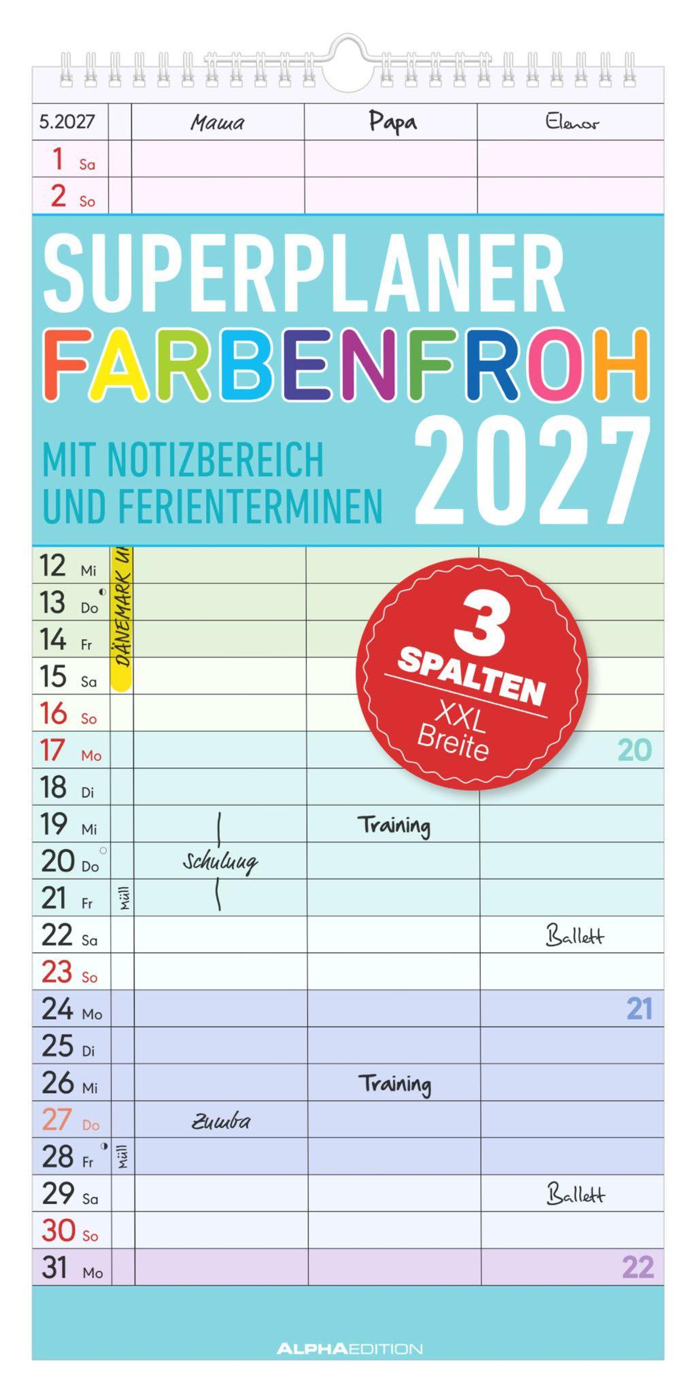 Superplaner Farbenfroh - 3 Spalten 2027