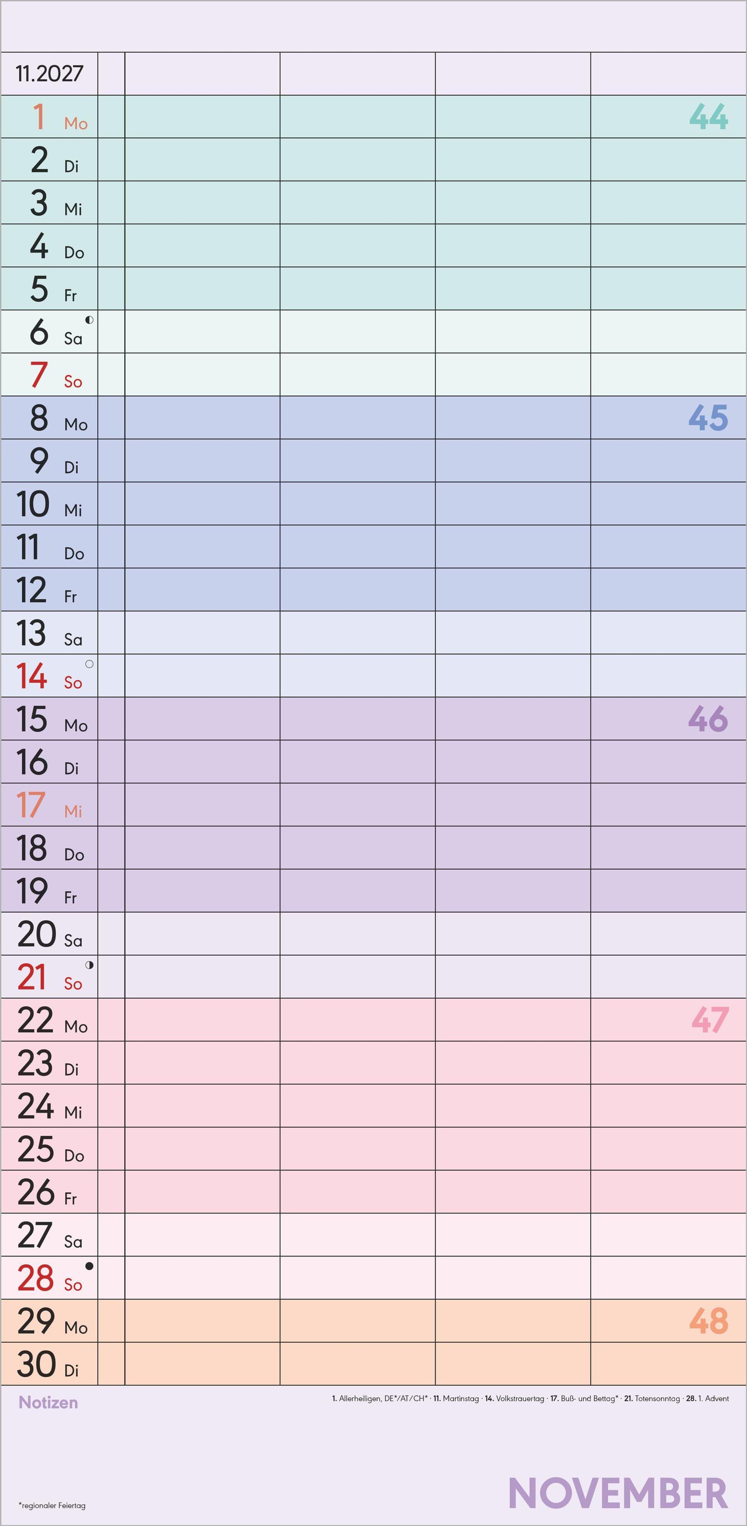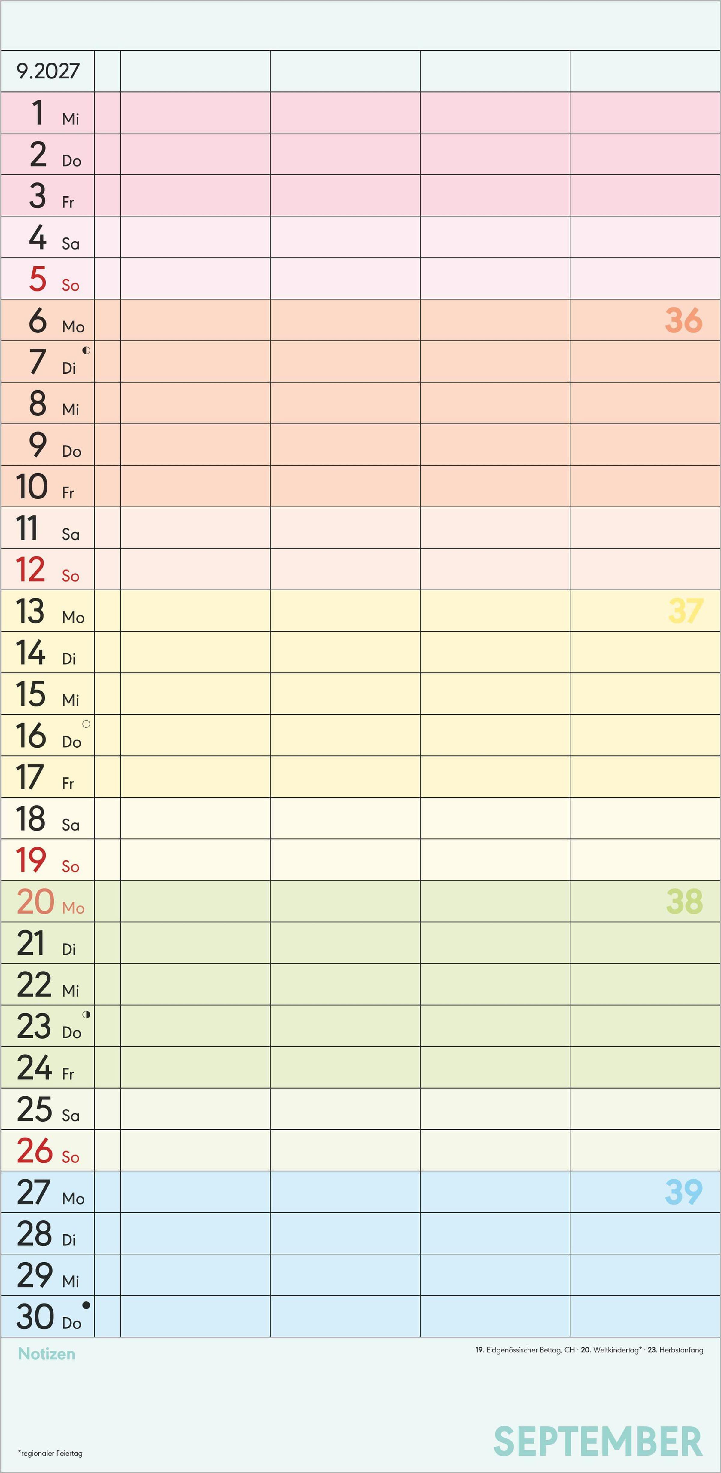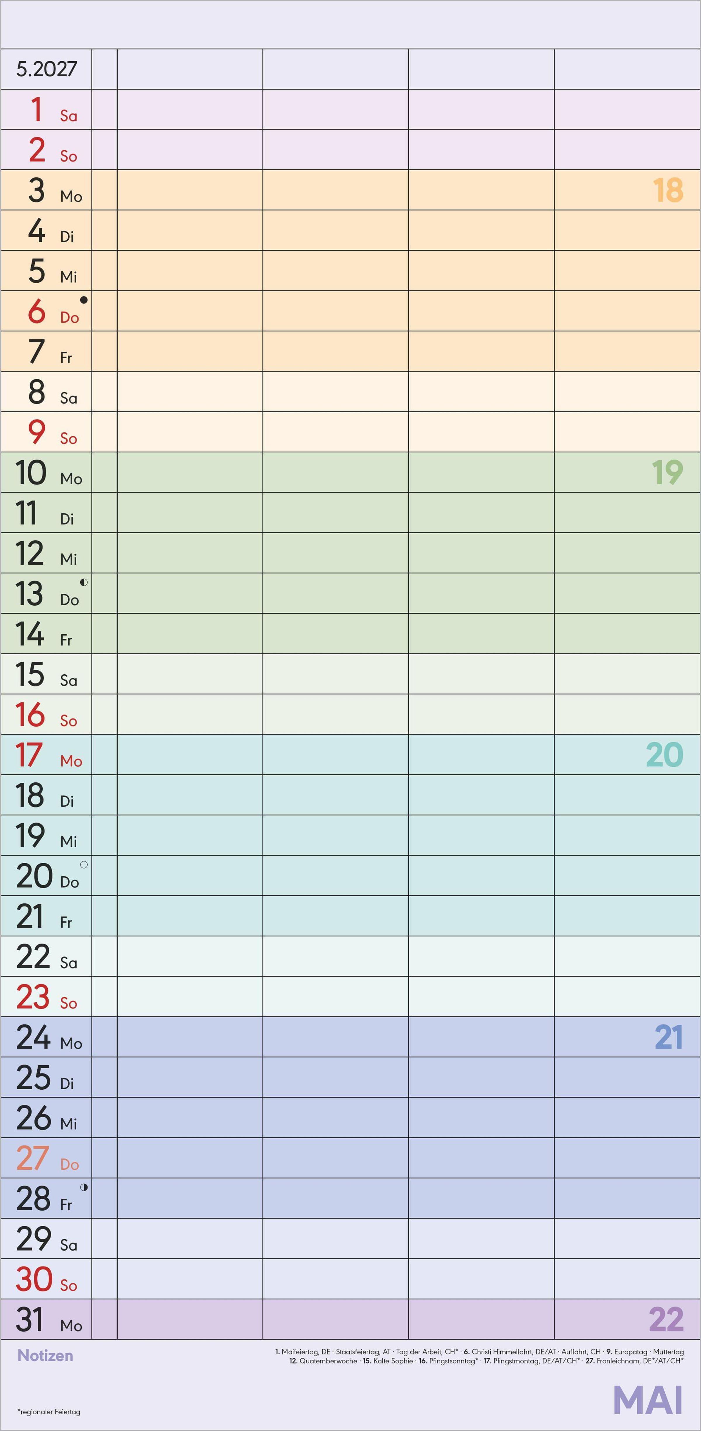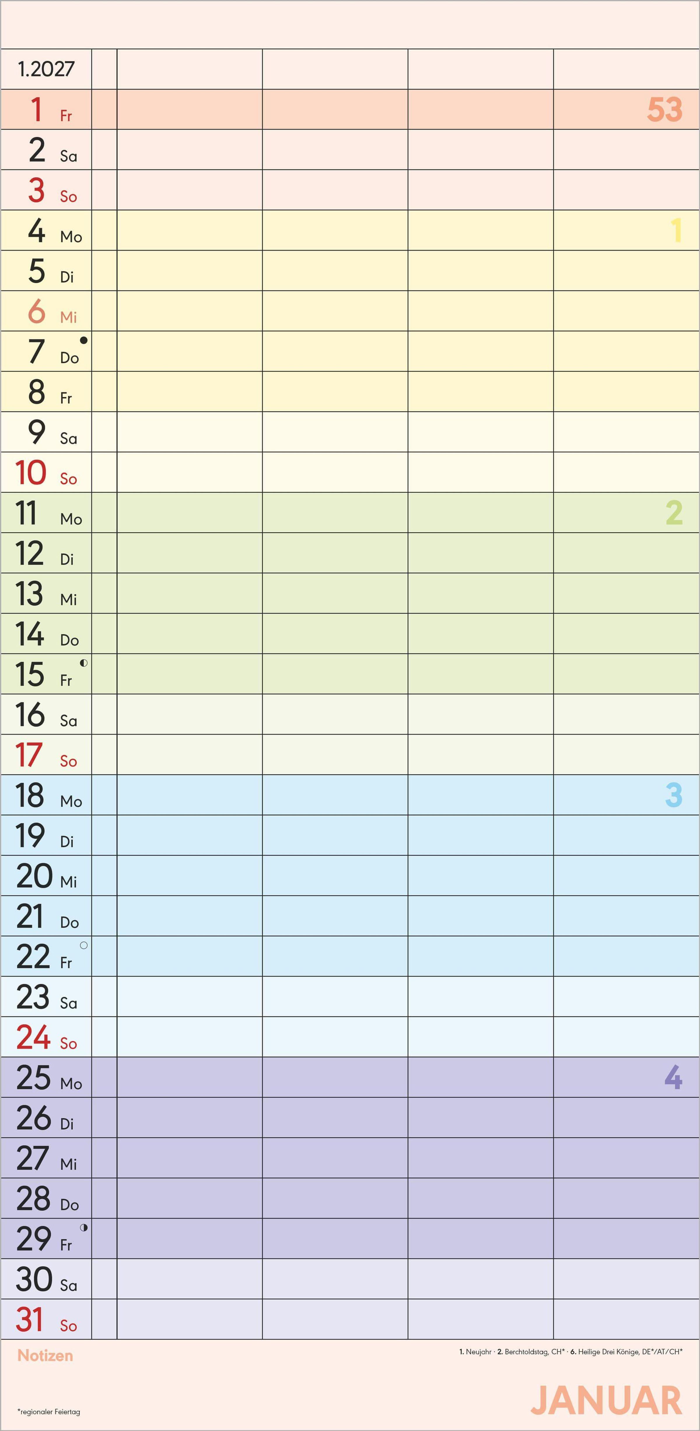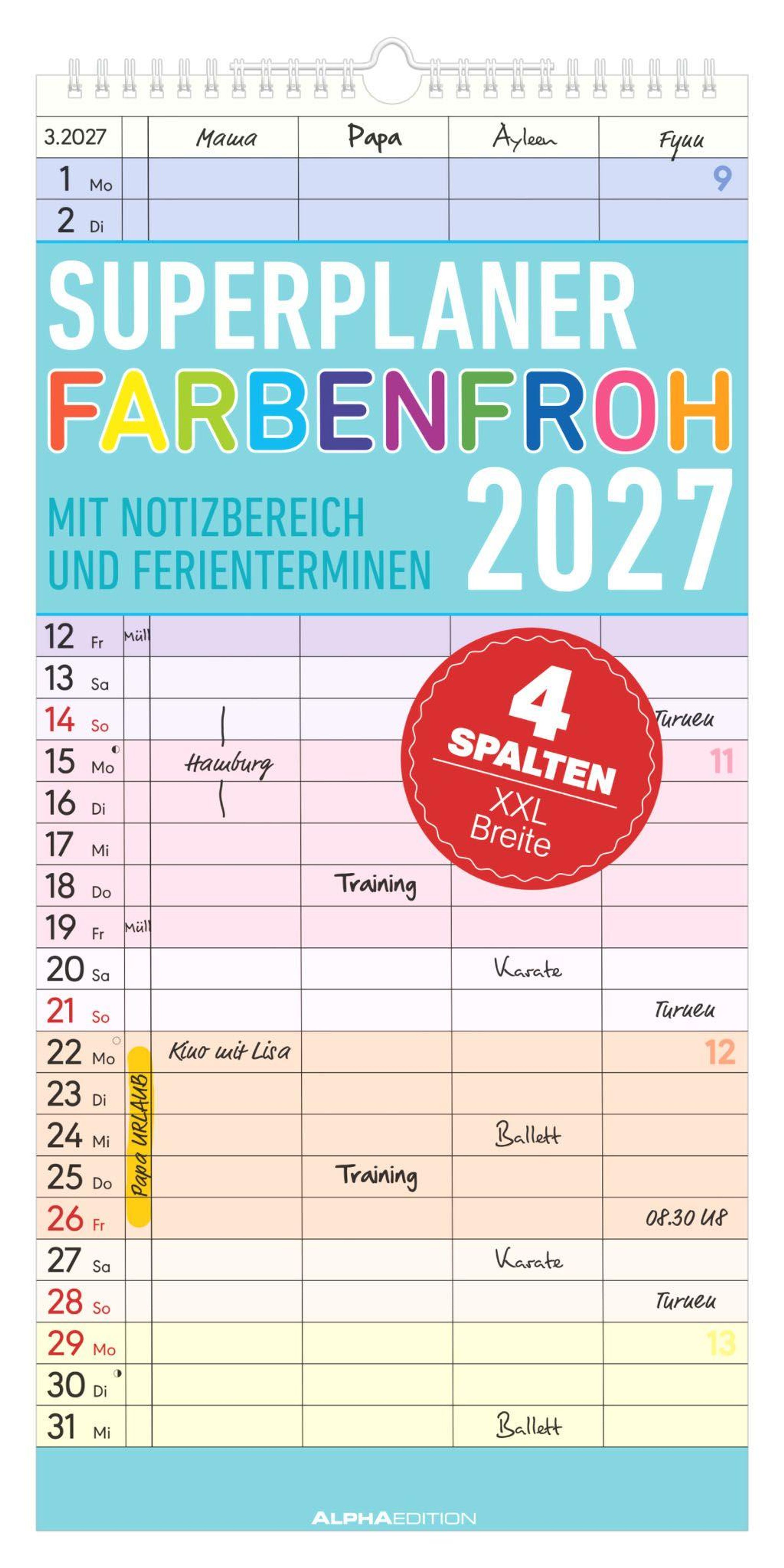 Superplaner Farbenfroh - 4 Spalten 2027 (Kalender)