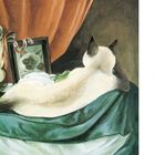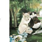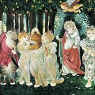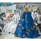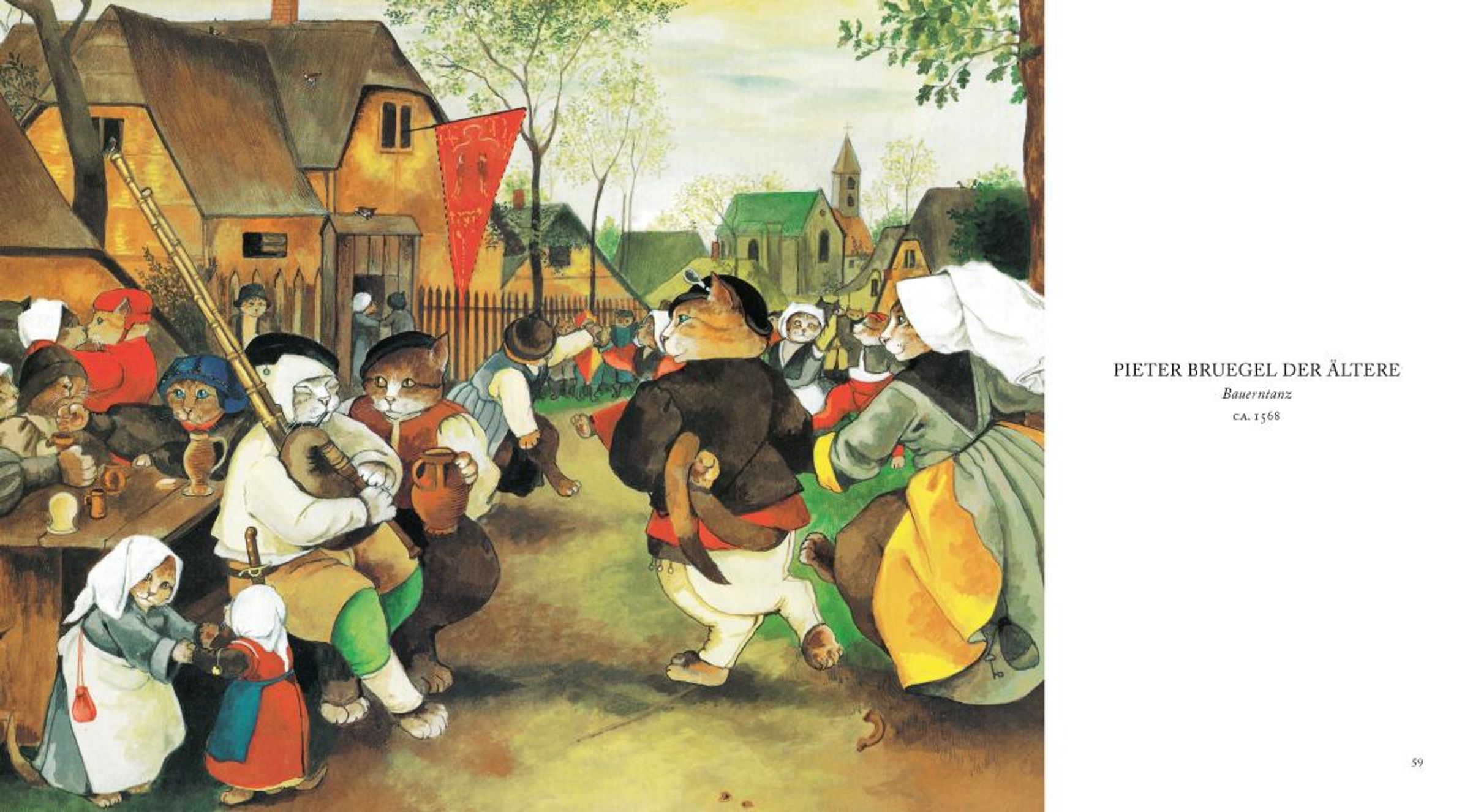 Gesichter mit Schnurrhaaren spähen unter Hauben mit Bandschlaufen und Spitzen hervor. Weiche, dicke Pfoten greifen nach Blumen, Hüten und Obst. Es gibt leidende Jungfern, biblische Propheten und auch den gepeinigten Künstler mit dem abgeschnittenen Ohr.