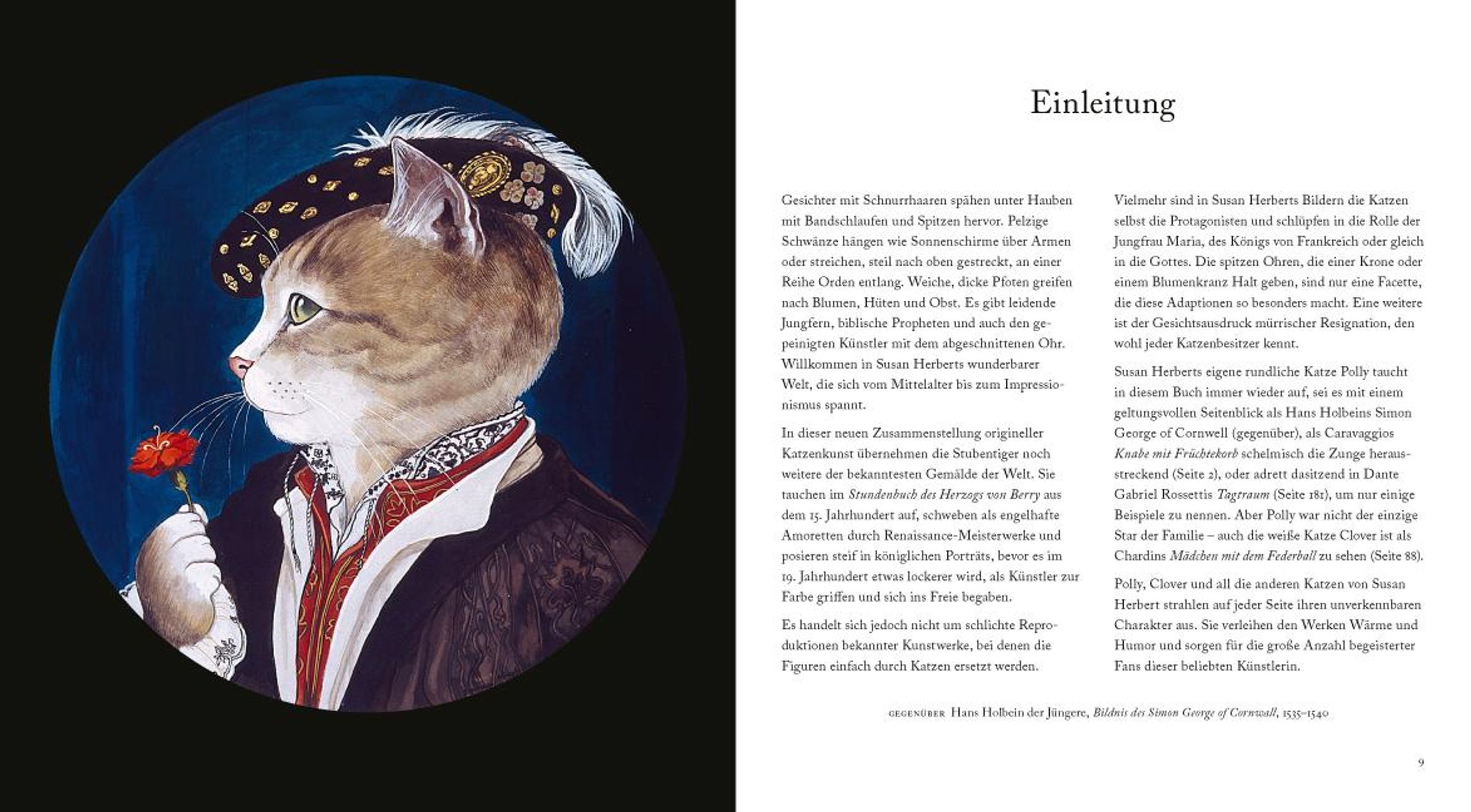 Willkommen in Susan Herberts wunderbarer Welt, die sich kunsthistorisch vom Mittelalter bis zum Impressionismus vor dem amüsierten Betrachter ausbreitet. Die schnurrigen Freunde (oft hat die Künstlerin ihre eigenen Katzen porträtiert) tauchen im berühmten Stundenbuch des Herzogs von Berry aus dem 15. Jahrhundert auf, schweben elegant als engelhafte Amoretten durch Renaissance-Meisterwerke und posieren steif in königlichen Porträts, bevor es im 19. Jahrhundert etwas lockerer wird, als sich Künstler ins Freie begaben. Die raffinierten, bezaubernden Bilder machen das Buch zu einem idealen Geschenk für alle kulturell interessierten Katzenliebhaber.