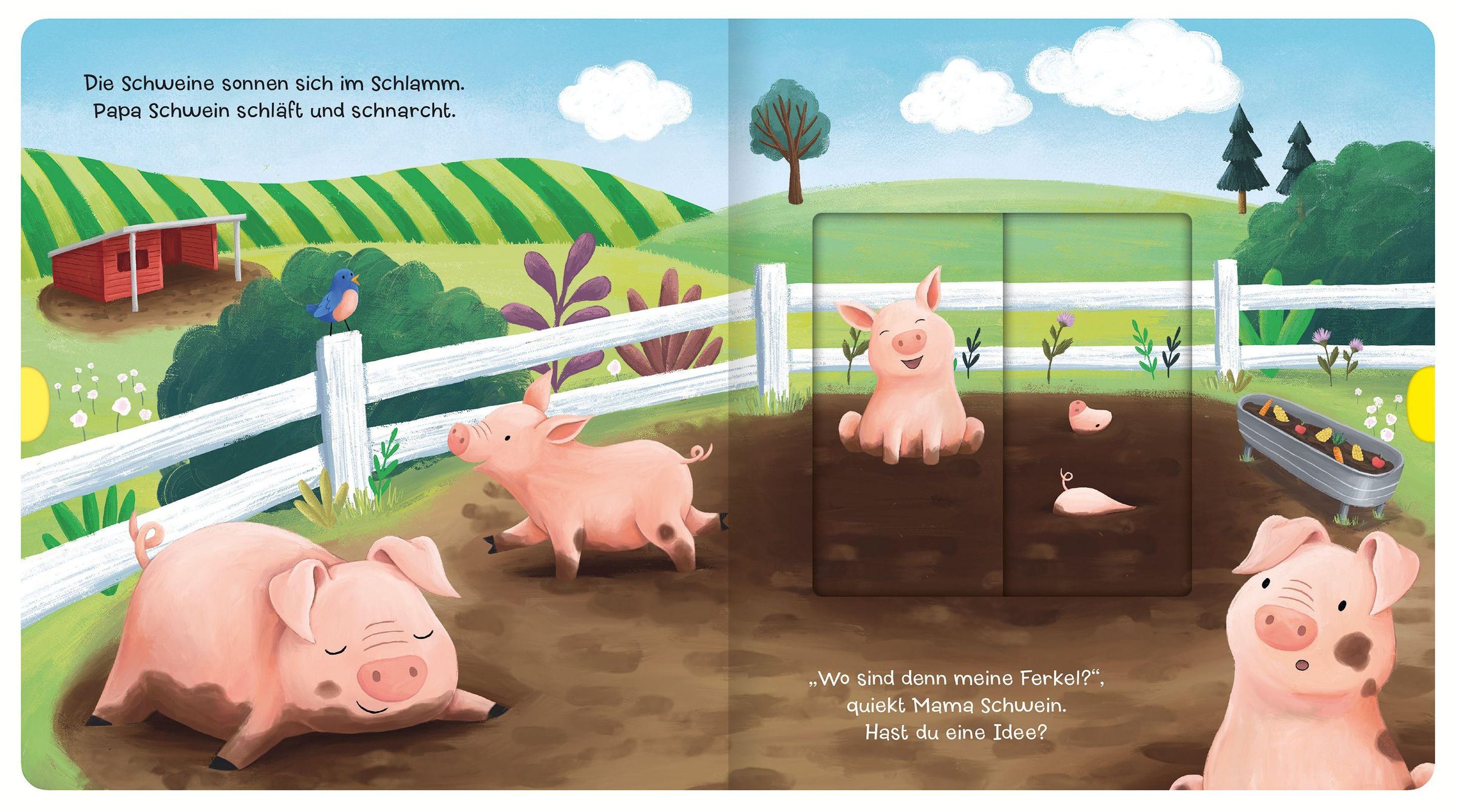 Die kleinen Leserinnen und Leser begleiten ein neugieriges Kätzchen, das auf der Suche nach verschiedenen Tierkindern ist. Mit großen, robusten Schiebeelementen können Kinder spielerisch die Tiere wie Kühe, Schweine, Schafe und Hühner entdecken.