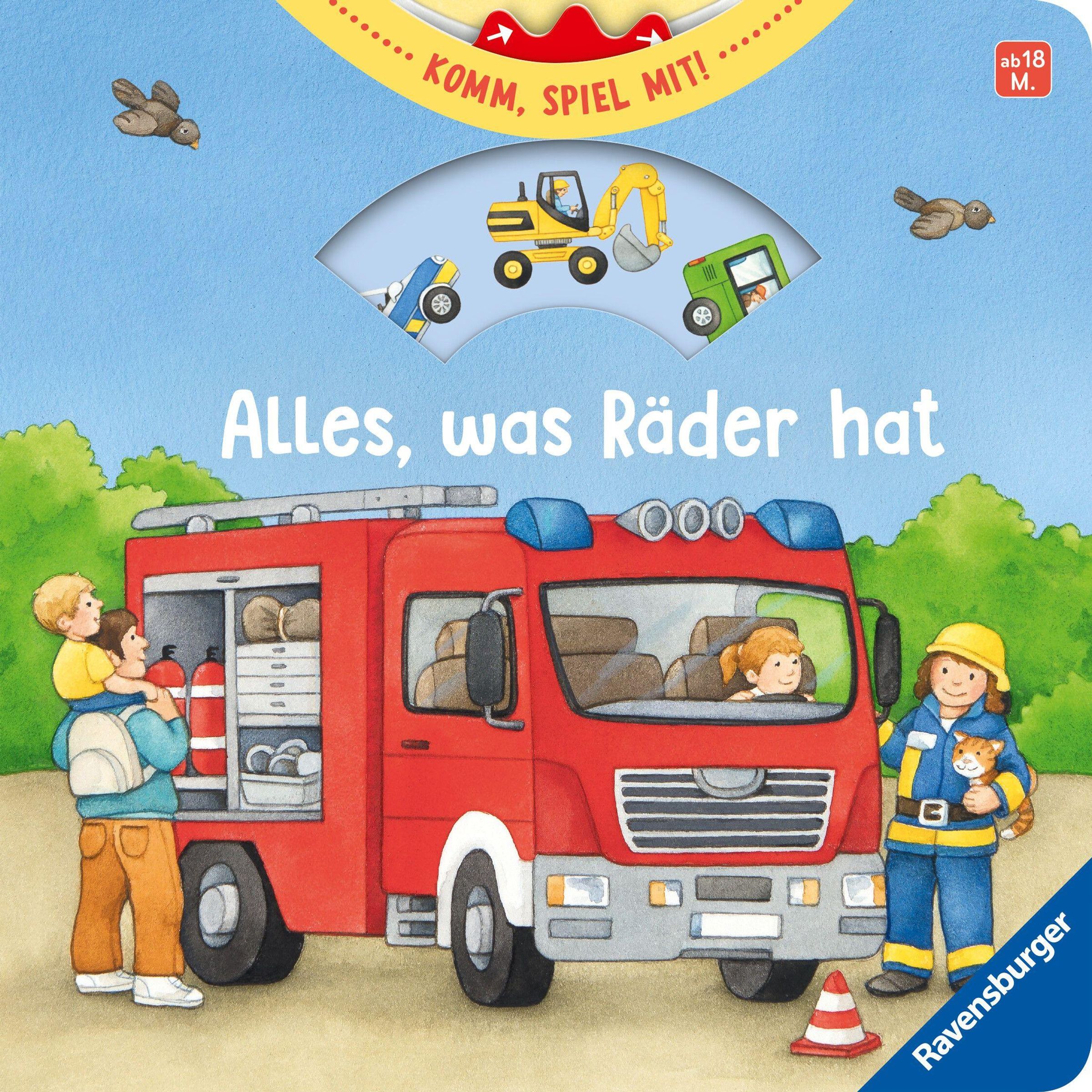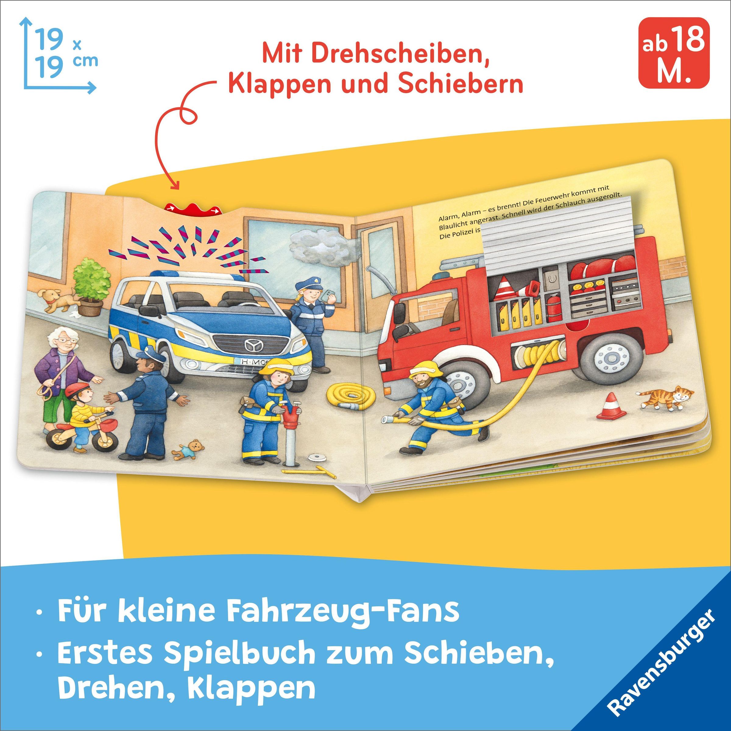 Kleinkinder lieben Fahrzeuge, egal ob Feuerwehrauto, Bagger oder Müllabfuhr! In diesem Spielbuch können Kinder ab 18 Monaten auf jeder Seite mithelfen und selbst aktiv werden. Bewege die Baggerschaufel, leere die Mülltonne und tuckere mit dem Traktor übers Feld. Große Drehscheiben, spannende Klappen und stabile Schieber garantieren lang anhaltenden Spielspaß! Und ganz nebenbei fördert das Buch den Tastsinn und die Feinmotorik.