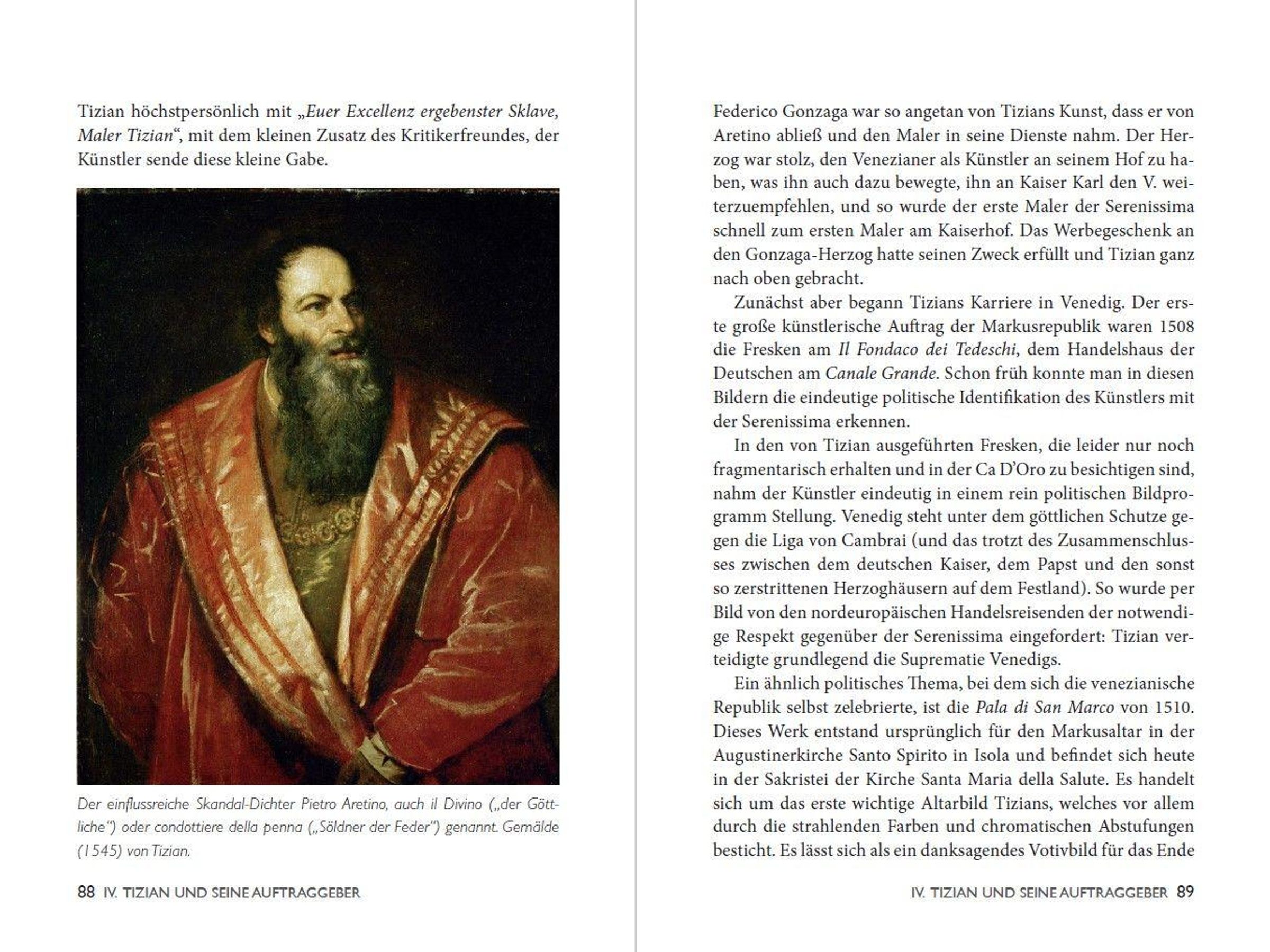 "Tizian war nicht nur ein Virtuose der Farben, sondern auch ein Menschen-Schilderer und Menschen-Durchschauer mit unvergleichlichem, unbestechlichem und wenn nötig auch unbarmherzigen Scharfblick. Susanne Hohwieler zeigt den venezianischen Grosskünstler erstmals mit überzeugenden Belegen als Apologeten und Satiriker der Macht und der Mächtigen und schlägt damit die längst fällige Brücke zwischen Geschichte und Kunstgeschichte."