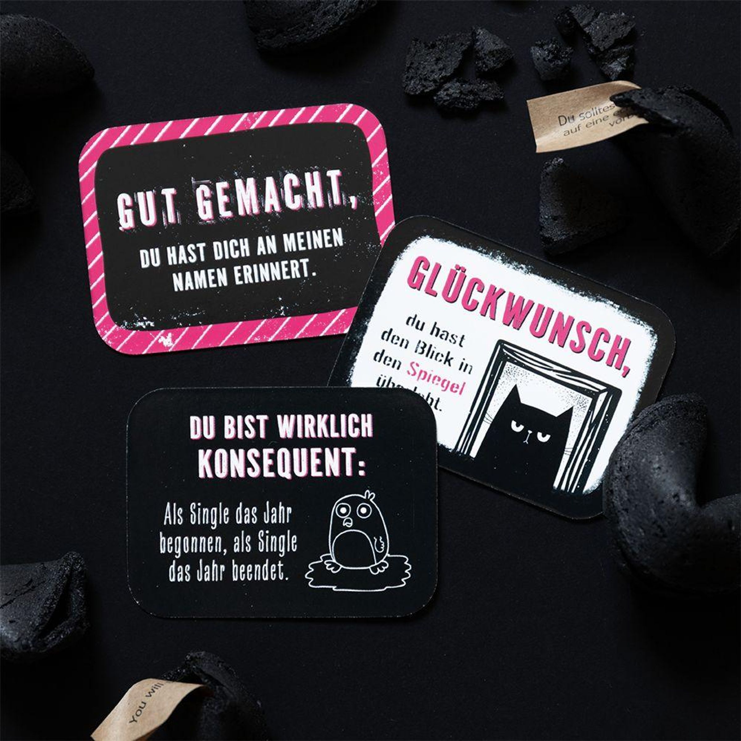 - 25 lustig gestaltete Kärtchen mit liebevollen Gemeinheiten für alle, die schwarzen Humor mögen