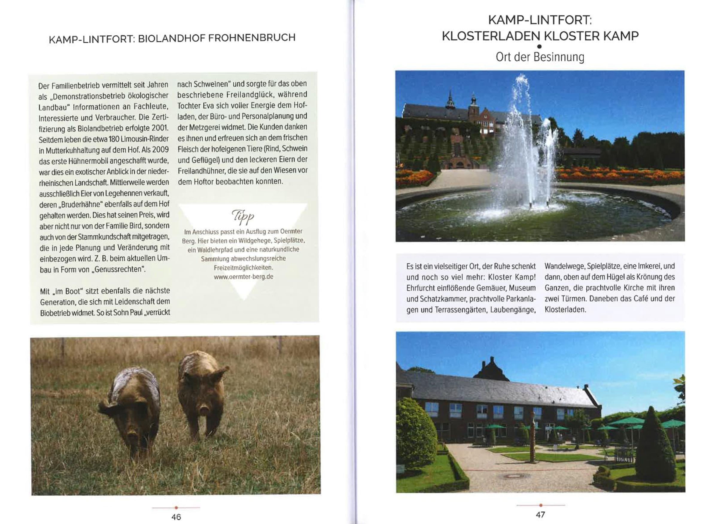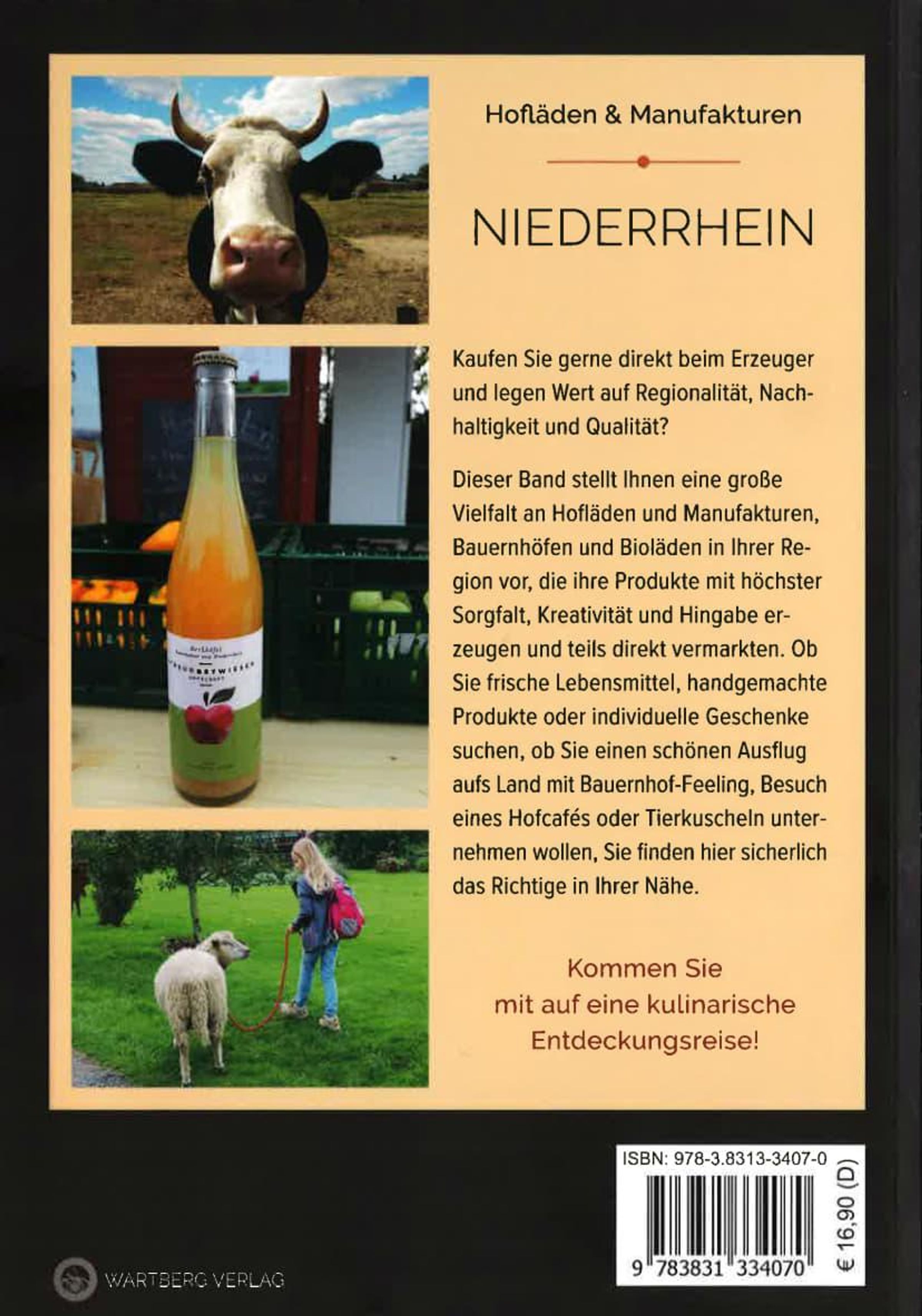 Kaufen Sie gerne direkt beim Erzeuger und legen Wert auf Regionalität, Nachhaltigkeit und Qualität? Dieser reich bebilderte Band stellt Ihnen eine große Vielfalt an Hofläden und Manufakturen, Bauernhöfen und Bioläden am Niederrhein vor, die ihre Produkte mit höchster Sorgfalt, Kreativität und Hingabe erzeugen und direkt vermarkten. Ob Sie frische Lebensmittel, handgemachte Produkte oder individuelle Geschenke suchen, ob Sie einen schönen Ausflug aufs Land mit Bauernhof-Feeling, Besuch eines Hofcafés und Tierkuscheln unternehmen wollen, Sie finden hier sicherlich das Richtige in Ihrer Nähe.