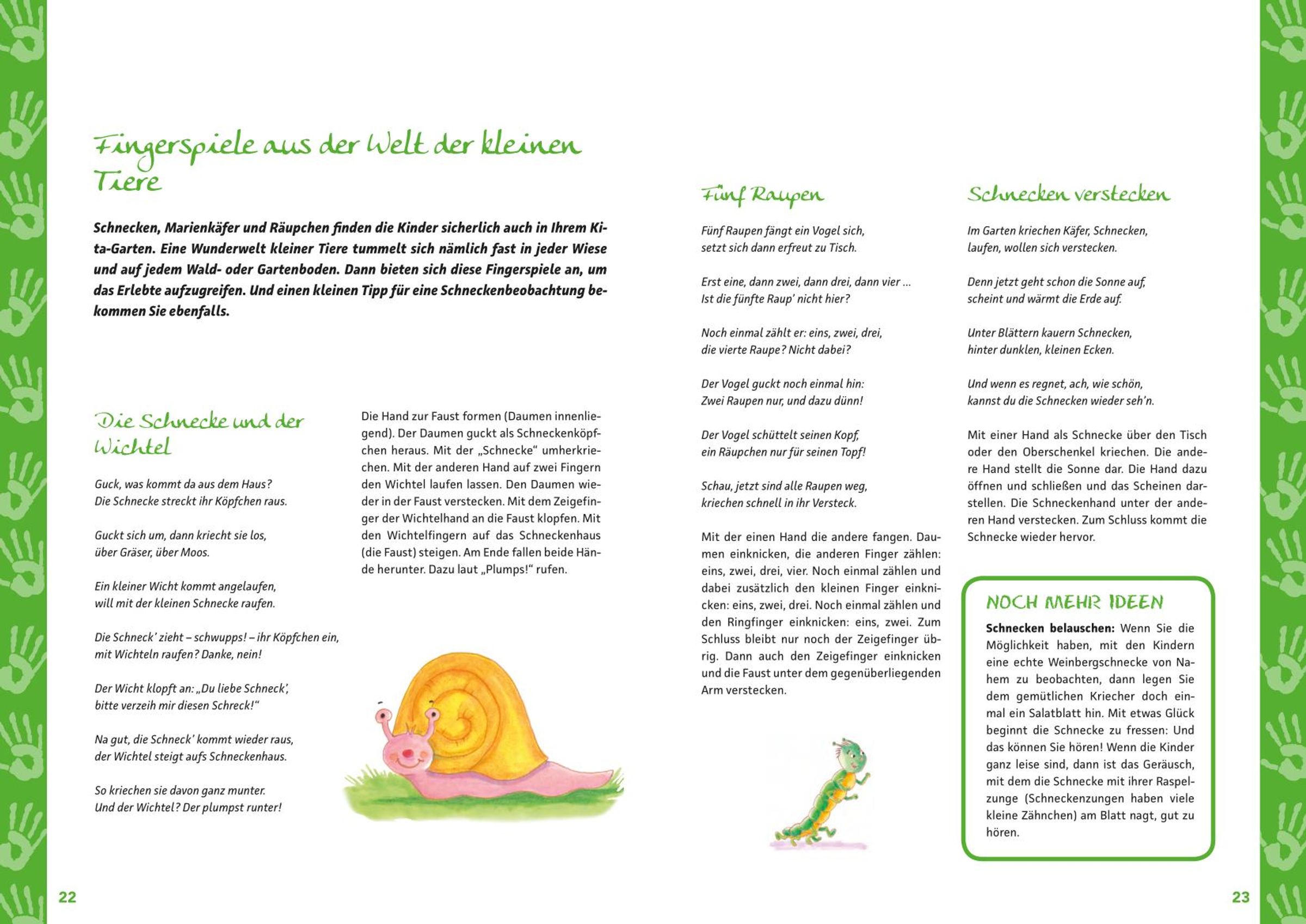 Fingerspiele sind eine ideale Möglichkeit, die Fähigkeiten der Kinder zu schulen, sie zum Mitmachen anzuregen und den manchmal angespannten Kita-Alltag aufzulockern. So werden Sprachfähigkeit und Körperbewusstsein verbessert sowie Koordination und Konzentration gefördert - und auch der Spaß kommt hierbei natürlich nicht zu kurz. Klassische, bekannte Fingerspielen sowie neue Hand(gesten)spiele, Mitmachreime und Fingerspiele zum Aufpassen, Lachen und Lernen sorgen für Abwechslung und sind übersichtlich zusammengestellt. Alle Vorschläge sind nach Jahreszeiten sortiert.