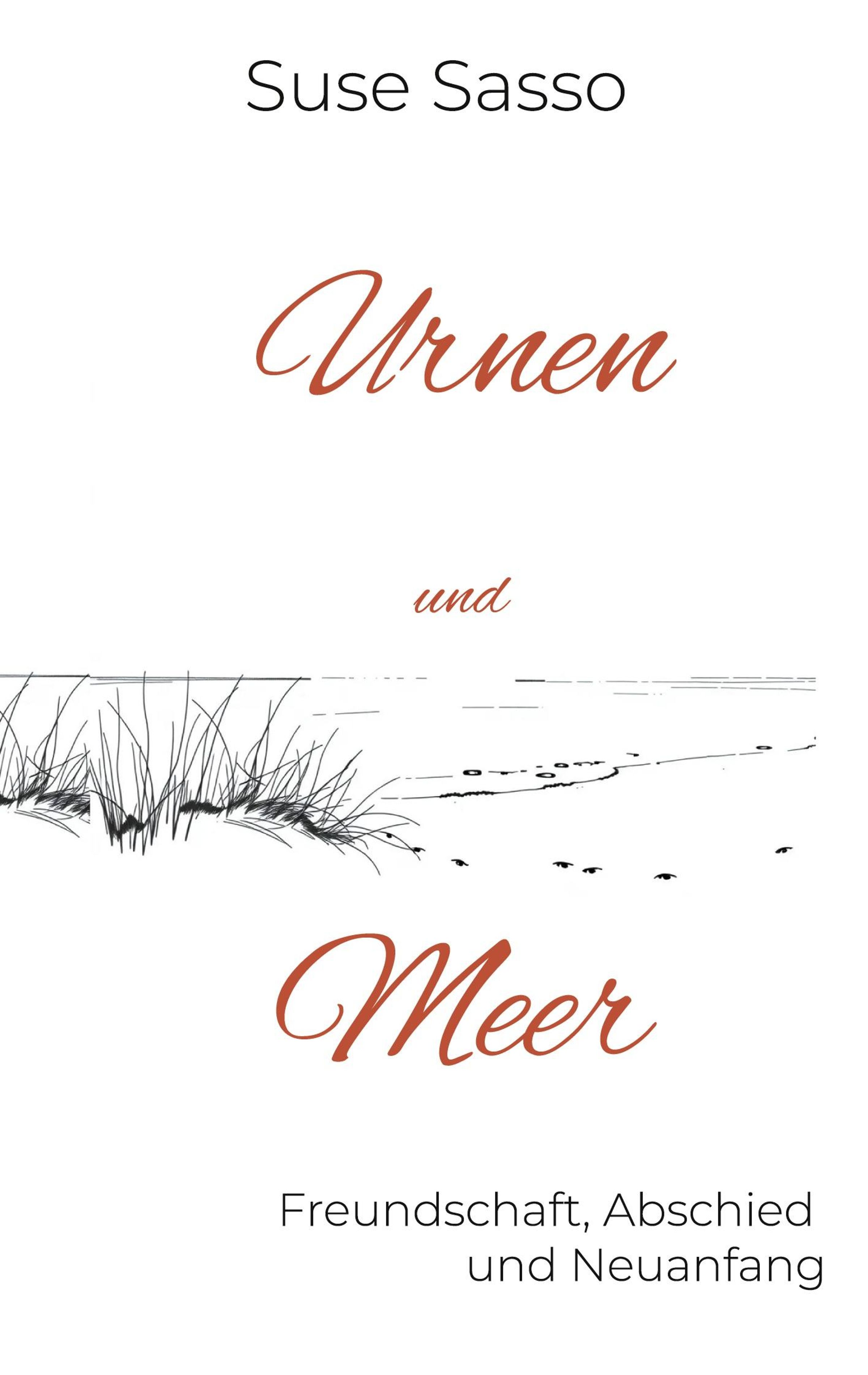 "Suse Sasso, Urnen und Meer. Freundschaft, Abschied und Neuanfang." Zeichnung von Dünen und Meer., Buch
