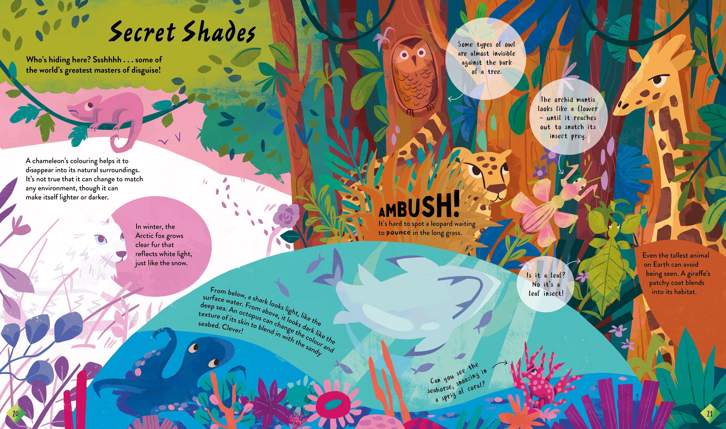 In The Stories and Secrets of Colour , young readers can explore the many meanings behind and uses for colour all over the world, from the Tuareg people of North Africa and their striking blue clothes, to why saffron is so expensive and what makes flamingos pink. Through colour, we discover amazing facts about animals and plants, learn how colours have changed the course of history and find out how different colours affect our moods and health.