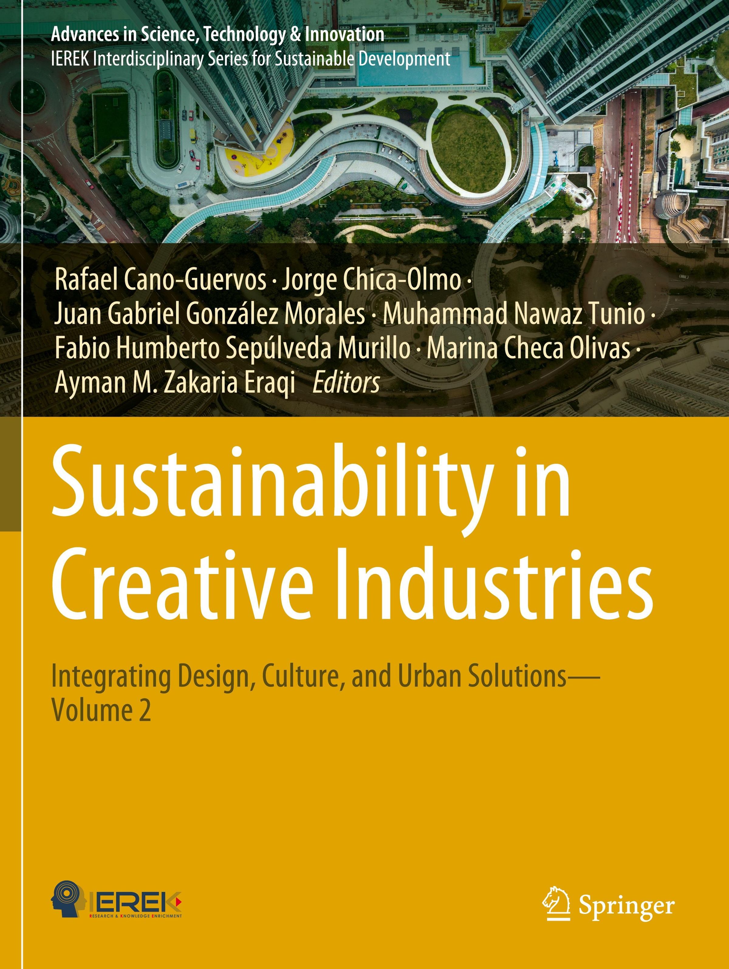 Titel: Sustainability in Creative Industries. Text: Integrating Design, Culture, and Urban Solutions—Volume 2. Aerial view of urban area., Buch