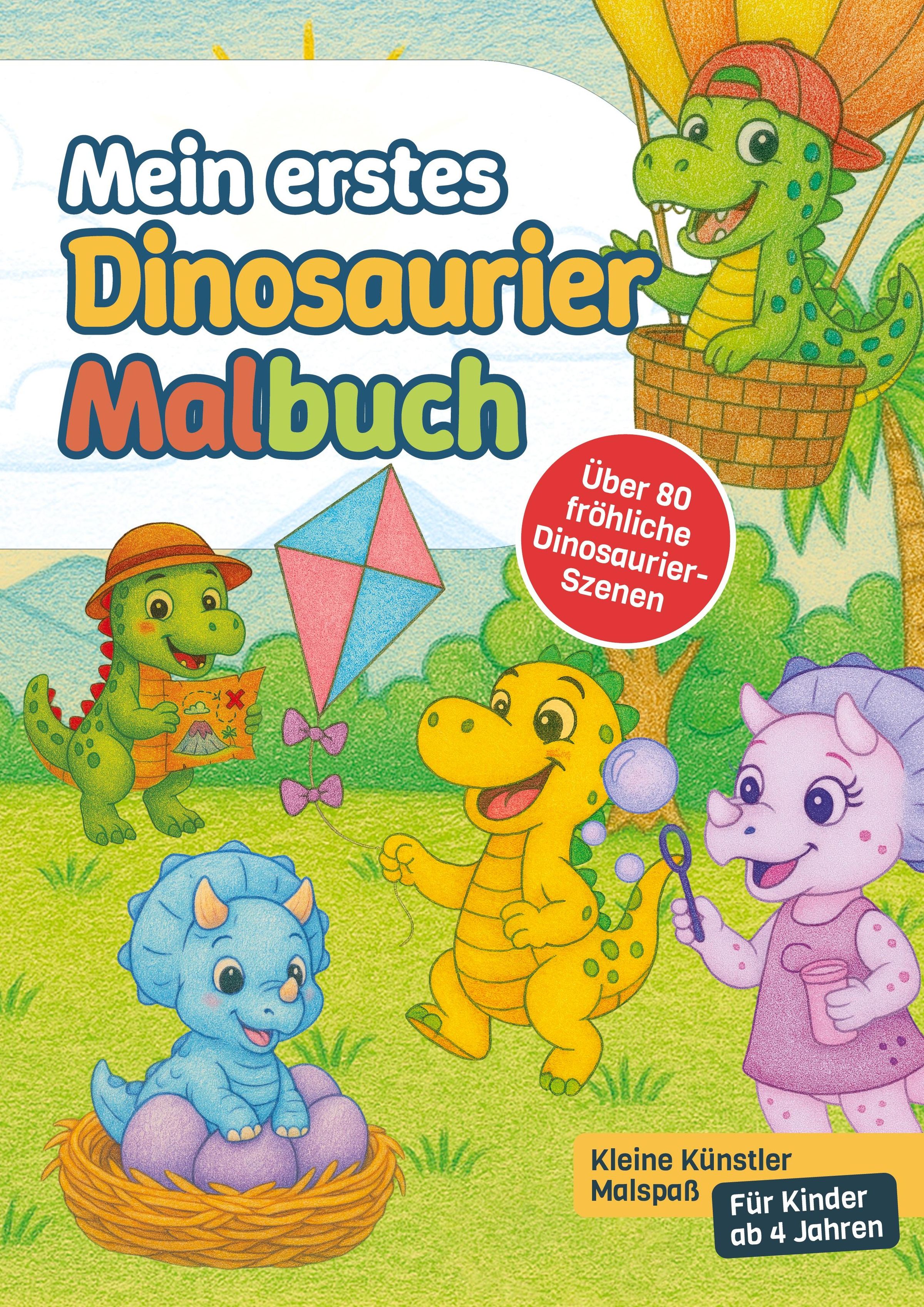 "Mein erstes Dinosaurier Malbuch", "Über 80 fröhliche Dinosaurier-Szenen", "Für Kinder ab 4 Jahren". Fröhliche Dinosaurier., Buch