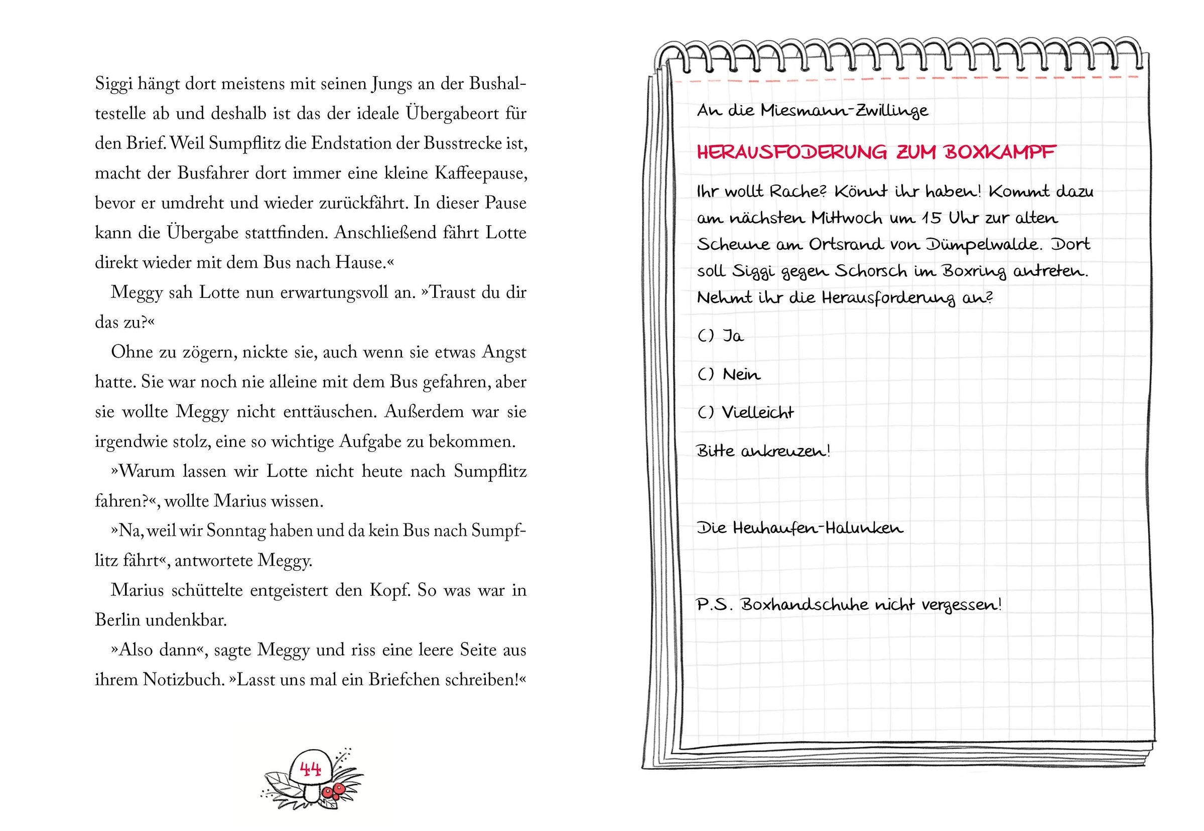 >>Ihr wollt Rache? Könnt ihr haben!<< Die Heuhaufen-Halunken haben ein ordentliches Problem an der Backe. Meggy hat sich ausgerechnet mit den berüchtigten Miesmann-Zwillingen aus Sumpflitz angelegt. Aber die Heuhaufen-Halunken wären nicht weit über Dümpelwalde hinaus bekannt, hätten sie nicht längst einen genialen Abwehrplan ausgetüftelt. Und da Angriff bekanntlich die beste Verteidigung ist, haben sie Siggi Miesmann kurzerhand zu einem Boxkampf herausgefordert. Denn: >>Kocht ein Stier vor lauter Wut, brauchst du Schnelligkeit und Mut!<<