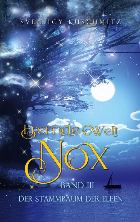 Im Mittelpunkt dieses Aufenthalts steht die Reise mit einem Schiff zum Stammbaum der Elfen inmitten eines riesigen Ozeans. Auf diesem Baum unermesslich groß leben die Baumelfen. Und dort, auf dem Baum, findet eine Zeremonie statt im Beisein aller Elfenköniginnen und -könige, der Hohepriesterin sowie der Mondgöttin Emune. Diese Zeremonie dient dem Zweck, allen Völkern, Menschen, Elfen, Dingen auf Nox frische Magie zu bringen. Ganz nebenbei lernen Zelda und Sally mit Flügeln, über die sie seit der Mondsilbertaufe verfügen, auch das Fliegen. Schließlich sei verraten, dass der Autor ganz dezent erotische Anklänge einfließen lässt. Das erscheint insofern angebracht, da sich Elfenweibchen ganz natürlich, wie die Natur sie geschaffen hat, im Alltag bewegen.
