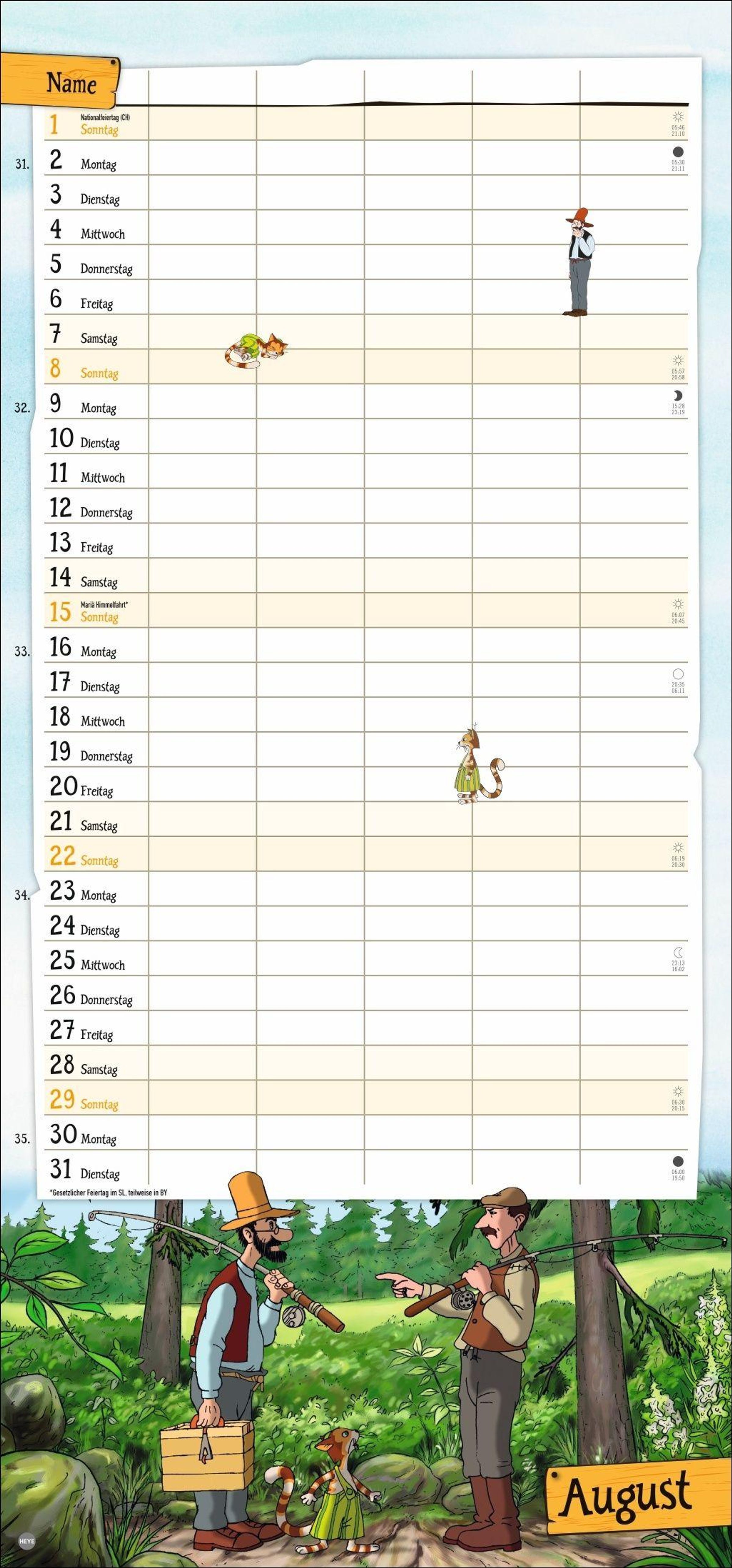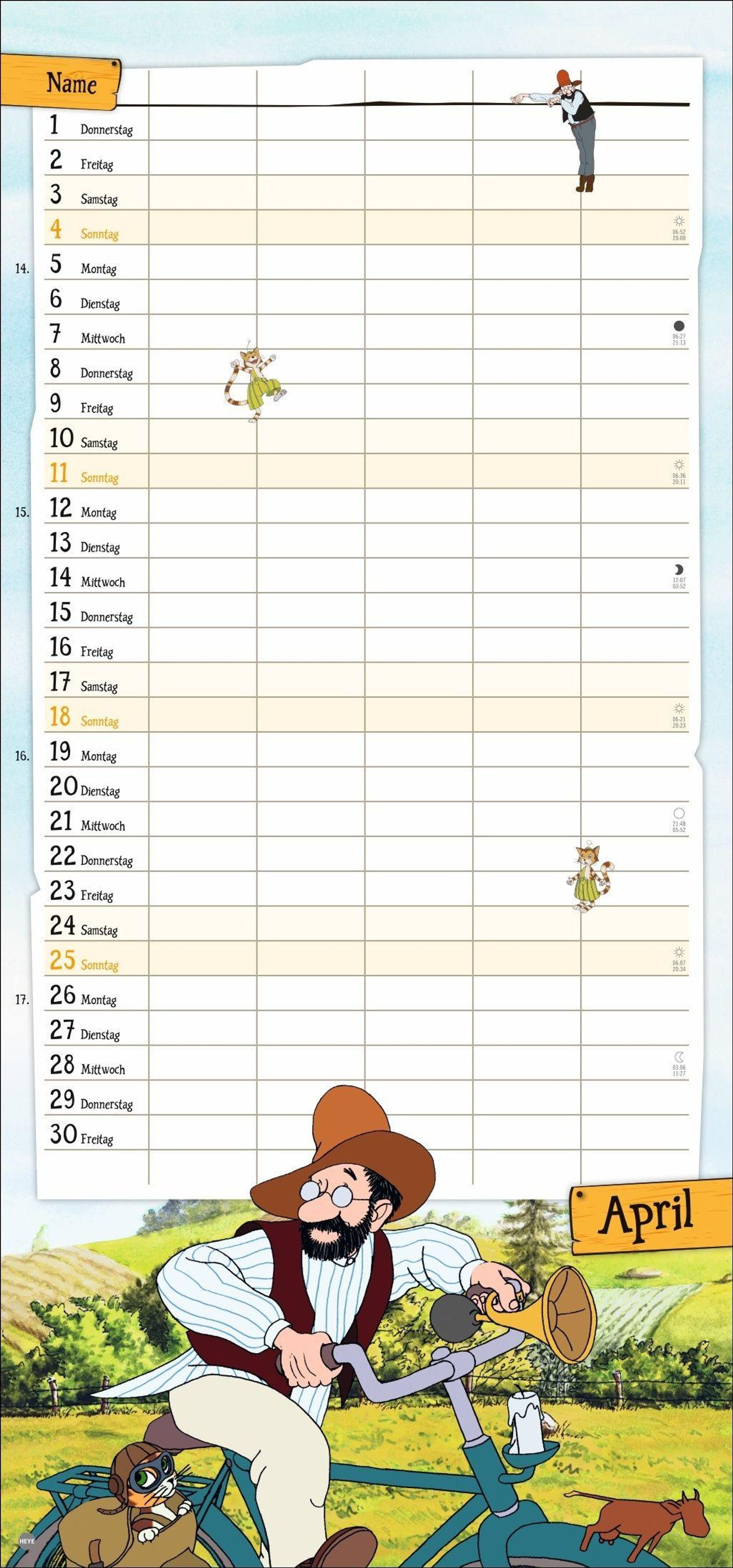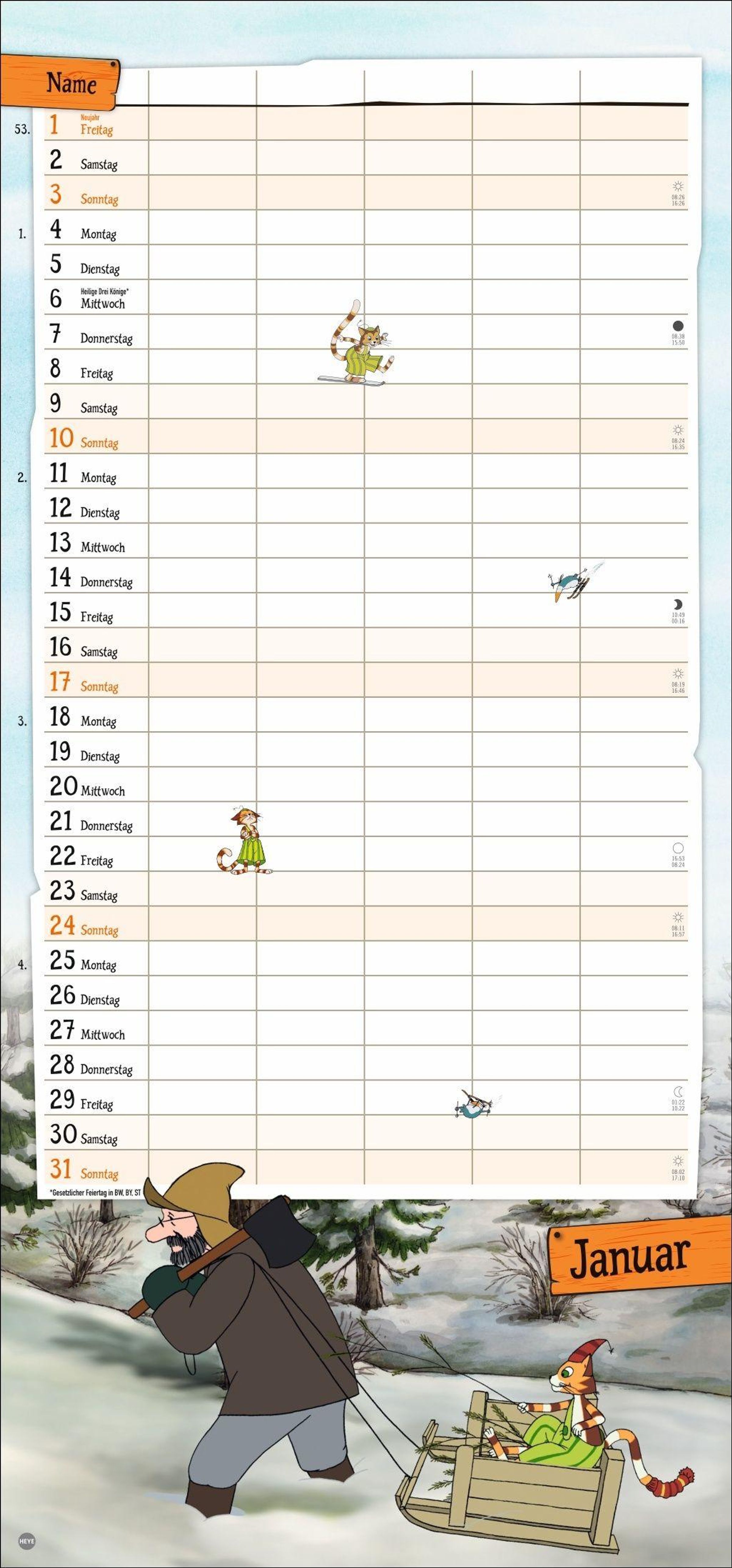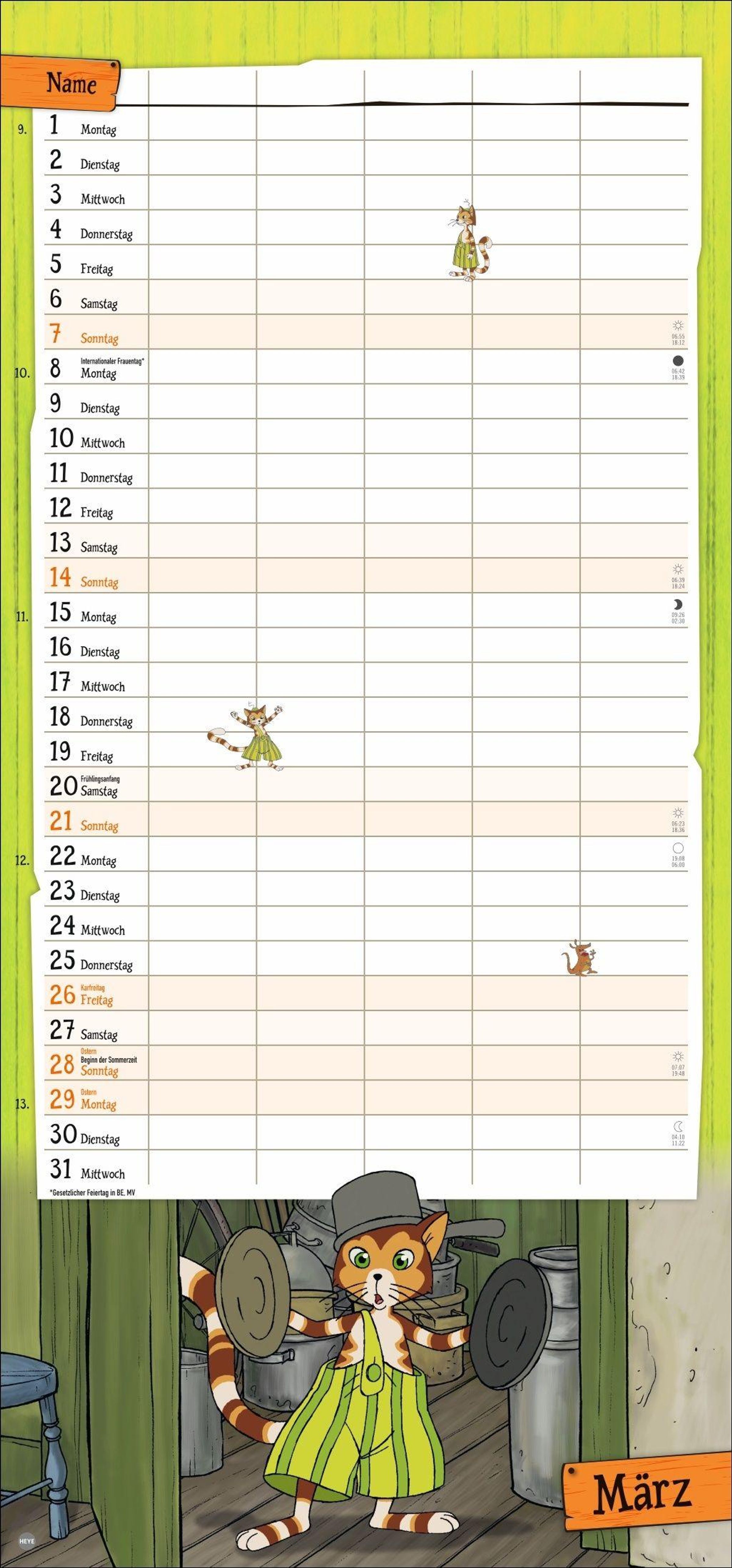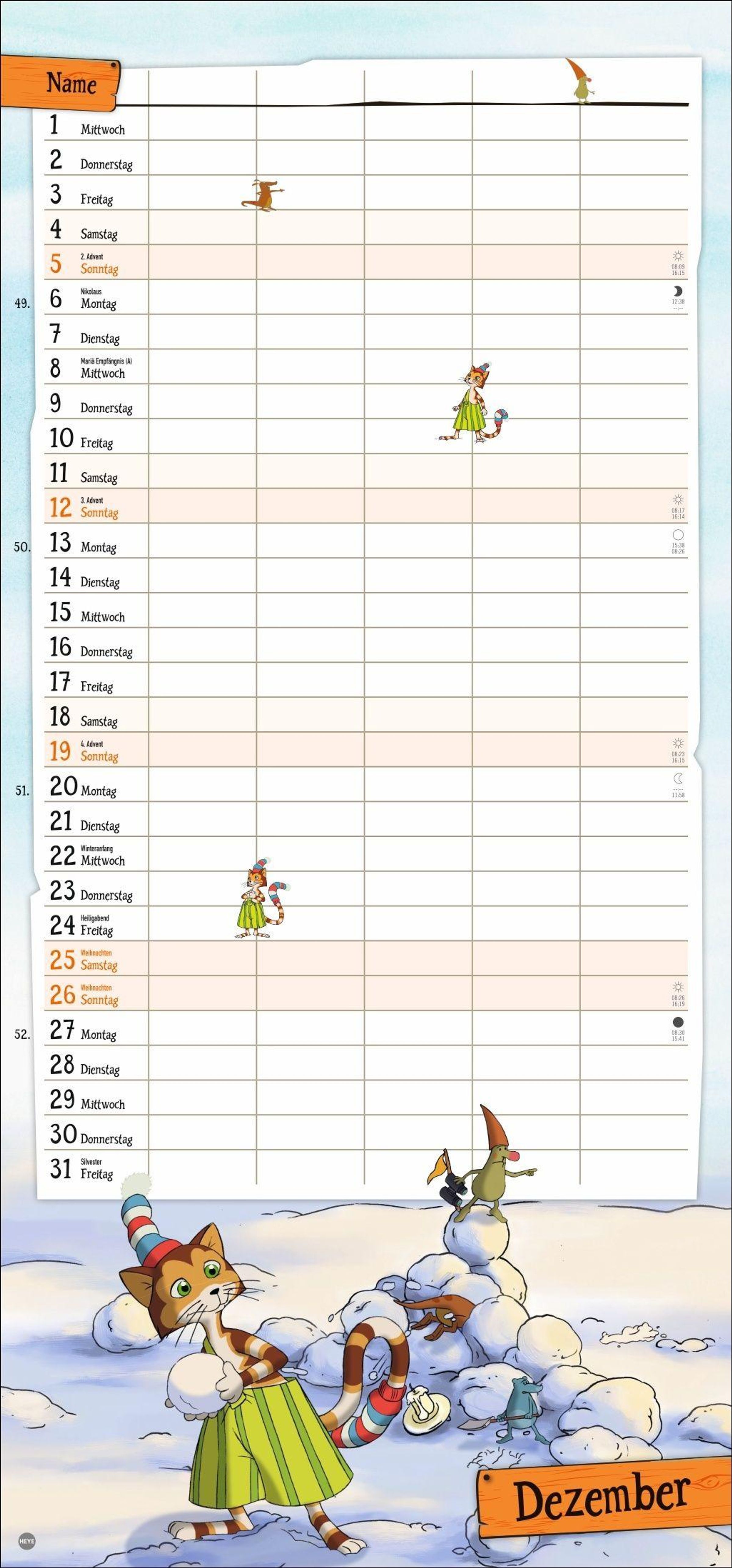 - Familienkalender mit dem beliebten Bilderbuch-Duo. Praktischer Wandkalender mit 5 Spalten. Liebevoll illustrierter Wandplaner für Familien.