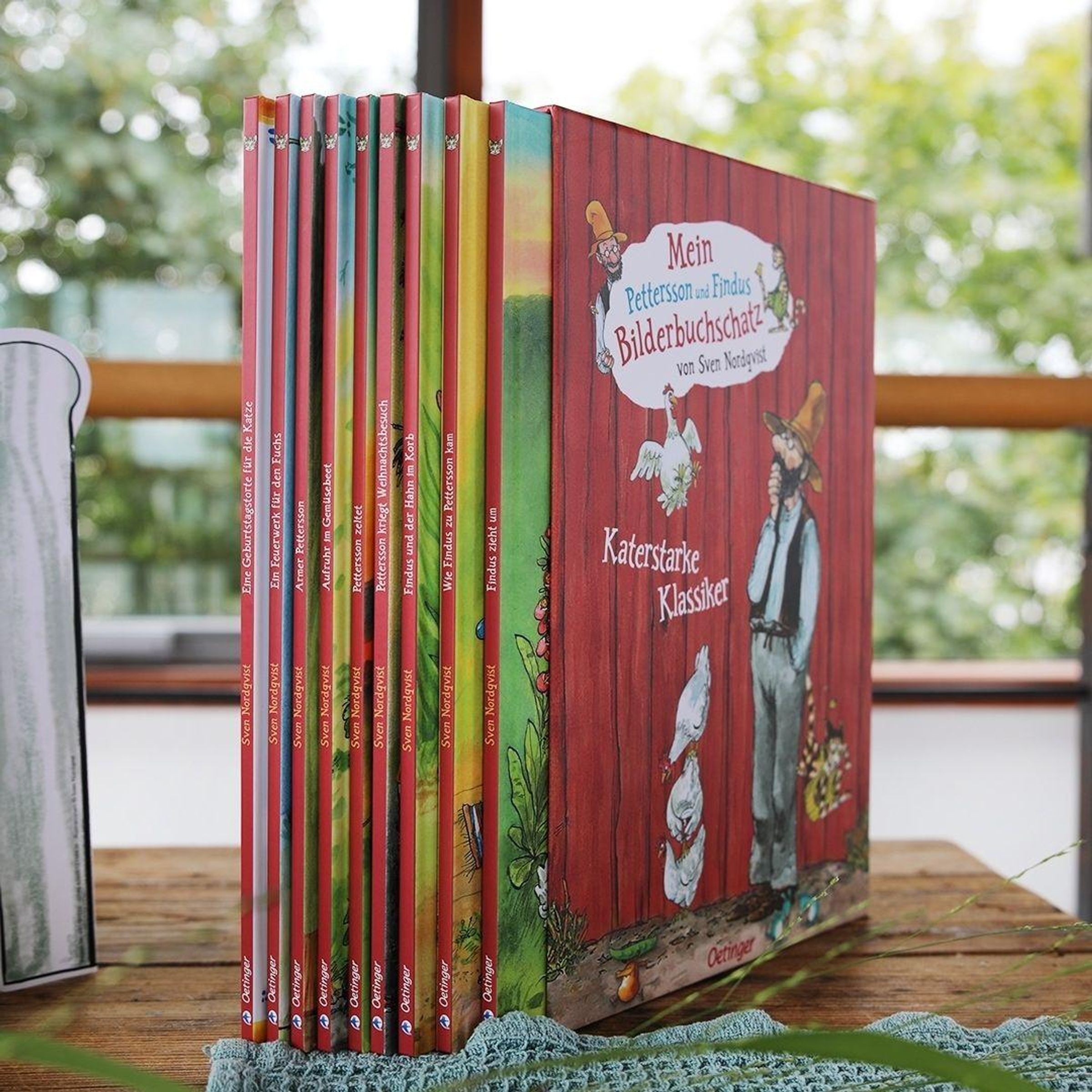 Katerstarke BilderbuchgeschichtenWillkommen in der Welt von Pettersson und Findus! In diesem wunderschön gestalteten Schuber finden sich alle 9 Bände der beliebten Bilderbuchreihe von Sven Nordqvist. Hier können kleine und große Fans von Pettersson und Findus ganz tief in die Welt von Petterssons Schwedenhof eintauchen und die lustigen Abenteuer der beiden besten Freunde miterleben. Die Bilderbuch-Klassiker sind in einem hochwertigen Schmuckschuber verpackt und bieten endlosen Vorlesespaß für Familien mit Kindern ab 4 Jahren. Der stabile Schuber im witzigen Schwedenhaus-Look enthält wunderbar wimmelige Illustrationen von Sven Nordqvist. Ein einzigartiges und hochwertiges Geschenk für 4-jährige Kinder und ein Muss für alle Fans der beliebten Freunde!Mein Pettersson und Findus Bilderbuchschatz: Alle Bilderbücher in einem wunderschönen Schuber Die ganze Welt von Pettersson und Findus: Alle Bilderbuchgeschichten von Sven Nordqvist, erstmals vereint in einem zauberhaft gestalteten Schuber. Warmherzig und fantasievoll: Die liebevollen Geschichten lassen die Herzen von Familien mit Kindern ab 4 Jahren höherschlagen. Toll ausgestattet: Der hochwertige Schmuckschuber ist ein Muss für jedes Bücherregal. Zum Geburtstag oder zu Weihnachten: Die gesammelten Abenteuer der beiden beliebten Freunde eignen sich wunderbar als hochwertiges Geschenk für 4-jährige Kinder. Der hochwertige Schuber enthält alle 9 Pettersson und Findus-Bilderbücher: "Wie Findus zu Pettersson kam", "Findus zieht um", "Armer Pettersson", "Aufruhr im Gemüsebeet", "Findus und der Hahn im Korb", "Eine Geburtstagstorte für die Katze", "Pettersson kriegt Weihnachtsbesuch", "Pettersson zeltet" sowie "Ein Feuerwerk für den Fuchs".